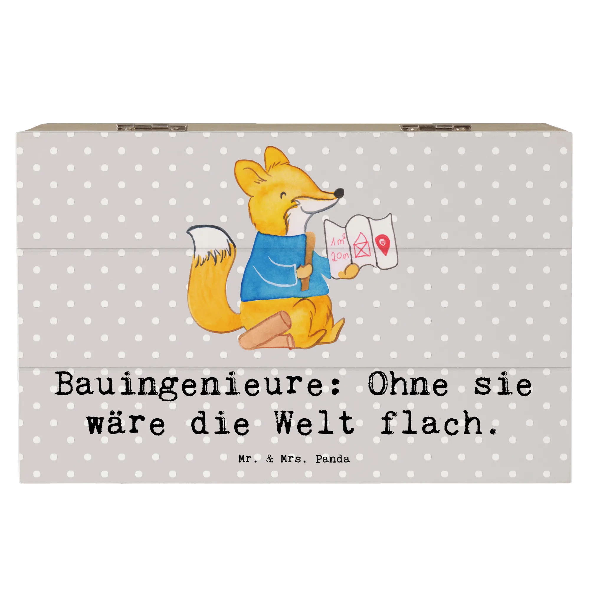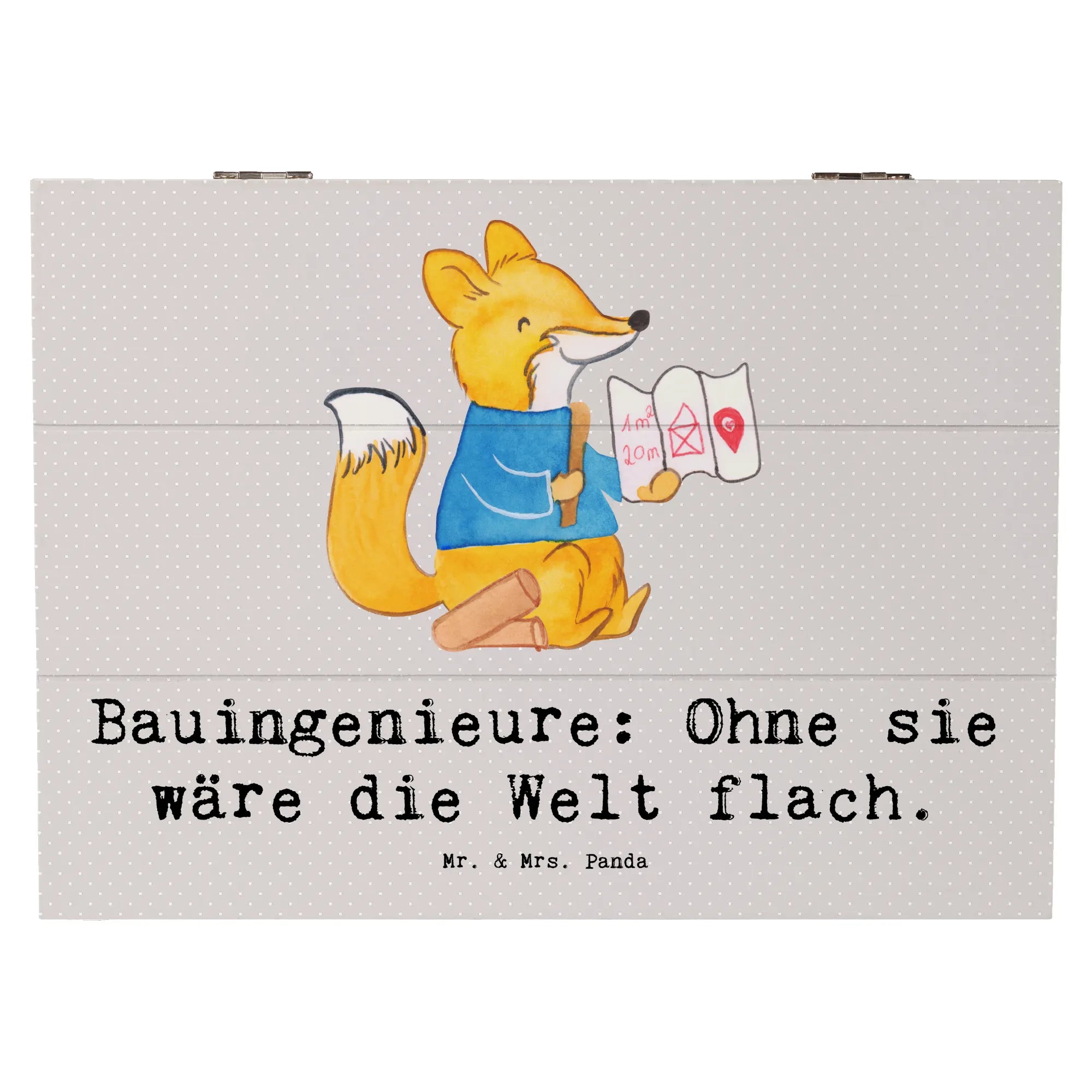 Entdecke die liebevoll gestaltete Holzkiste von Mr. & Mrs. Panda, die speziell für Bauingenieure entworfen wurde! Diese wunderbare Kiste ist nicht nur ein Blickfang, sondern auch der perfekte Aufbewahrungsort für all Deine wertvollen Erinnerungen.
