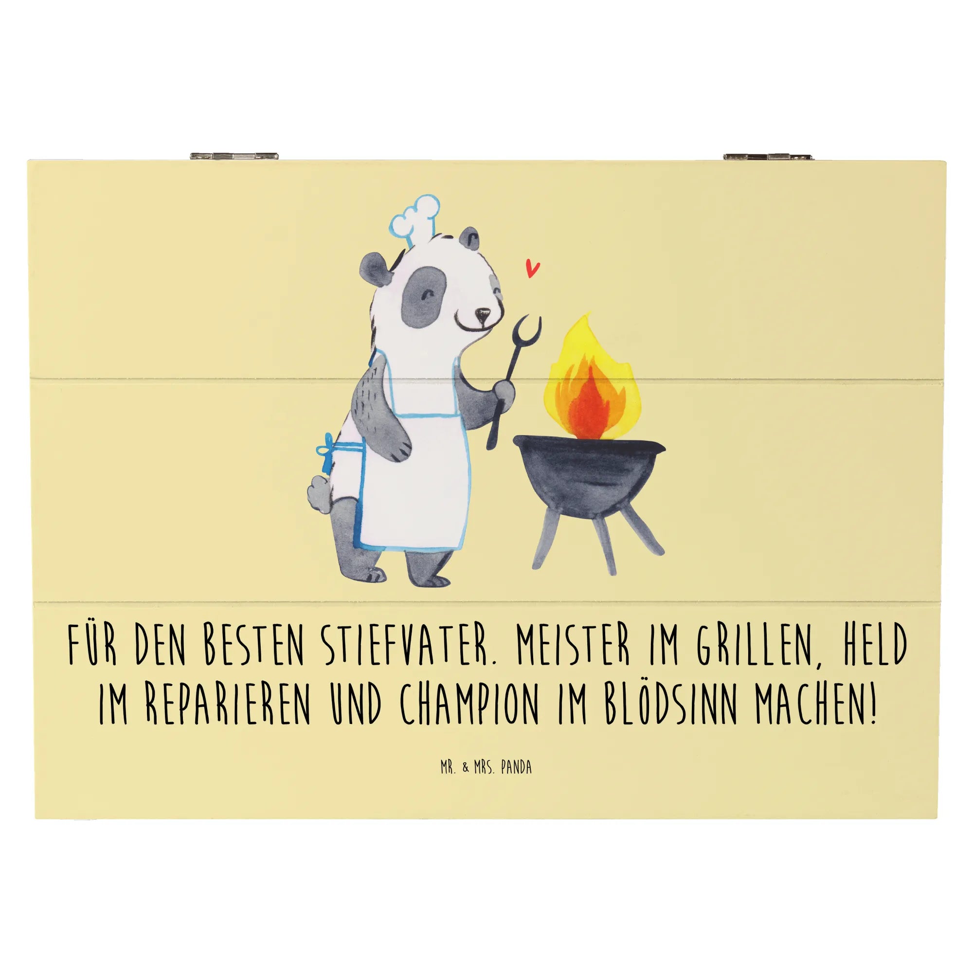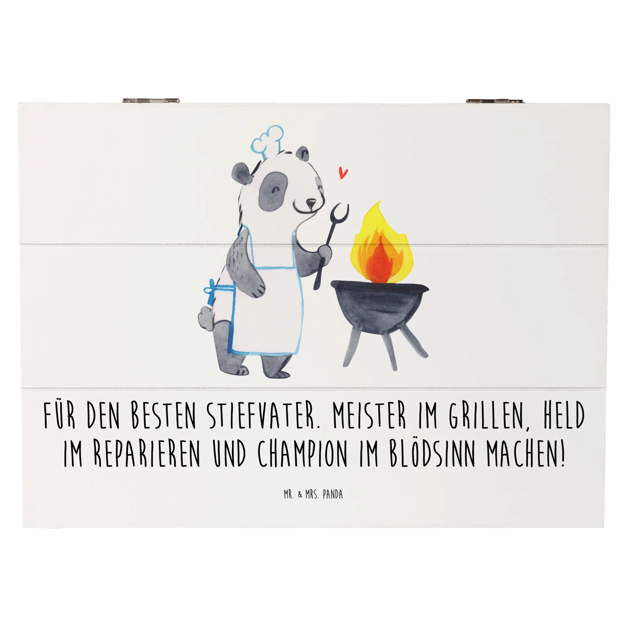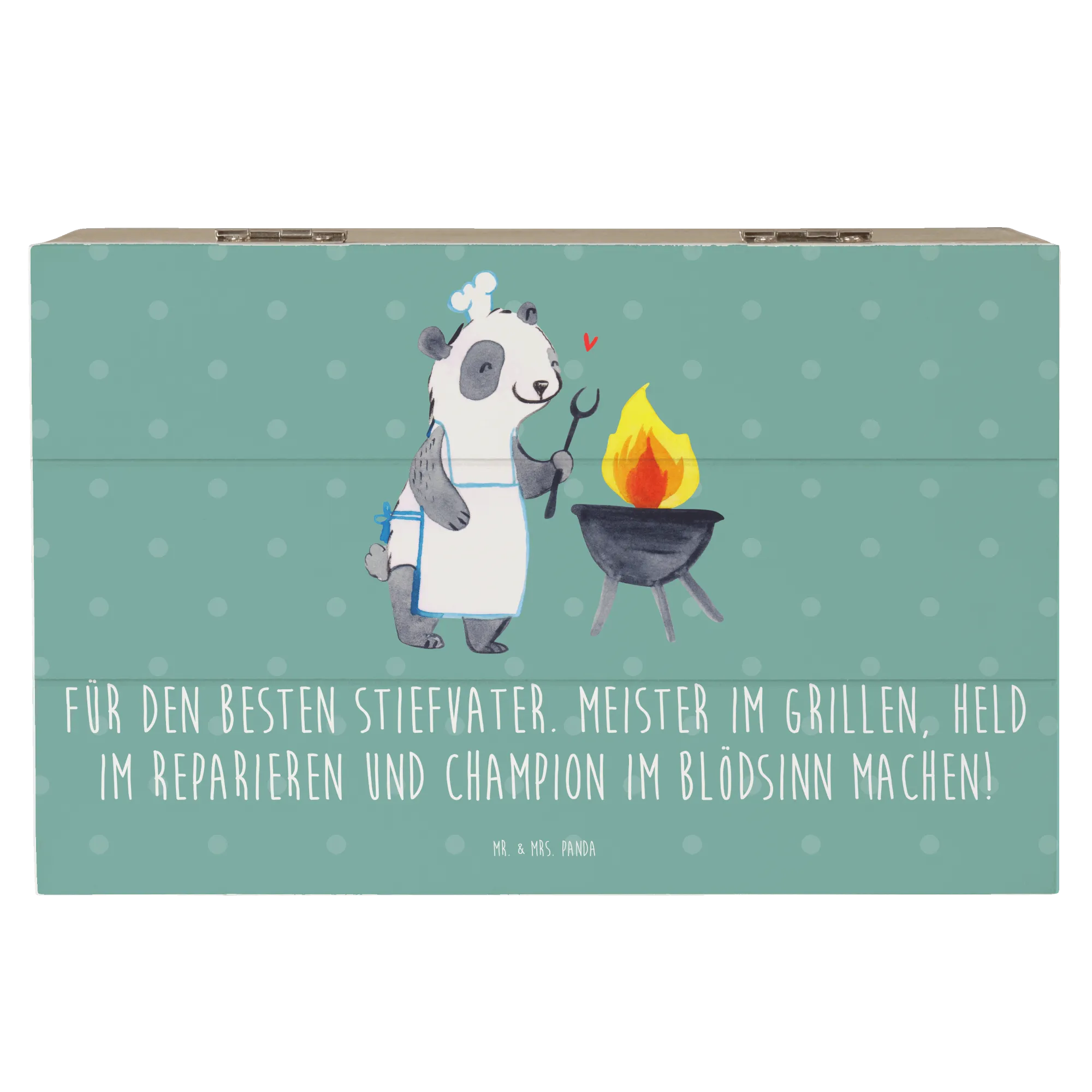 Zeige deinem Stiefvater, wie wichtig er für dich ist, mit dieser einzigartigen Holzkiste von Mr. & Mrs. Panda. Lass ihn wissen, dass er ein Meister im Grillen und ein Held der Familie ist!