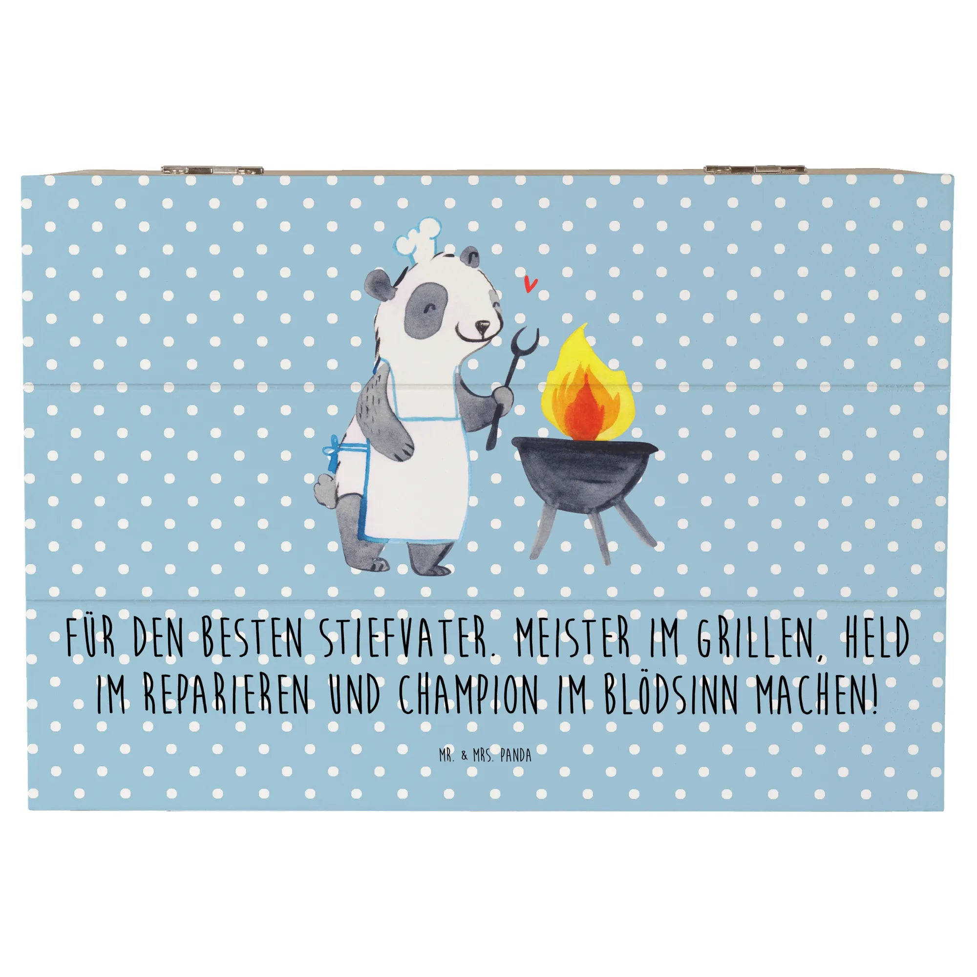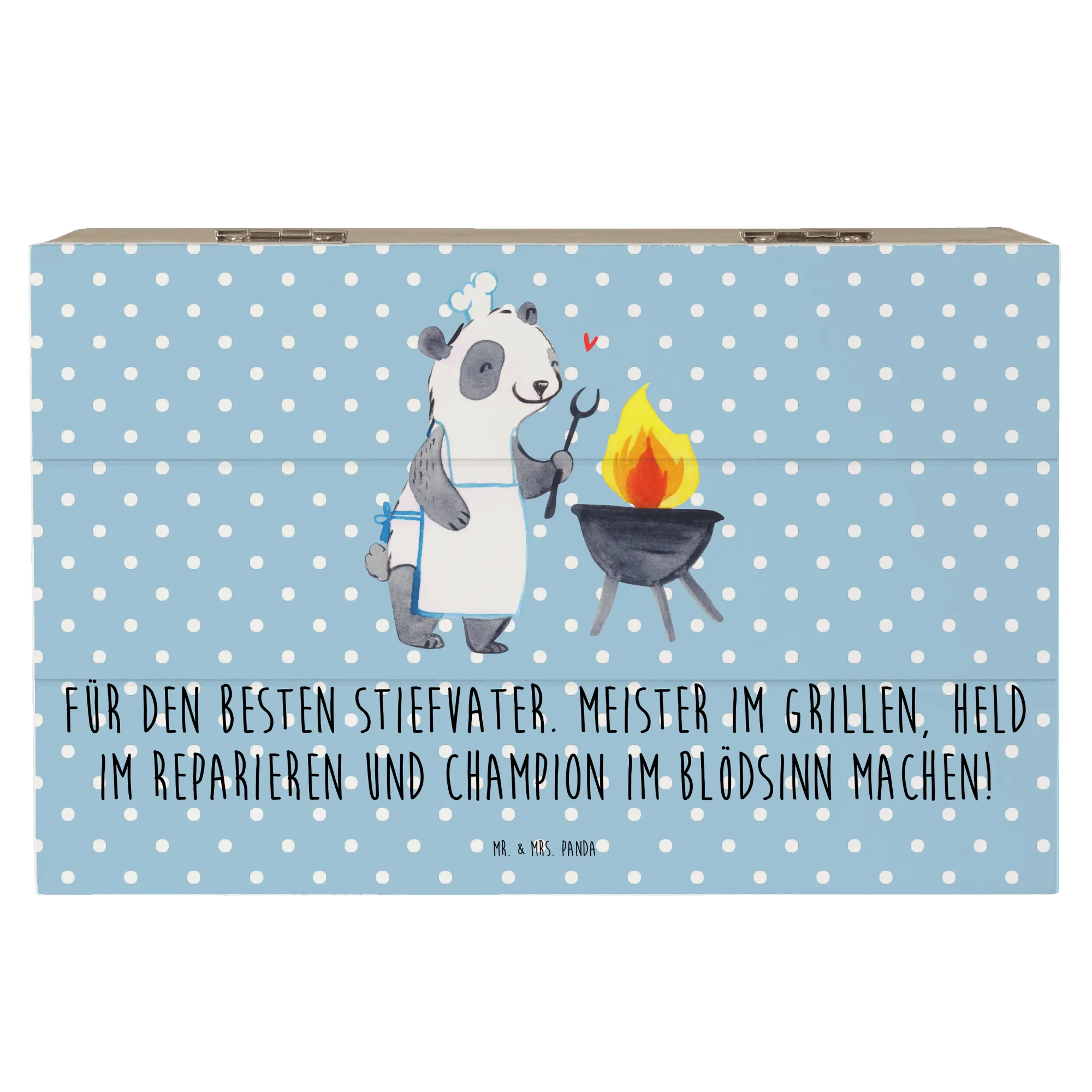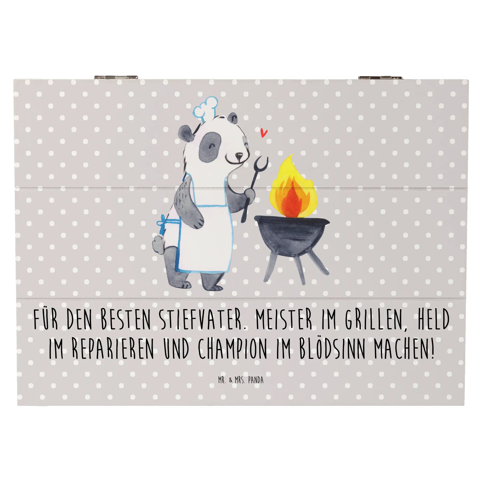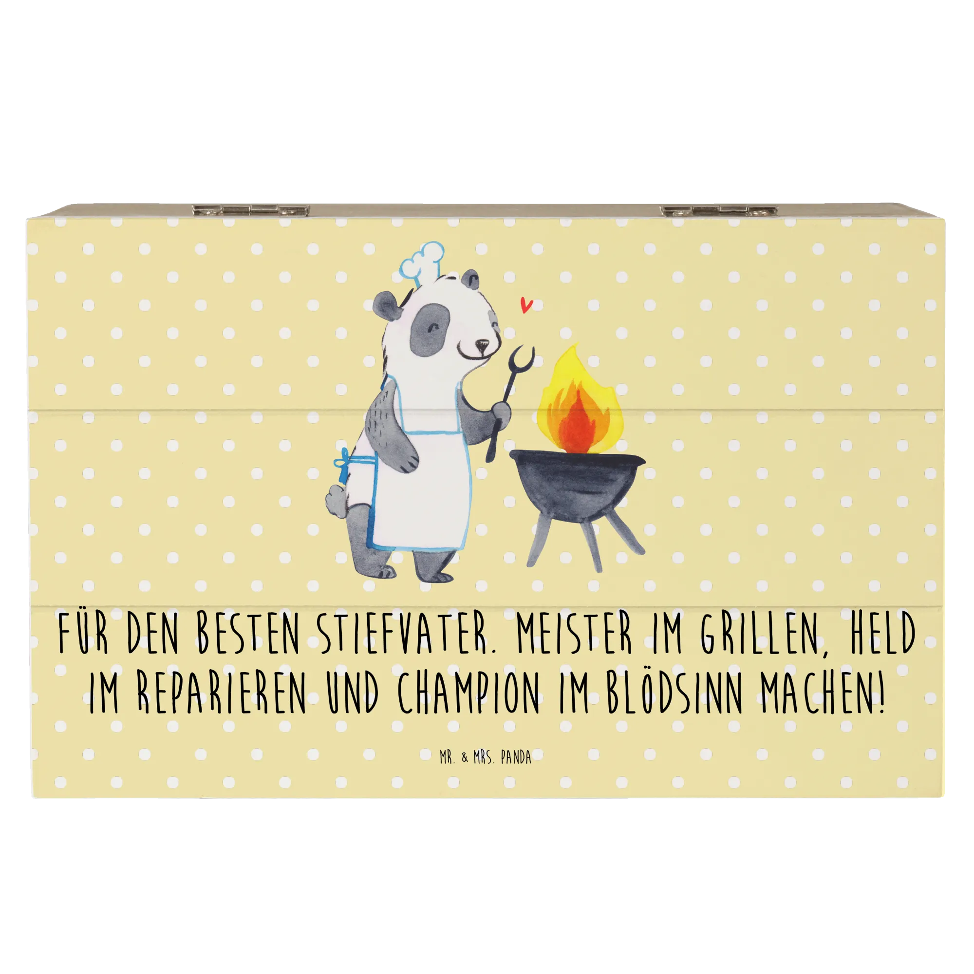 Zeige deinem Stiefvater, wie wichtig er für dich ist, mit dieser einzigartigen Holzkiste von Mr. & Mrs. Panda. Lass ihn wissen, dass er ein Meister im Grillen und ein Held der Familie ist!