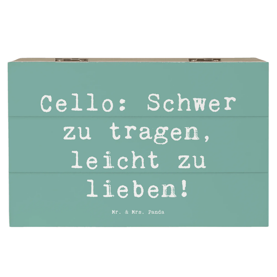 Die Holzkiste mit dem wunderschönen Cello-Motiv von Mr. & Mrs. Panda ist das perfekte Geschenk für Musikliebhaber und -spieler. Mit der Aufschrift "Cello: Schwer zu tragen, leicht zu lieben!" vereint sie Liebe zur Musik und die Schätze der Erinnerung in einem.