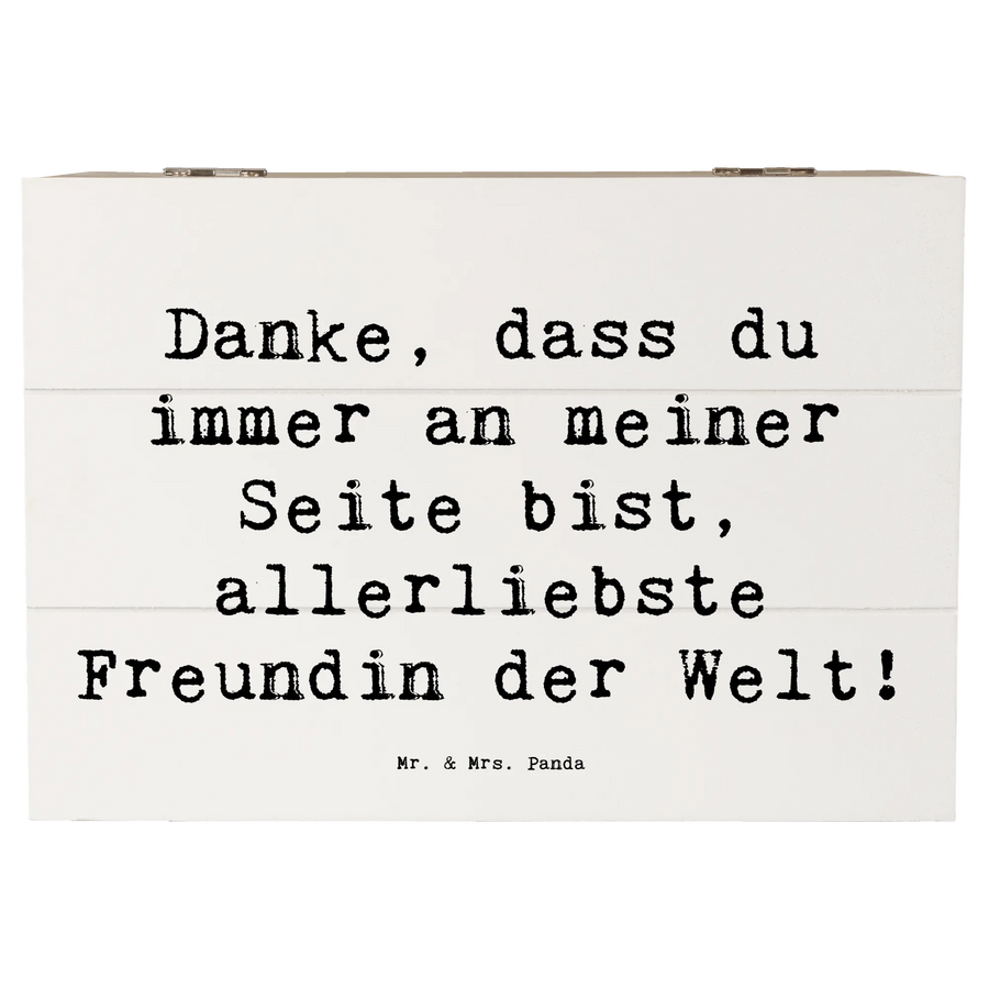 Die Holzschatulle von Mr. & Mrs. Panda in den Dimensionen 220 mm x 150 mm x 120 mm ist dein perfekter Begleiter, um die kleinen Freuden des Lebens stilvoll zu bewahren. Jedes Stück ist aus hochwertiger Holzfaser gefertigt und mit liebevollen Motiven und Sprüchen versehen, die jedem Raum eine persönliche Note verleihen. Ideal als XXL Geschenkbox, Erinnerungskiste oder einfach als elegante Dekokiste. Die robuste Konstruktion und handlichen Einschlagscharniere sorgen für Langlebigkeit und einfache Handhabung. Pflegeleicht: einfach mit einem feuchten Tuch reinigen.