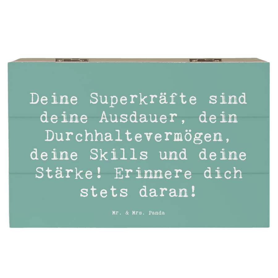 Diese bezaubernde Kiste ist nicht nur ein echter Blickfang, sondern auch das perfekte Geschenk für sportbegeisterte Menschen in Deinem Leben! Die wertvolle Botschaft "Deine Superkräfte sind deine Ausdauer, dein Durchhaltevermögen, deine Skills und deine Stärke! Erinnere dich stets daran!" erinnert jeden daran, was wirklich zählt, wenn es um sportliche Wettkämpfe geht.