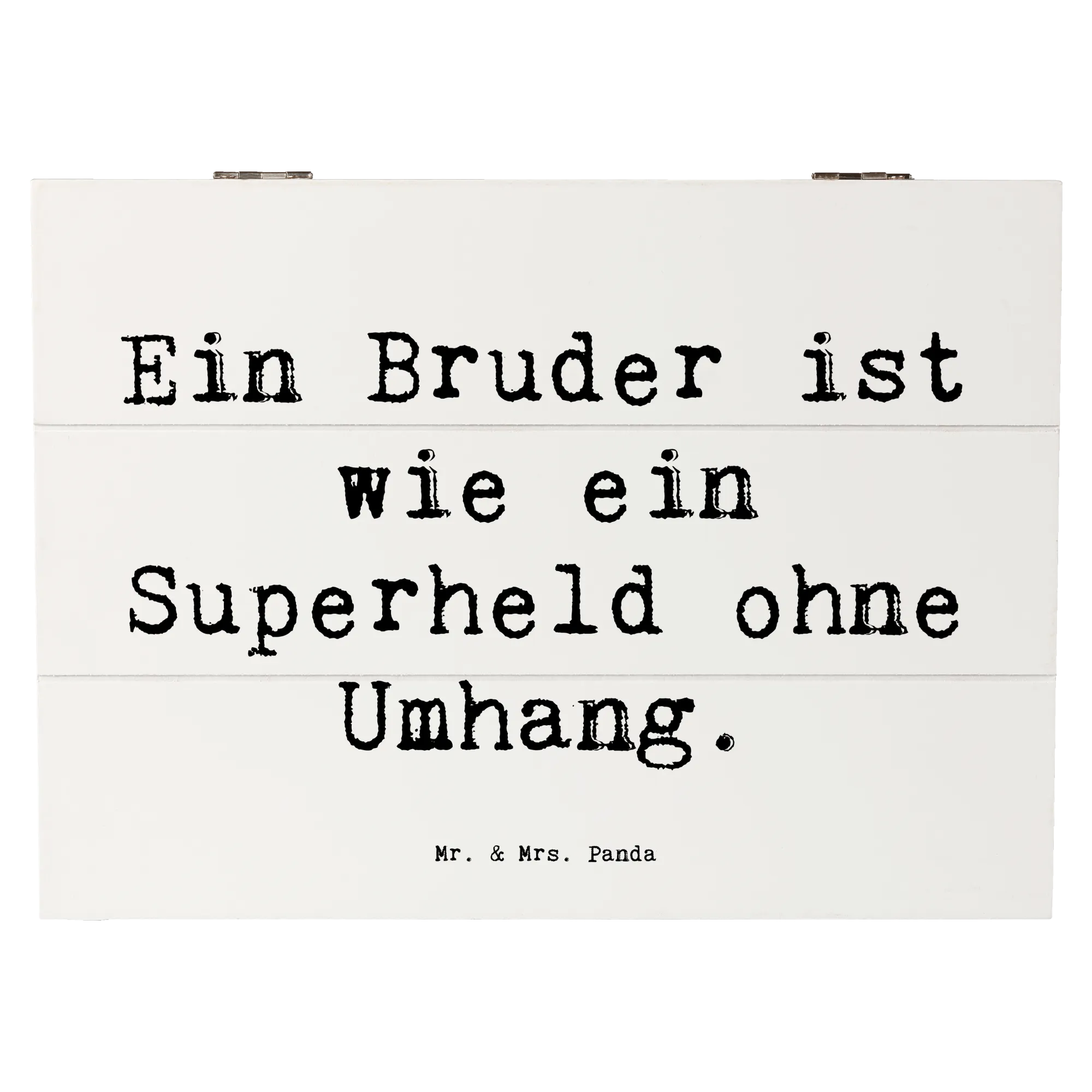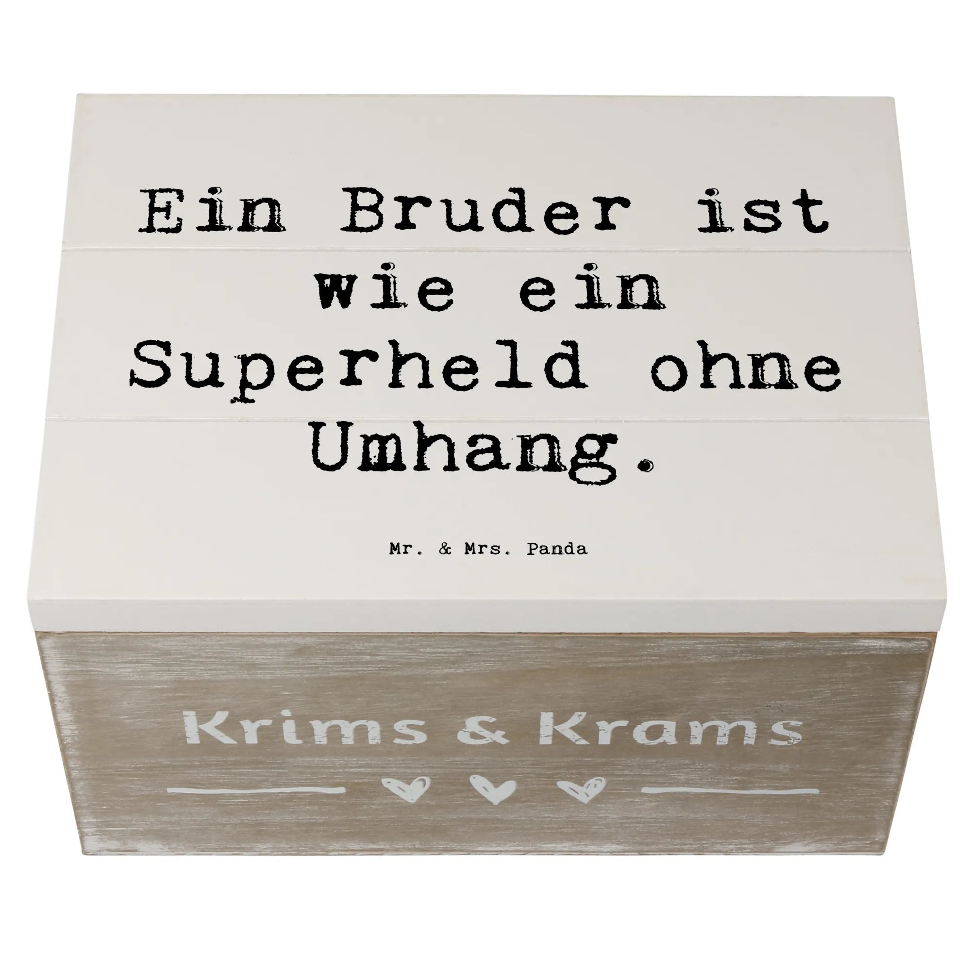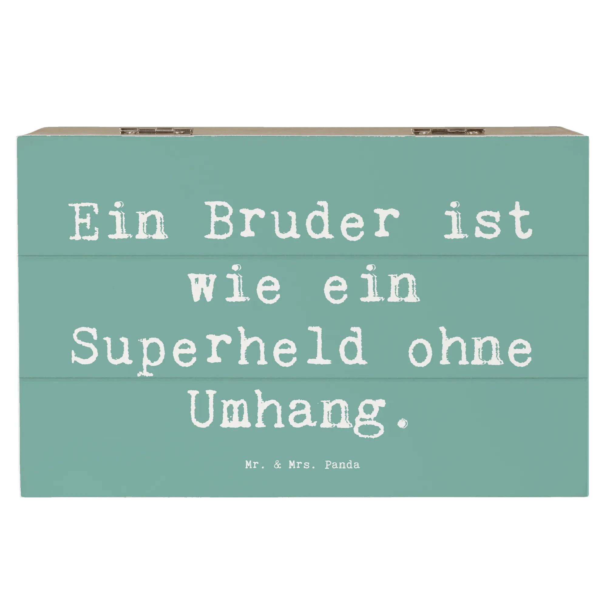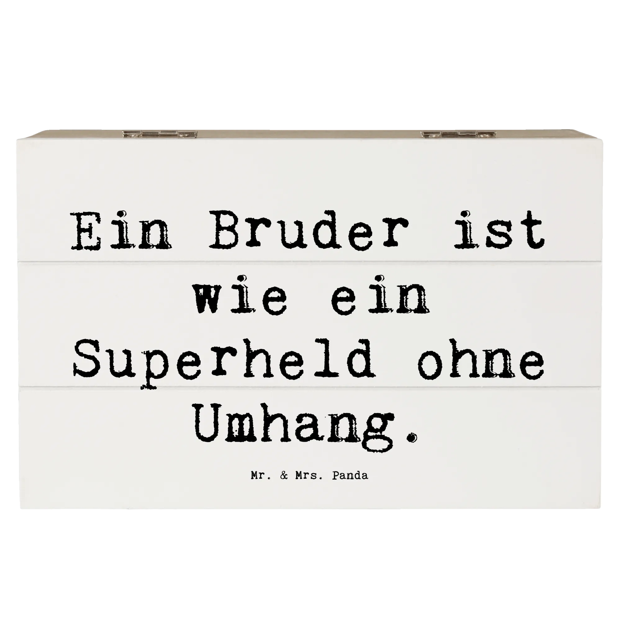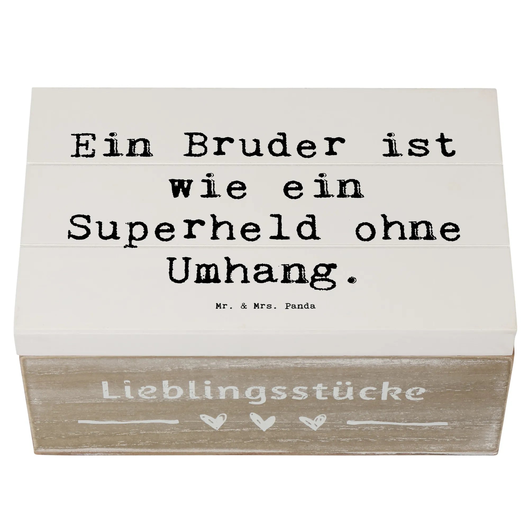 Die wunderschöne Holzkiste von Mr. & Mrs. Panda mit dem Motto 'Ein Bruder ist wie ein Superheld ohne Umhang' ist das perfekte Geschenk für jeden Anlass!