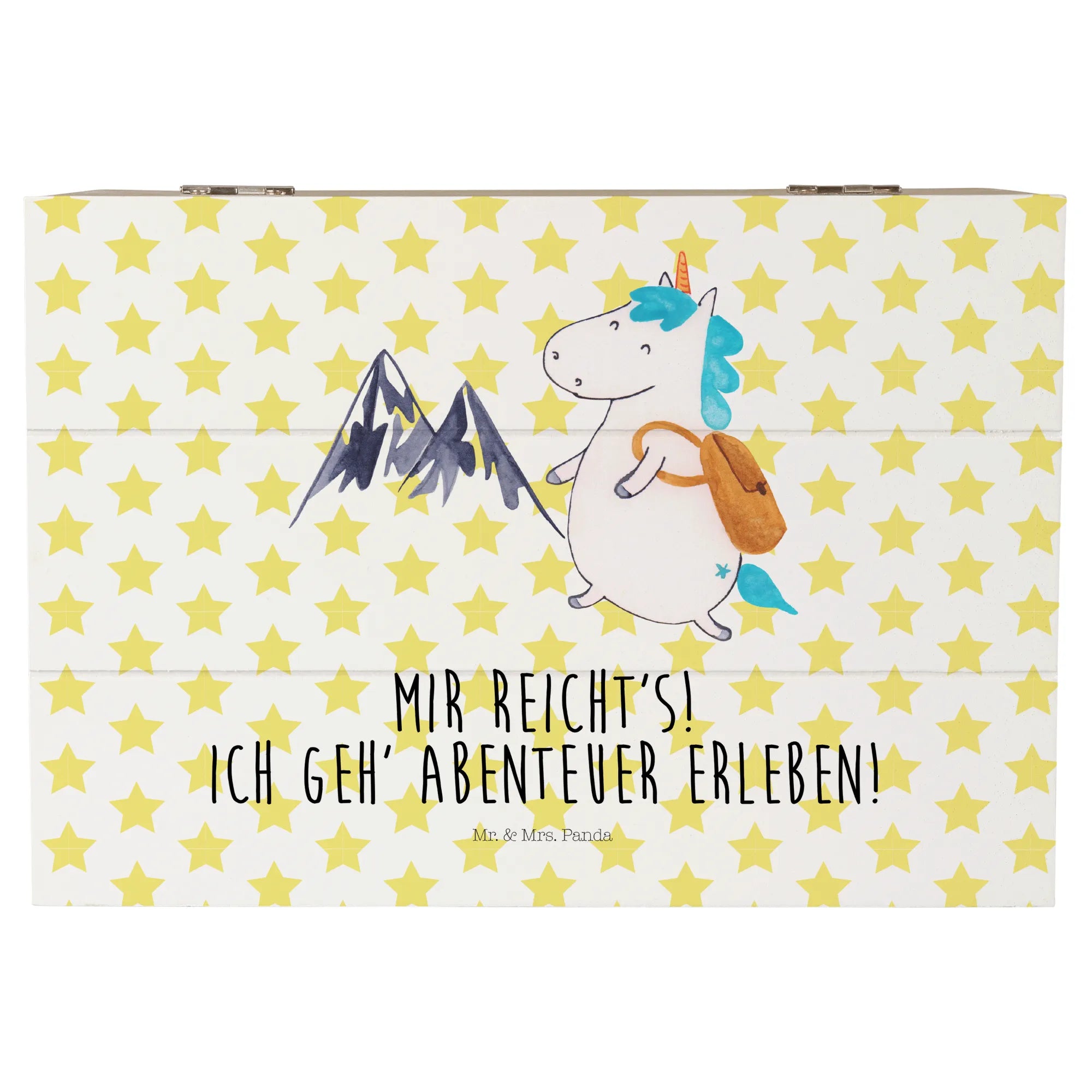 Die wunderschöne Holzkiste von Mr. & Mrs. Panda ist das perfekte Geschenk für alle Einhorn-Fans und Abenteuerlustigen! Mit einem zauberhaften Design, das ein niedliches Einhorn zeigt, das als Bergsteiger in die Berge wandert, wird diese Kiste schnell zum Lieblingsstück.