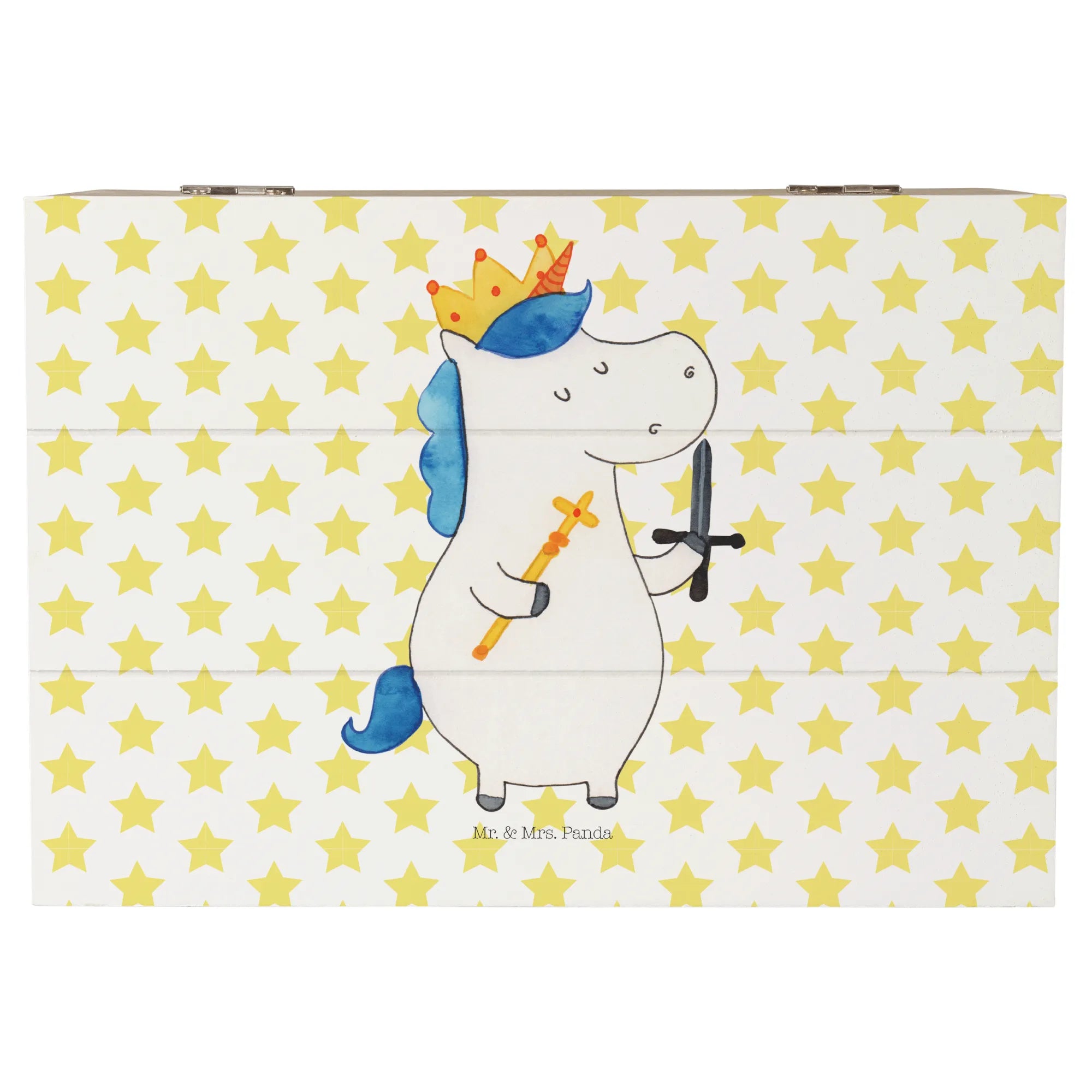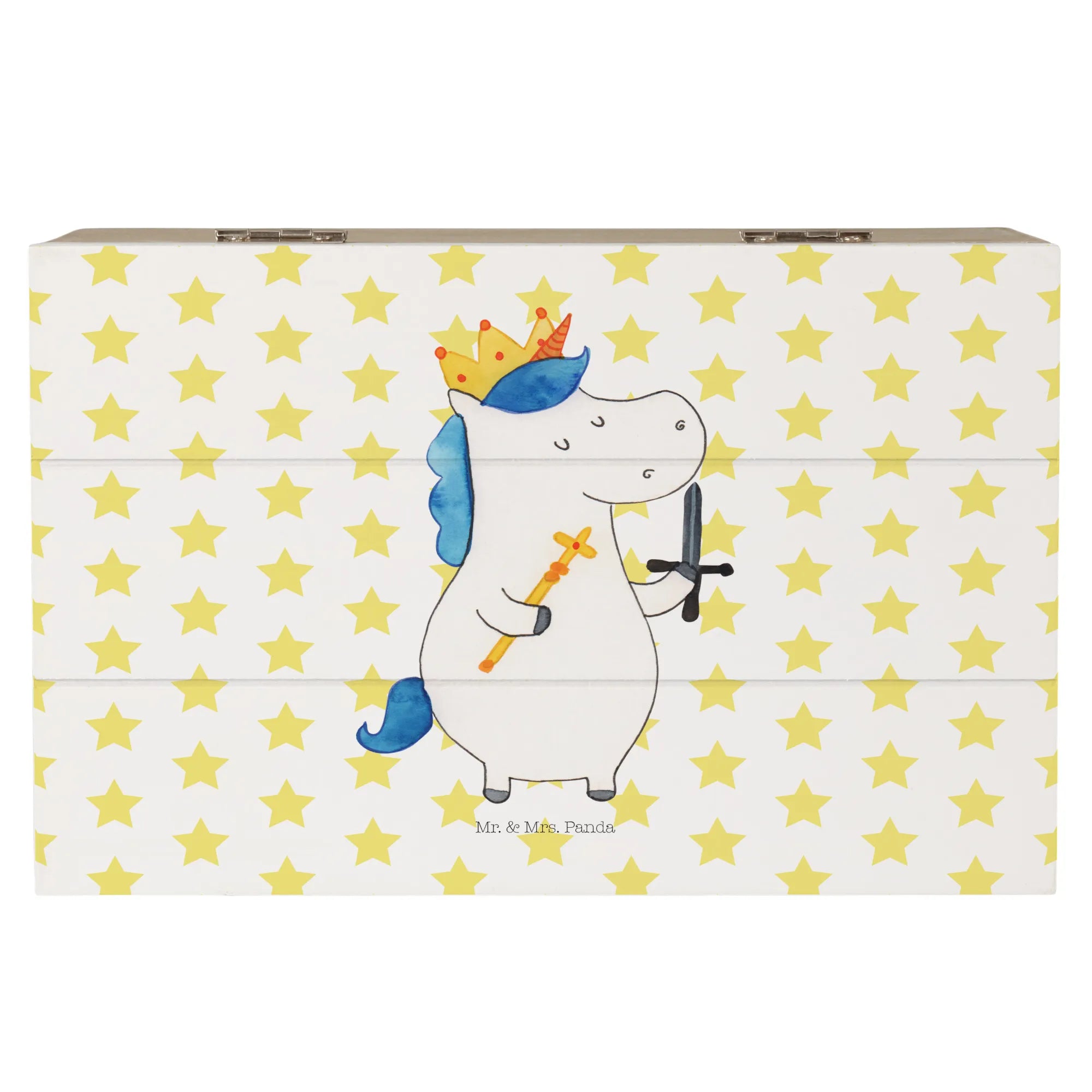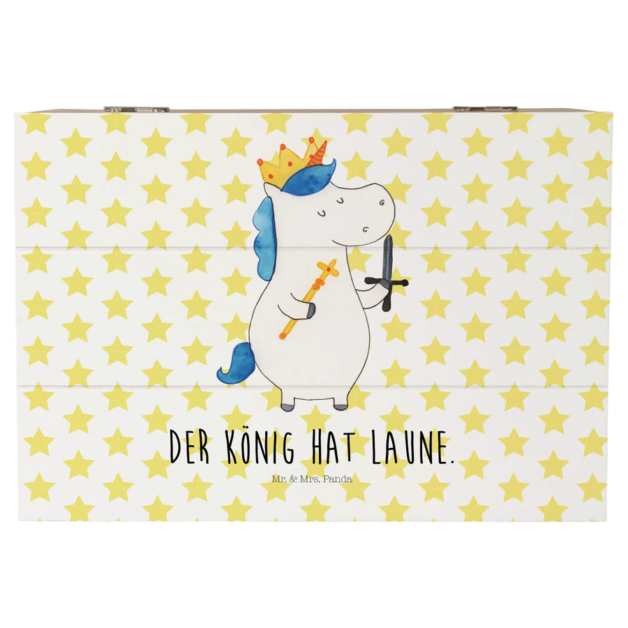 Die wunderschöne Holzkiste mit dem bezaubernden Design "Einhorn König mit Schwert" von Mr. & Mrs. Panda ist das perfekte Geschenk für alle Einhornliebhaber und kleine Ritter!