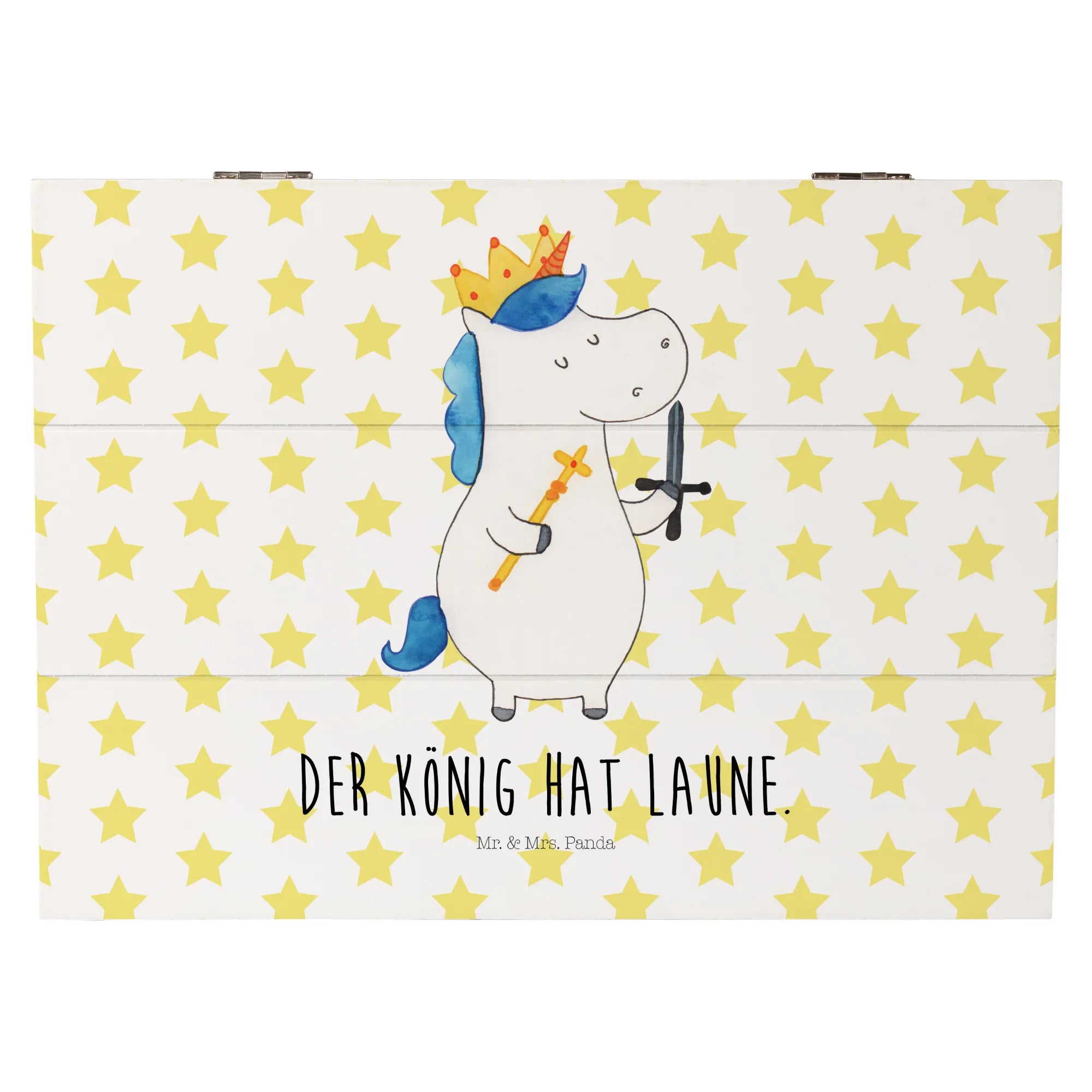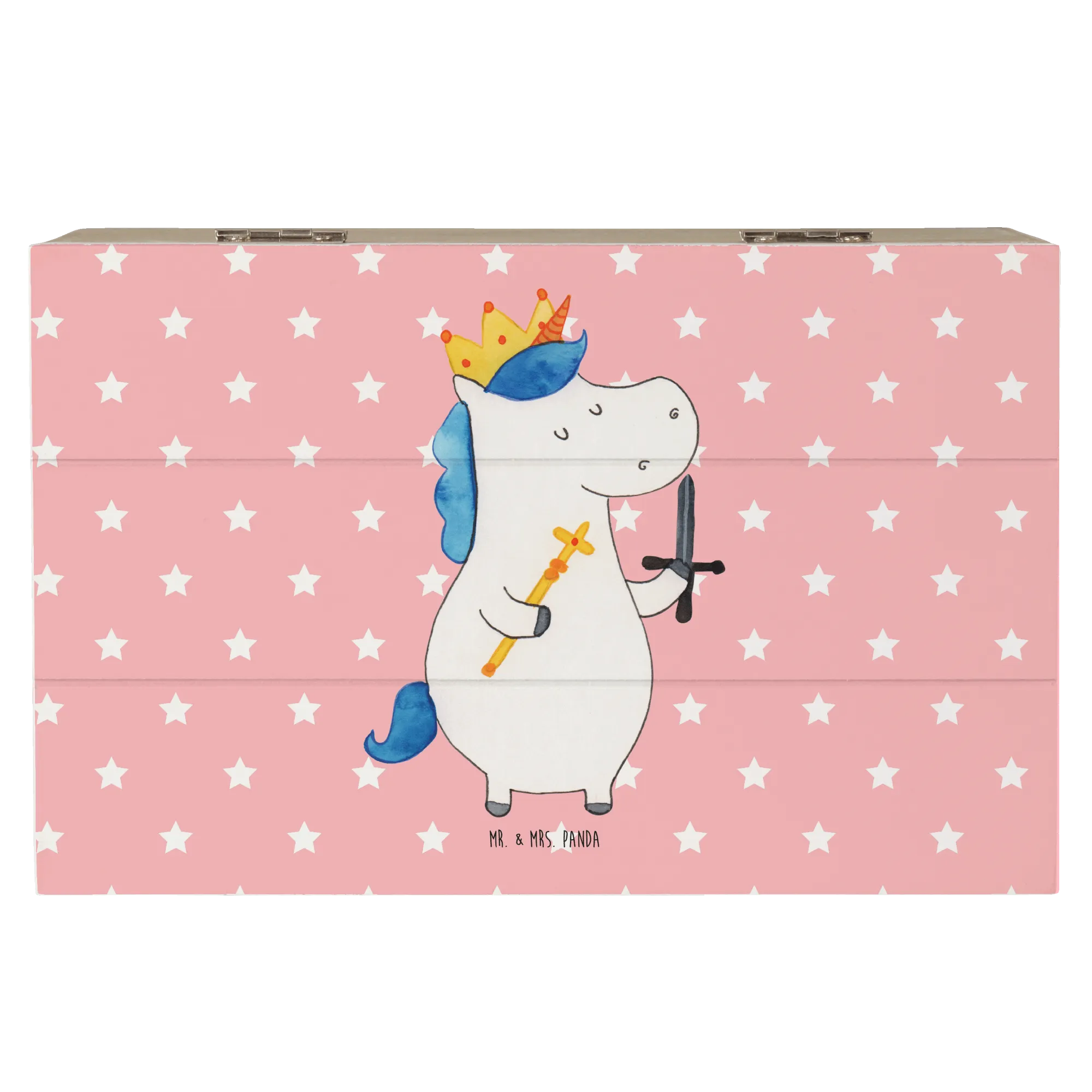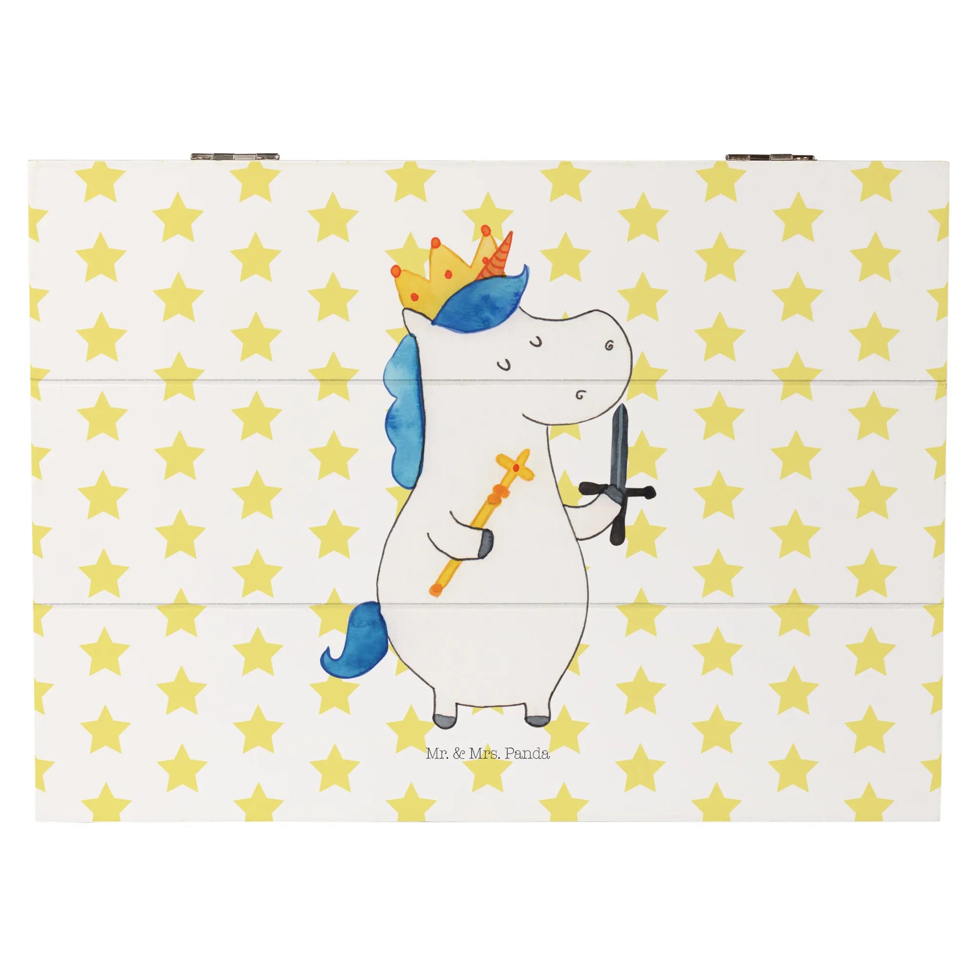 Die wunderschöne Holzkiste mit dem bezaubernden Design "Einhorn König mit Schwert" von Mr. & Mrs. Panda ist das perfekte Geschenk für alle Einhornliebhaber und kleine Ritter!