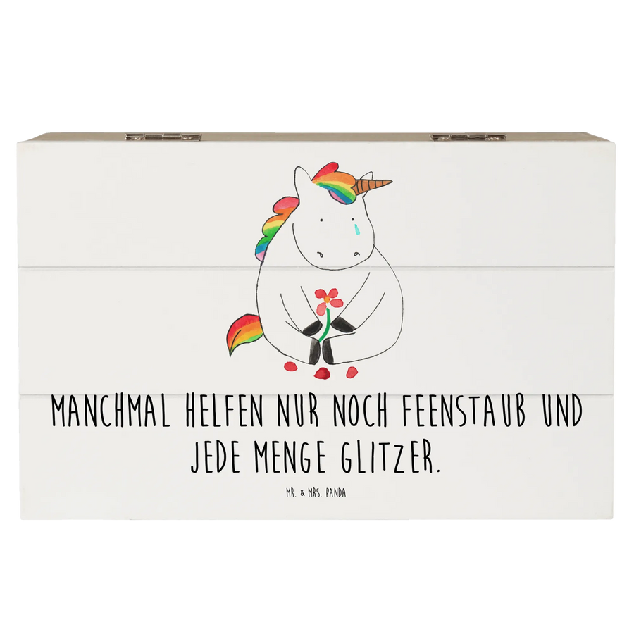 Du bist auf der Suche nach dem perfekten Geschenk für jemanden, der Einhörner liebt? Dann ist die wunderschöne Holzkiste "Einhorn Traurig" aus der Einhorn-Kollektion von Mr. & Mrs. Panda genau das Richtige! Mit ihrer zauberhaften Gestaltung ist sie nicht nur ein praktischer Aufbewahrungsort für deine Schätze, sondern auch ein echter Hingucker.