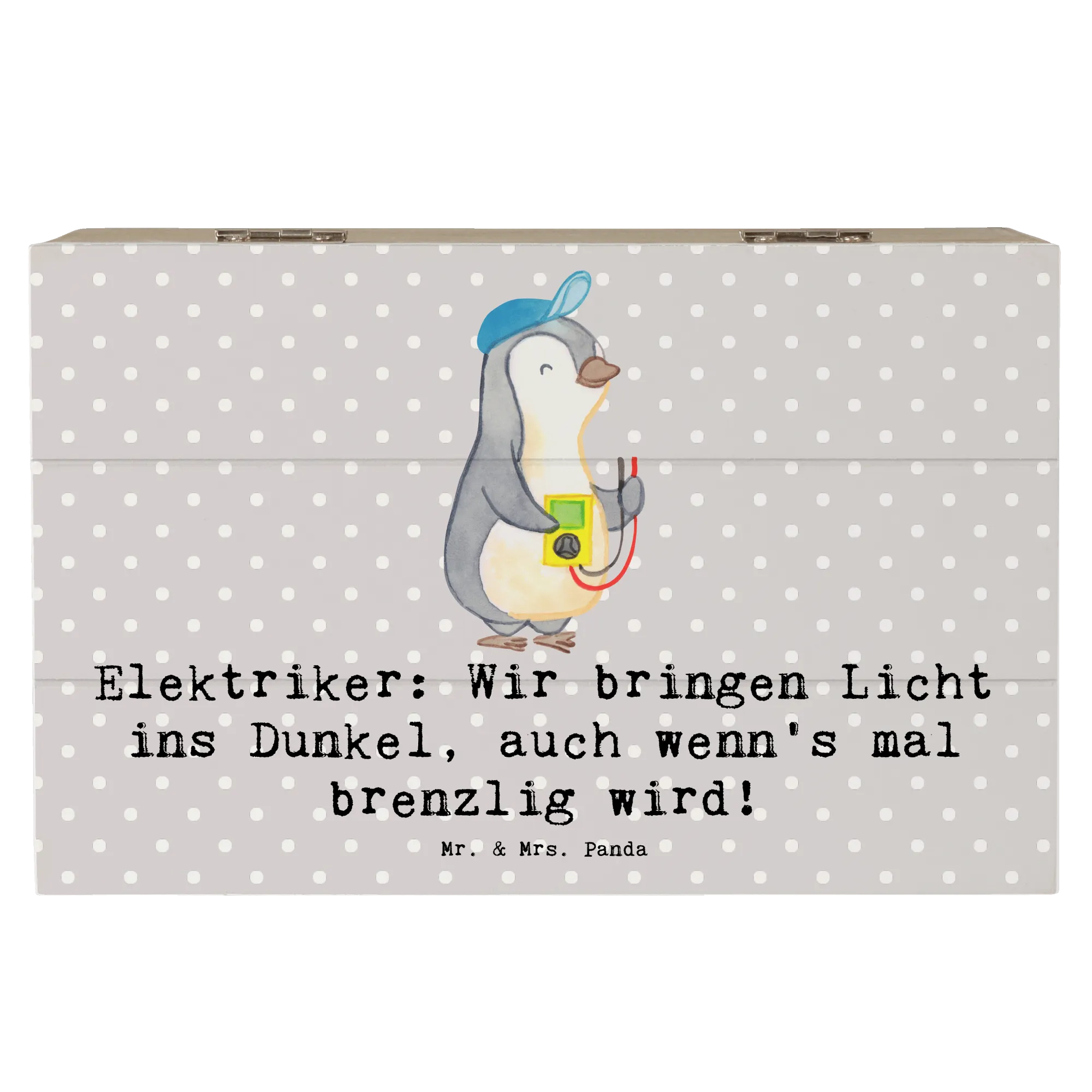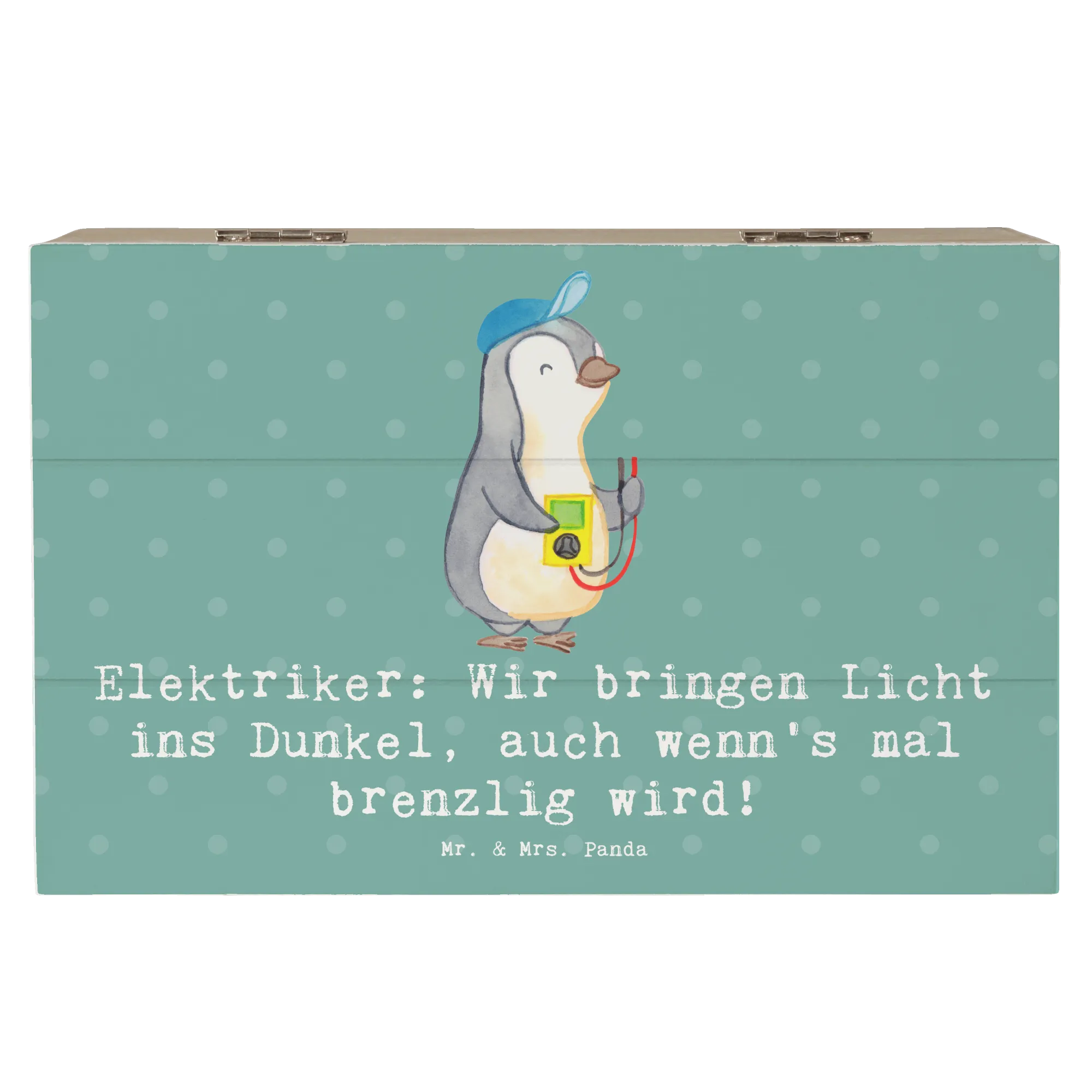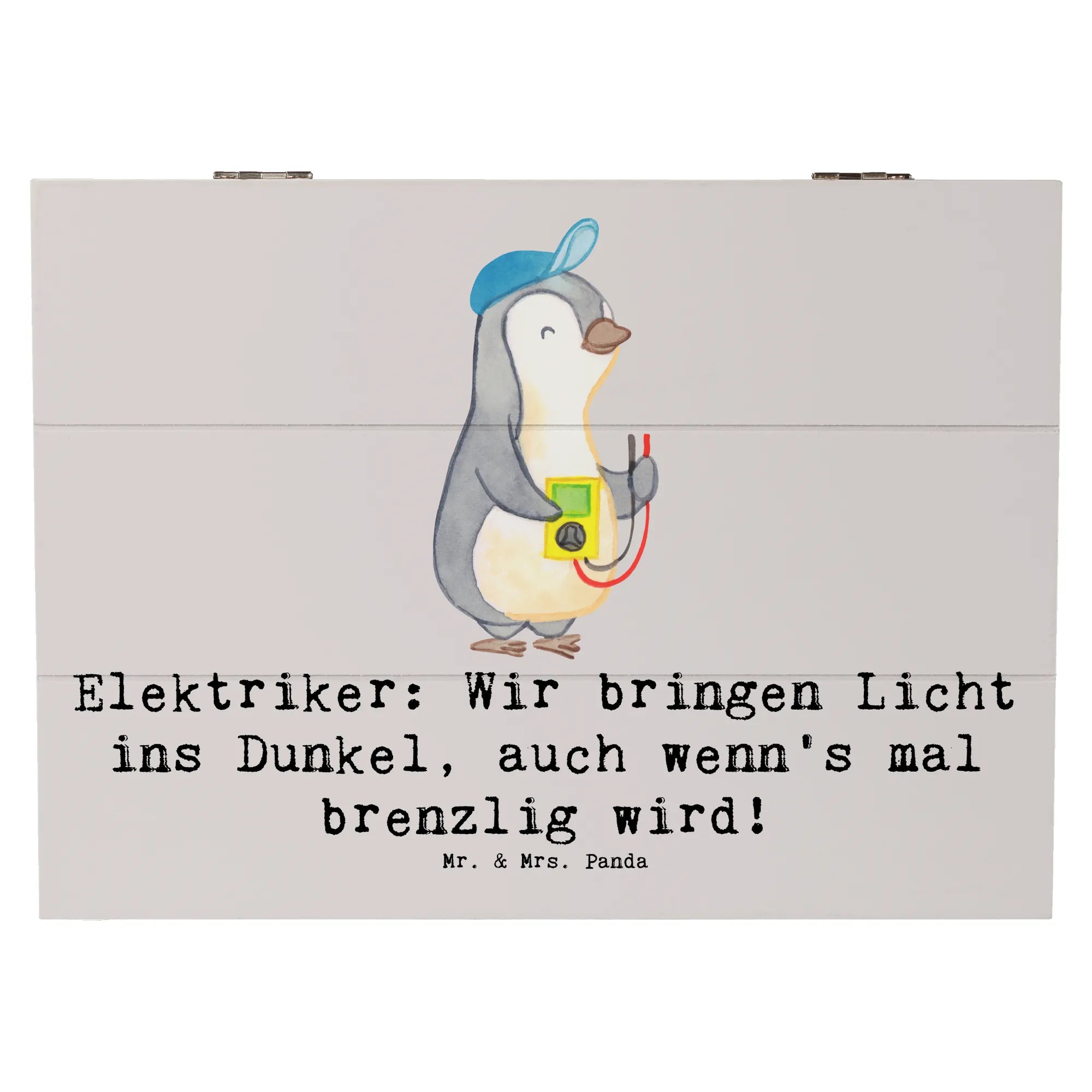 Willkommen in der zauberhaften Welt von Mr. & Mrs. Panda! Hier präsentieren wir dir die perfekte Holzkiste für alle Elektriker, die das Licht in dunkle Ecken bringen. Diese wundervolle Erinnerungskiste, bedruckt mit dem humorvollen Spruch: „Elektriker: Wir bringen Licht ins Dunkel, auch wenn's mal brenzlig wird!“, ist nicht nur funktional, sondern auch ein echtes Schmuckstück.