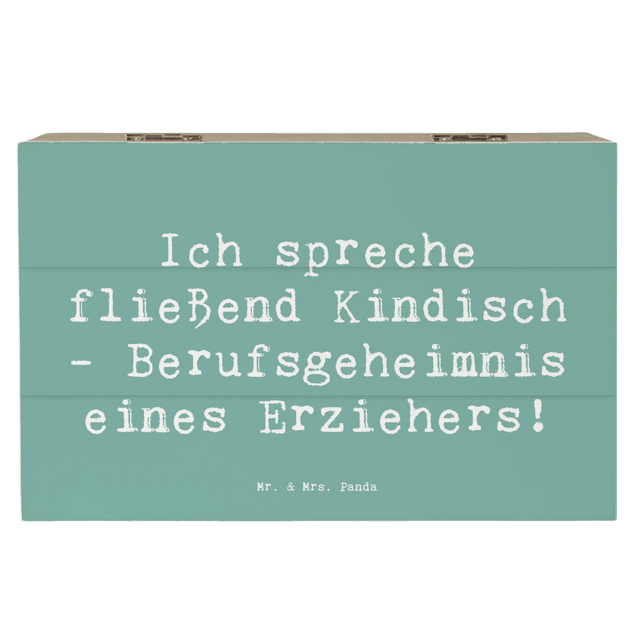 Die wunderschöne Holzkiste 'Ich spreche fließend Kindisch - Berufsgeheimnis eines Erziehers!' von Mr. & Mrs. Panda ist das perfekte Geschenk für alle Erzieher und Pädagogen.