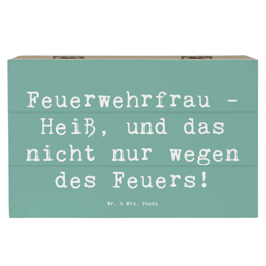 Die Holzkiste "Feuerwehrfrau - Heiß, und das nicht nur wegen des Feuers!" von Mr. & Mrs. Panda ist das perfekte Geschenk für alle Feuerwehrfrauen und solche, die es werden wollen! Diese wunderschöne Holzkiste mit einem liebevollen und humorvollen Spruch ist mehr als nur ein praktischer Aufbewahrungsort. Sie eignet sich hervorragend als Erinnerungskiste für wertvolle Momente aus der Kindheit, Kommunion oder Konfirmation und kann auch als nachhaltige Geschenkbox genutzt werden.
