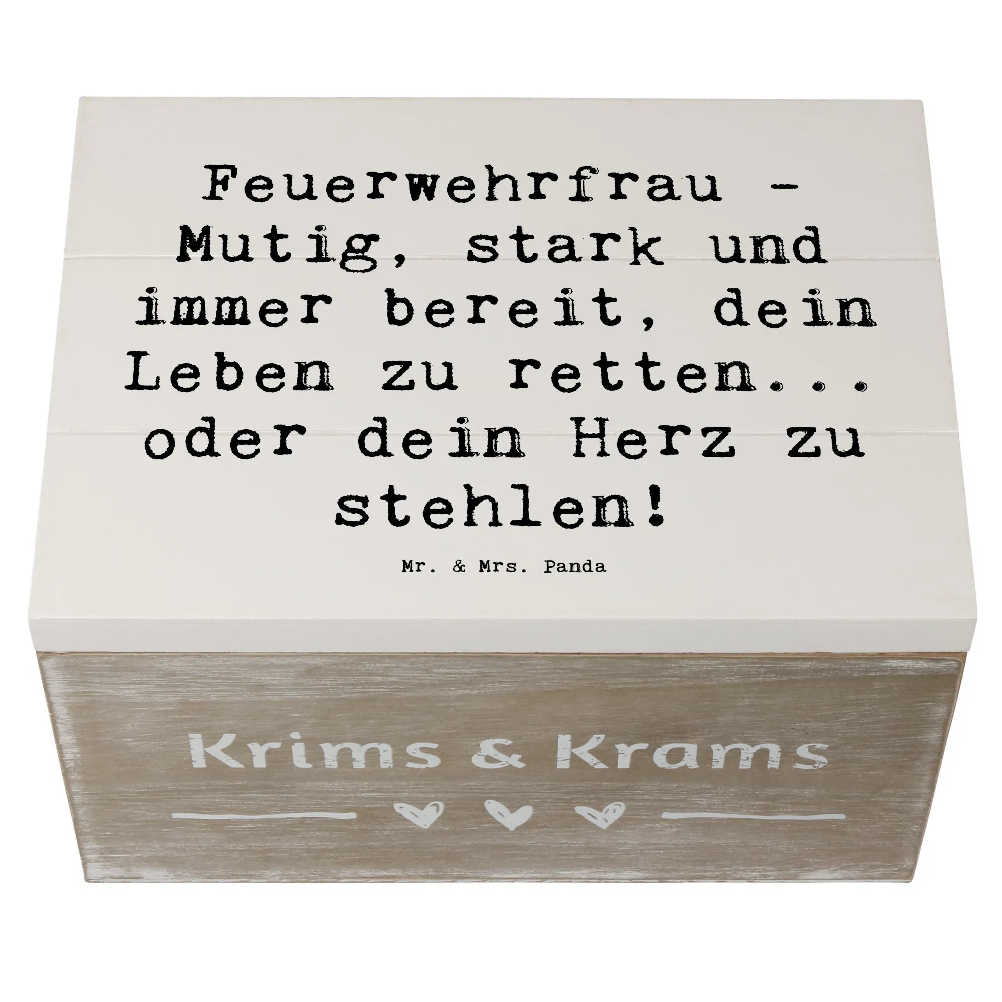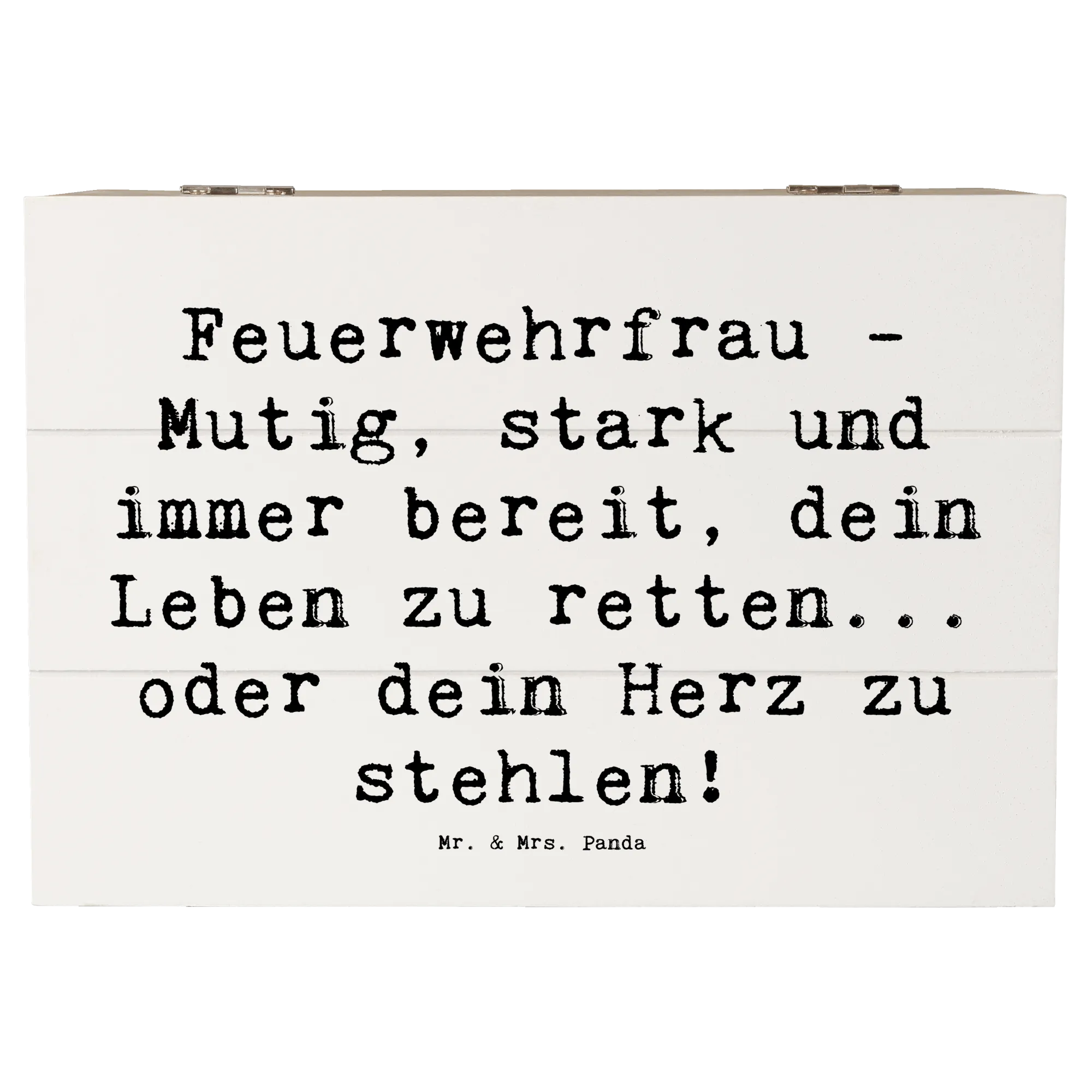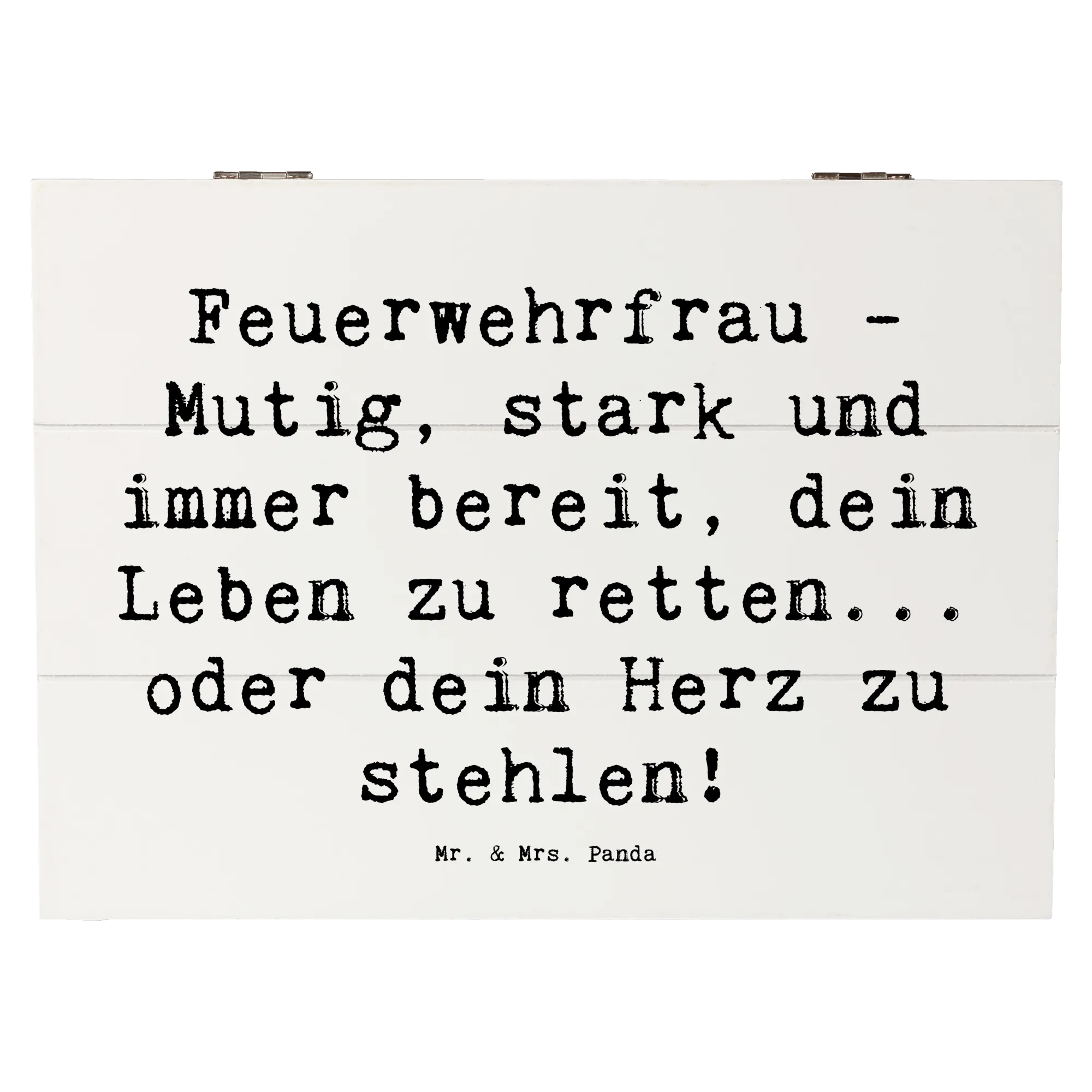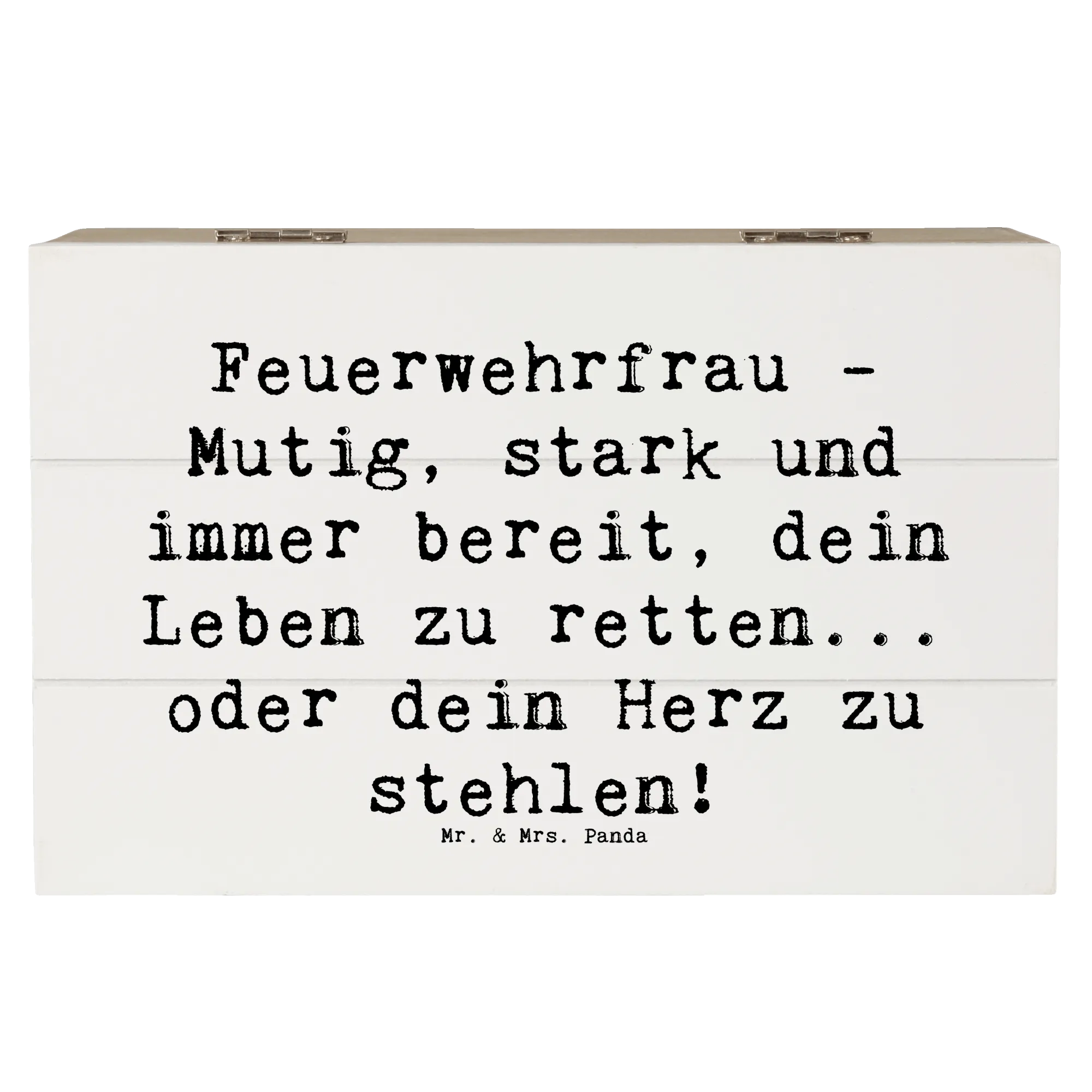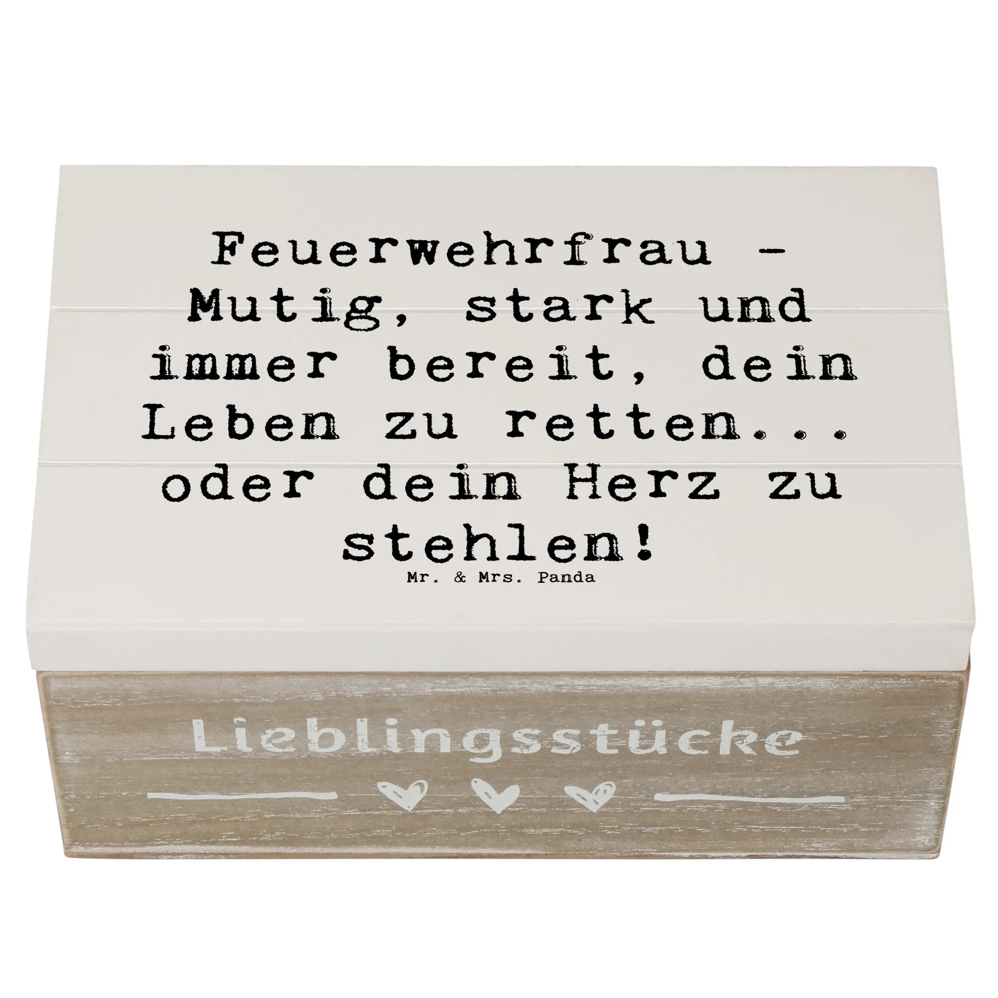 Entdecke die bezaubernde Holzkiste Feuerwehrfrau von Mr. & Mrs. Panda – das perfekte Geschenk für Feuerwehrfrauen und alle, die ihren Mut und ihre Stärke schätzen!