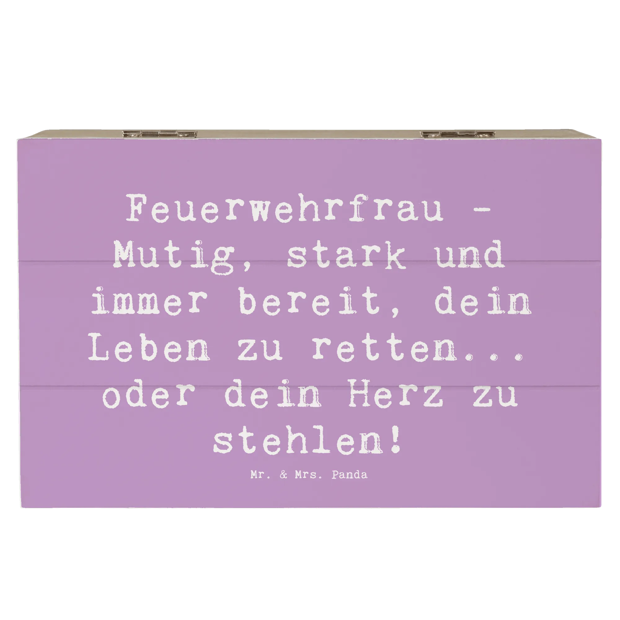 Die wunderschöne Holzkiste von Mr. & Mrs. Panda ist das perfekte Geschenk für Feuerwehrfrauen! Diese einzigartige Erinnerungskiste wurde mit viel Liebe zum Detail gestaltet und ist ein wunderbarer Aufbewahrungsort für all die kleinen Schätze, die das Leben so besonders machen. Ob persönliche Erinnerungen, Fotos aus der Dienstzeit oder kleine Geschenke – in dieser Kiste finden sie einen sicheren Platz. Mit ihrem eindrucksvollen Motiv 'Feuerwehrfrau - Mutig, stark und immer bereit, dein Leben zu retten... oder dein Herz zu stehlen!' spricht diese Kiste die Herzen aller Feuerwehrfrauen an. Ideal für besondere Anlässe wie Geburtstage, Jubiläen oder als Dankeschön für den unermüdlichen Einsatz im Feuerwehrdienst.