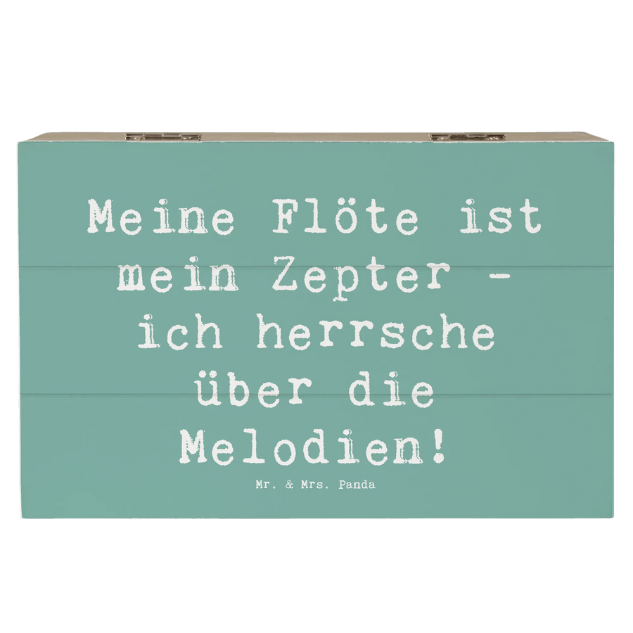 Entdecke die wunderschöne Holzkiste von Mr. & Mrs. Panda, die perfekt für Musikliebhaber und Flötenspieler ist. Mit dem liebevollen Motiv der Flöte und dem inspirierenden Spruch "Meine Flöte ist mein Zepter - ich herrsche über die Melodien!" wird diese Kiste zum idealen Geschenk für jeden Musiker oder Musikbegeisterten.