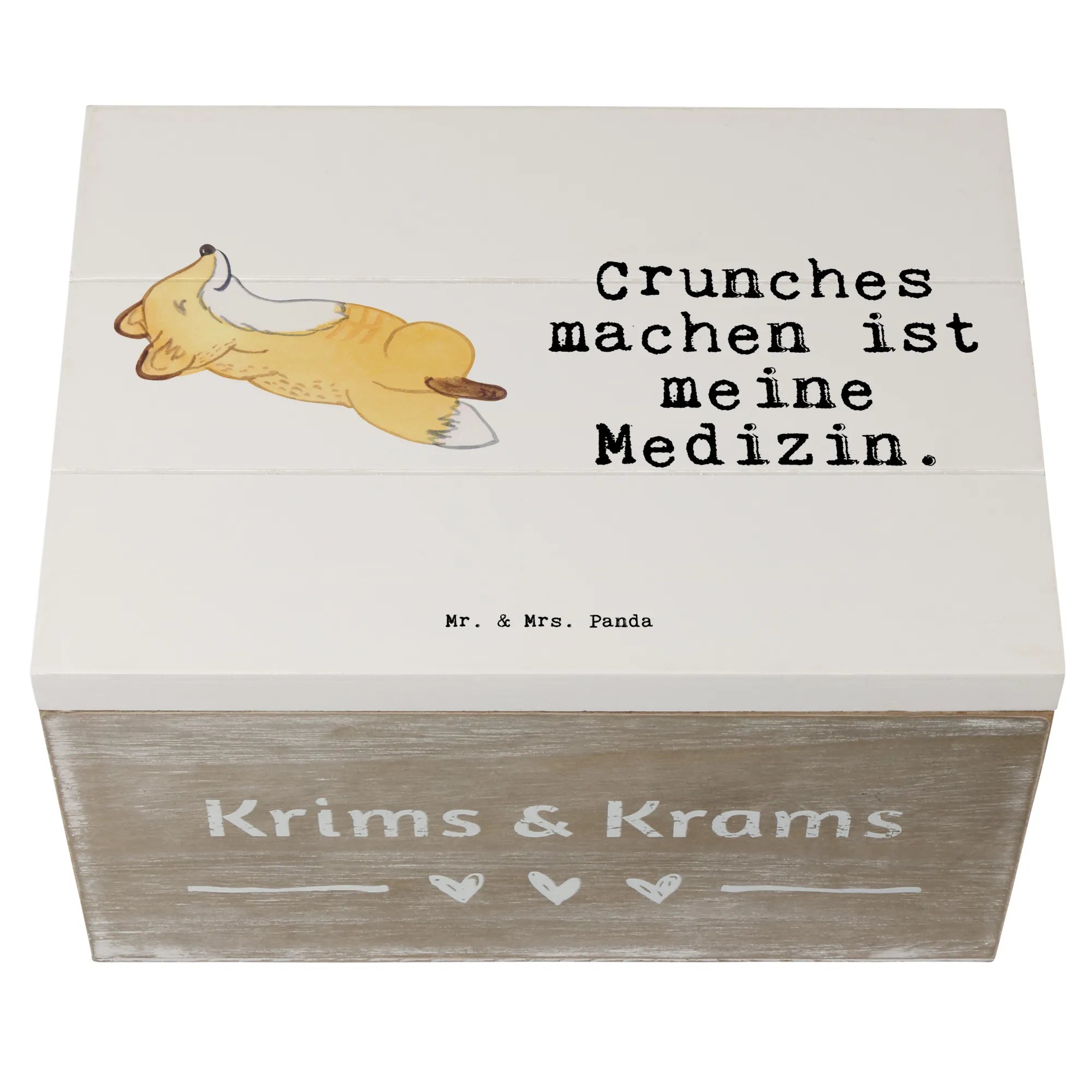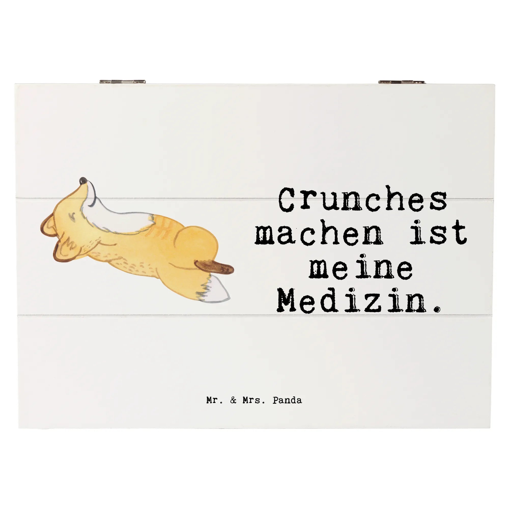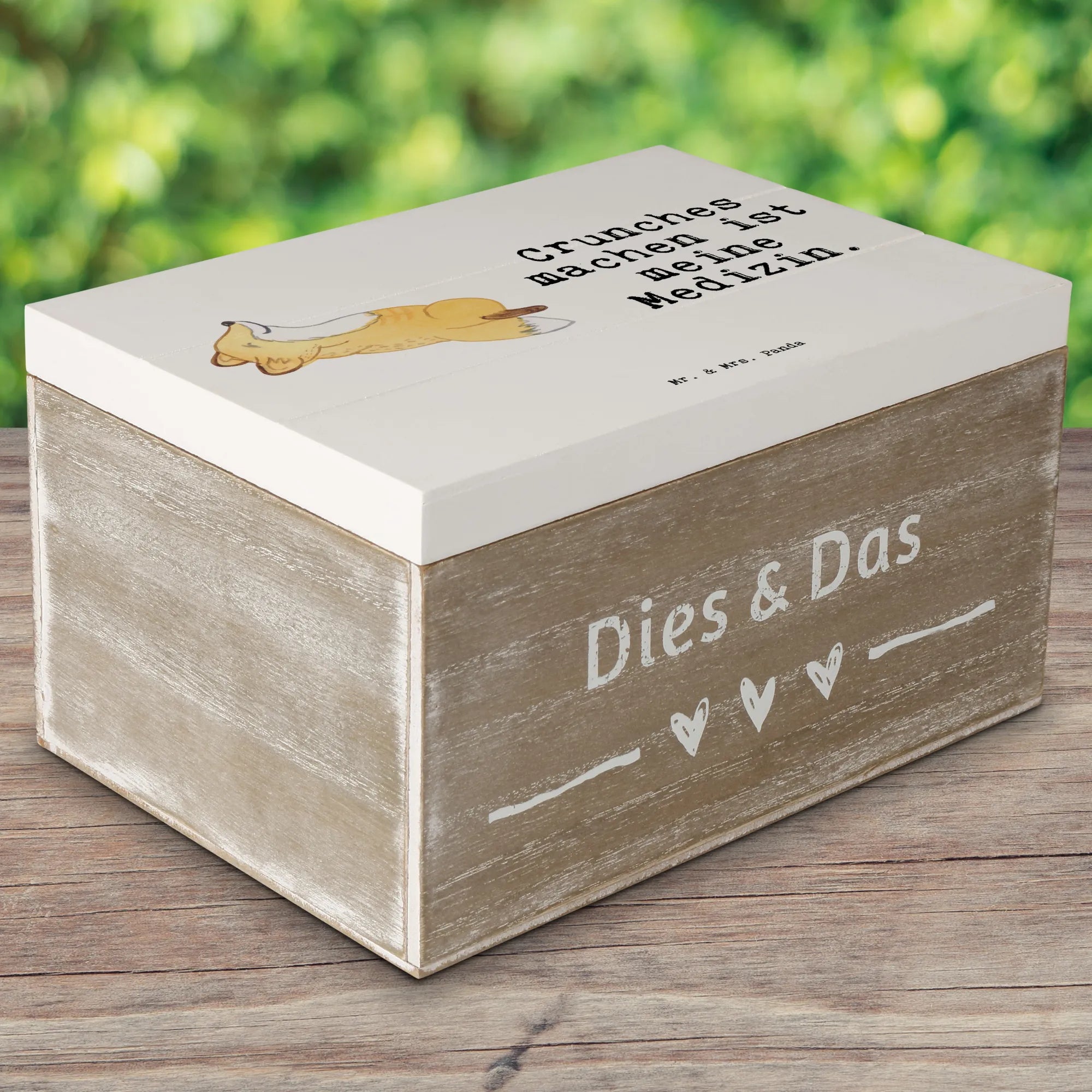 Die Holzkiste Fuchs Crunches Medizin von Mr. & Mrs. Panda ist das perfekte Geschenk für sportbegeisterte Menschen, die ihren Fitness-Lifestyle in vollen Zügen genießen. Diese wunderschöne Holzkiste ist nicht nur ein idealer Aufbewahrungsort für alle möglichen Schätze, sondern auch ein echter Hingucker mit ihrem liebevoll gestalteten Motiv eines süßen Fuchses, der unter höchster Anstrengung Crunches macht. Der dazugehörige Slogan 'Crunches machen ist meine Medizin' macht diese Kiste zu einem unterhaltsamen Begleiter für alle Fitness-Fans und solche, die es werden wollen.