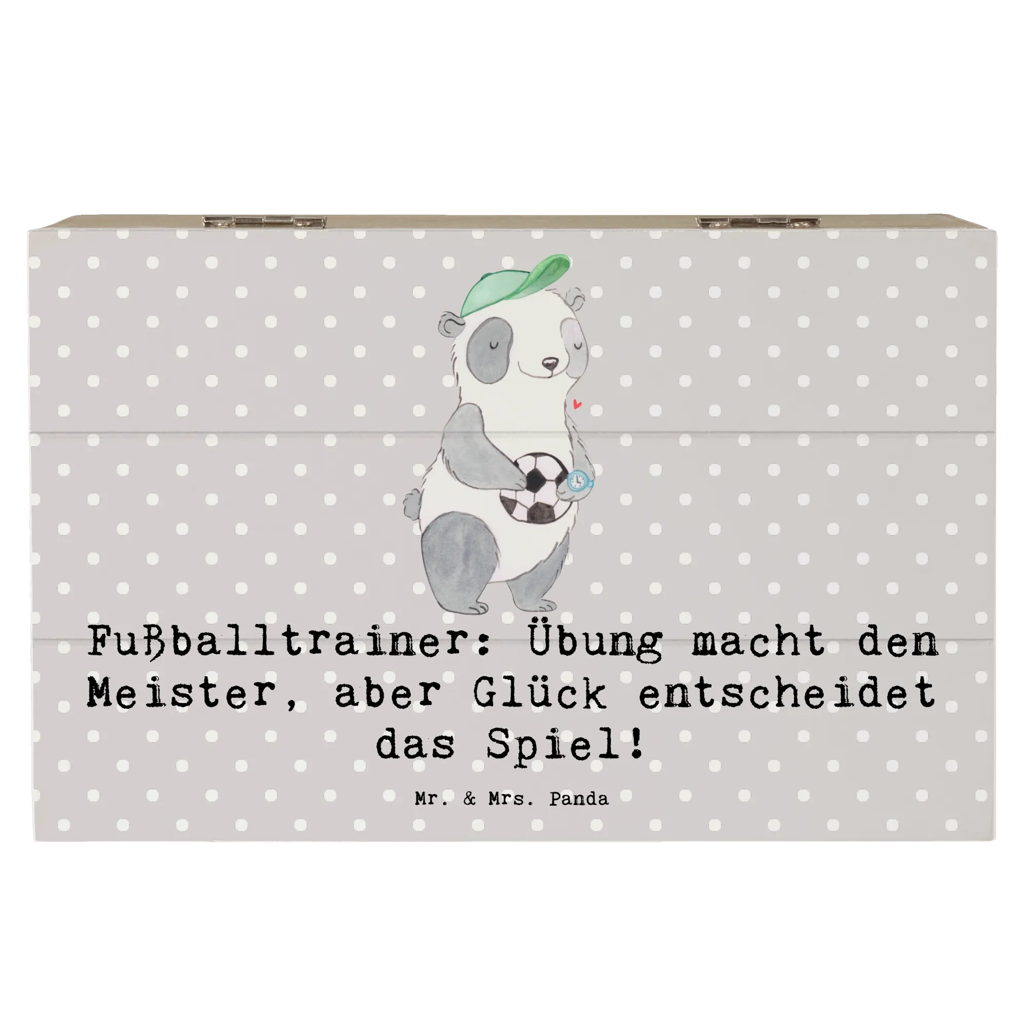 Suchst du das perfekte Geschenk für einen Fußballtrainer? Unsere wunderschöne Holzkiste mit dem Motto 'Fußballtrainer: Übung macht den Meister, aber Glück entscheidet das Spiel!' von Mr. & Mrs. Panda ist genau das Richtige!