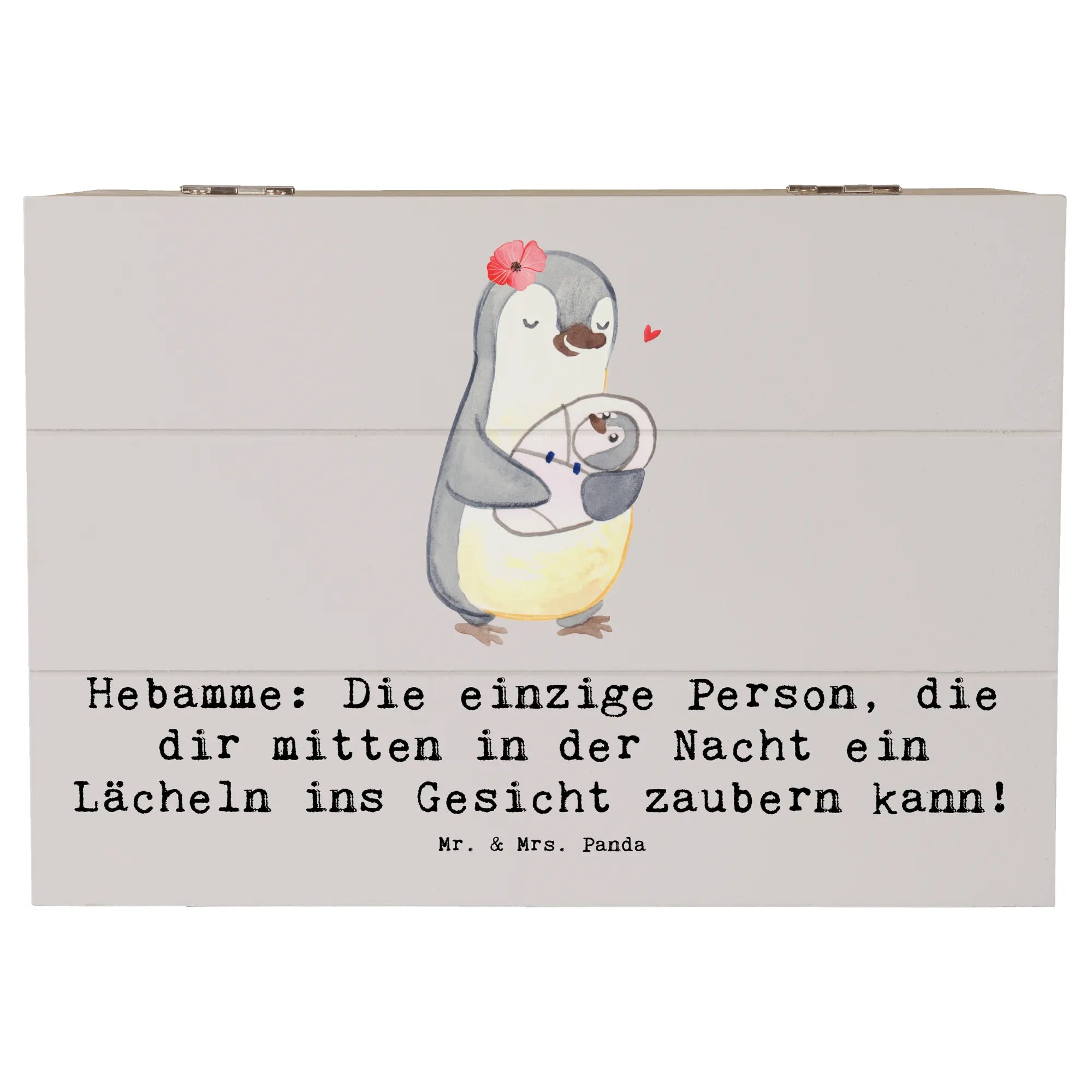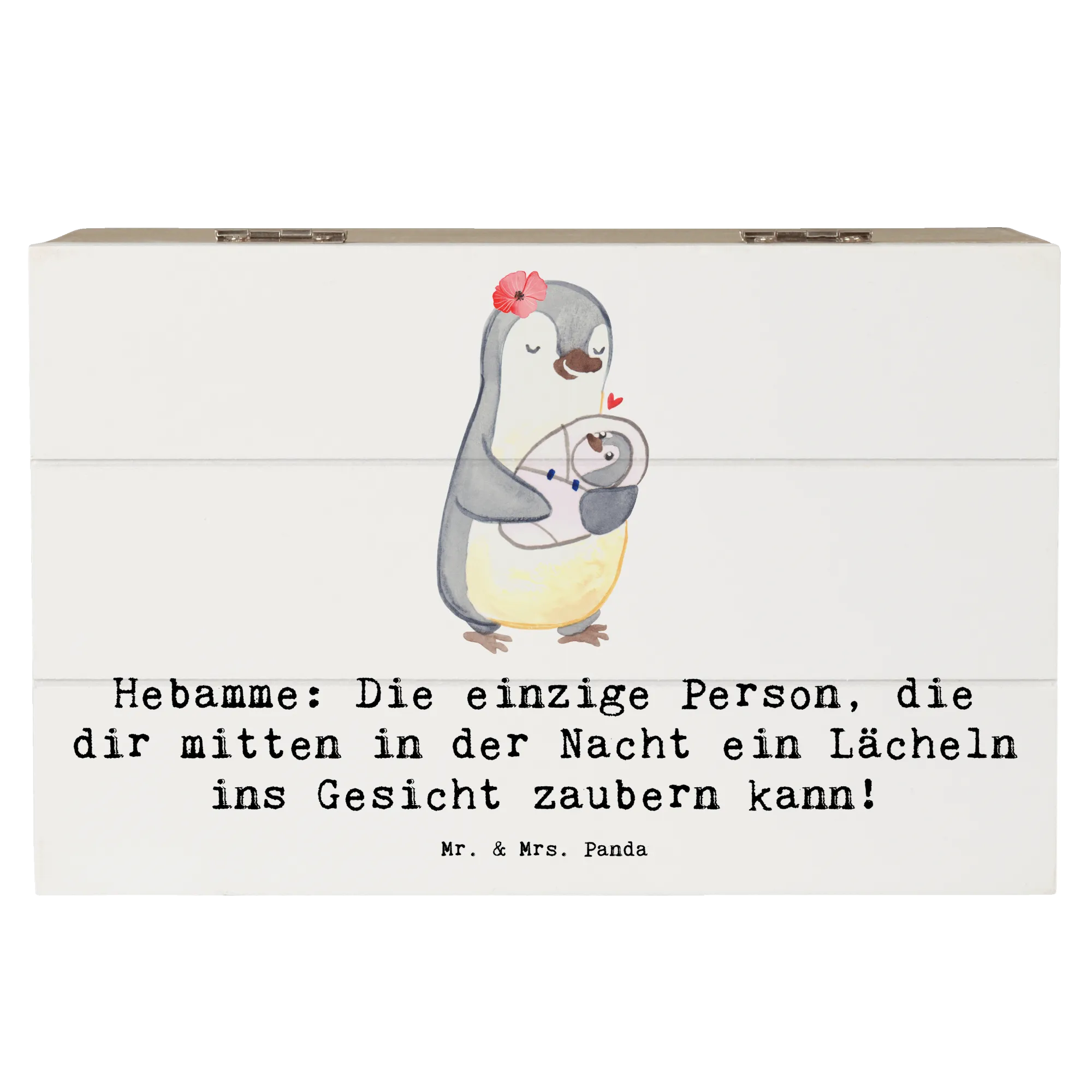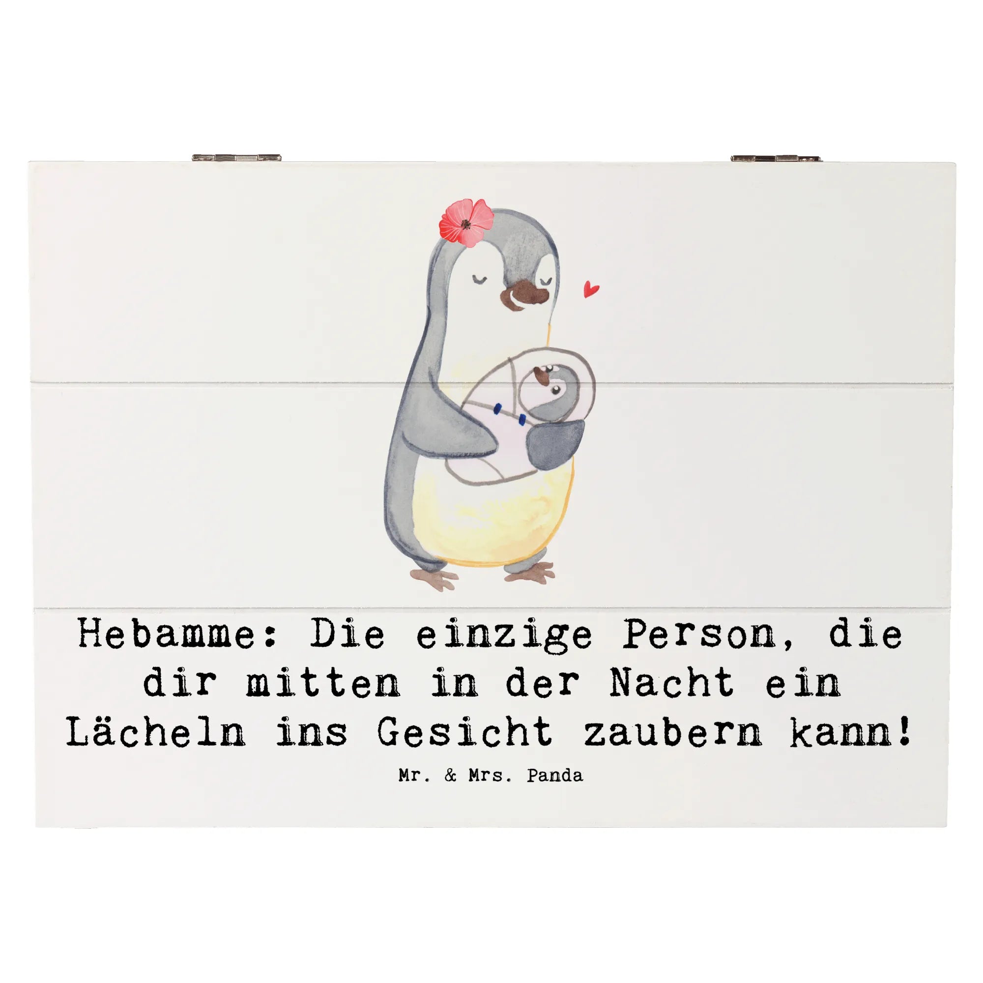 Suchst Du das perfekte Geschenk für eine Hebamme oder möchtest Du Deiner lieben Kollegin einfach mal danke sagen? Dann ist die Holzkiste Hebamme aus der Kollektion Berufe von Mr. & Mrs. Panda genau das Richtige für Dich! Diese wunderschöne Holzkiste ist nicht nur ein Blickfang, sondern auch ein praktischer Begleiter im Alltag. Mit dem liebevoll gestalteten Motiv "Hebamme: Die einzige Person, die dir mitten in der Nacht ein Lächeln ins Gesicht zaubern kann!" zaubert sie garantiert ein Lächeln auf die Gesichter Deiner Lieben.