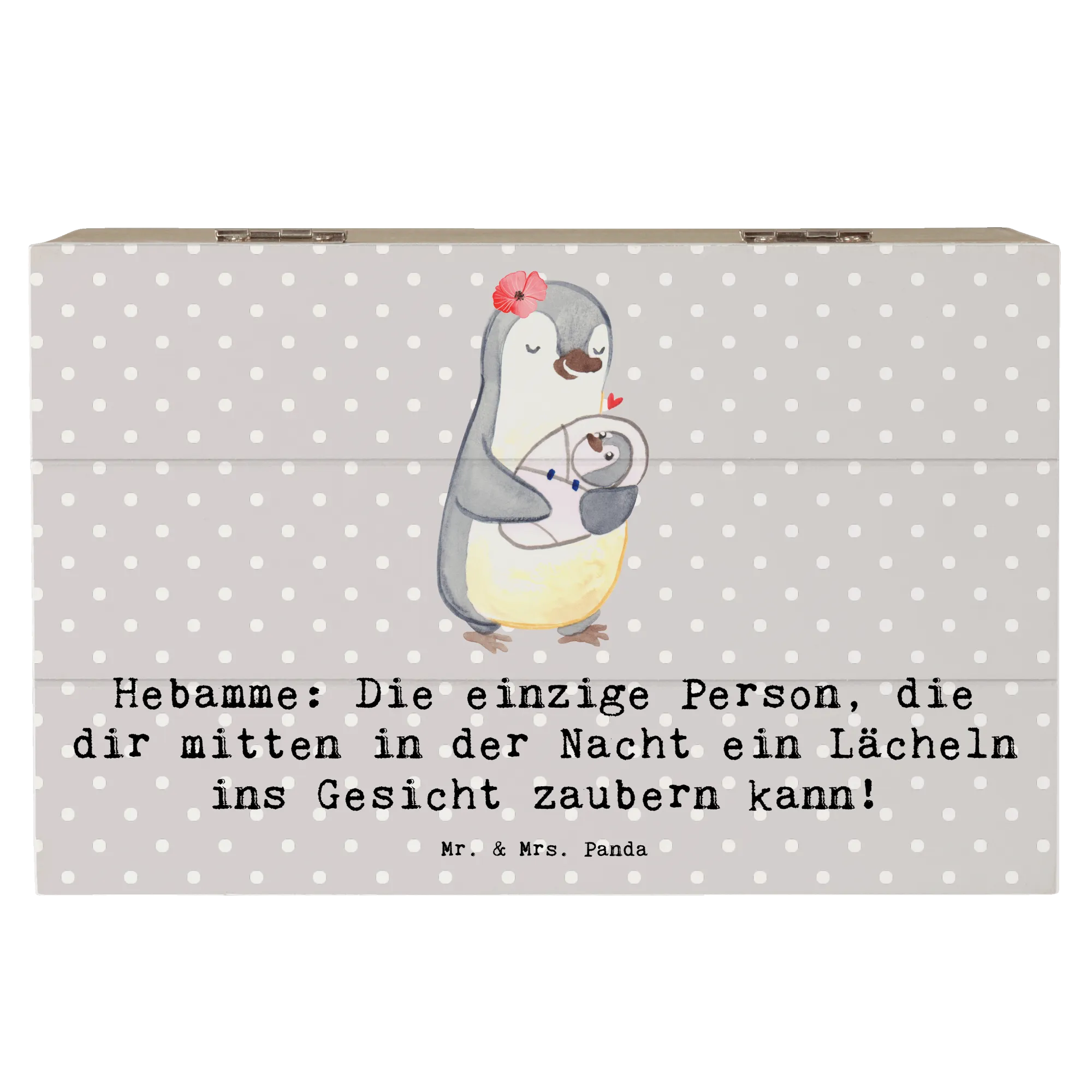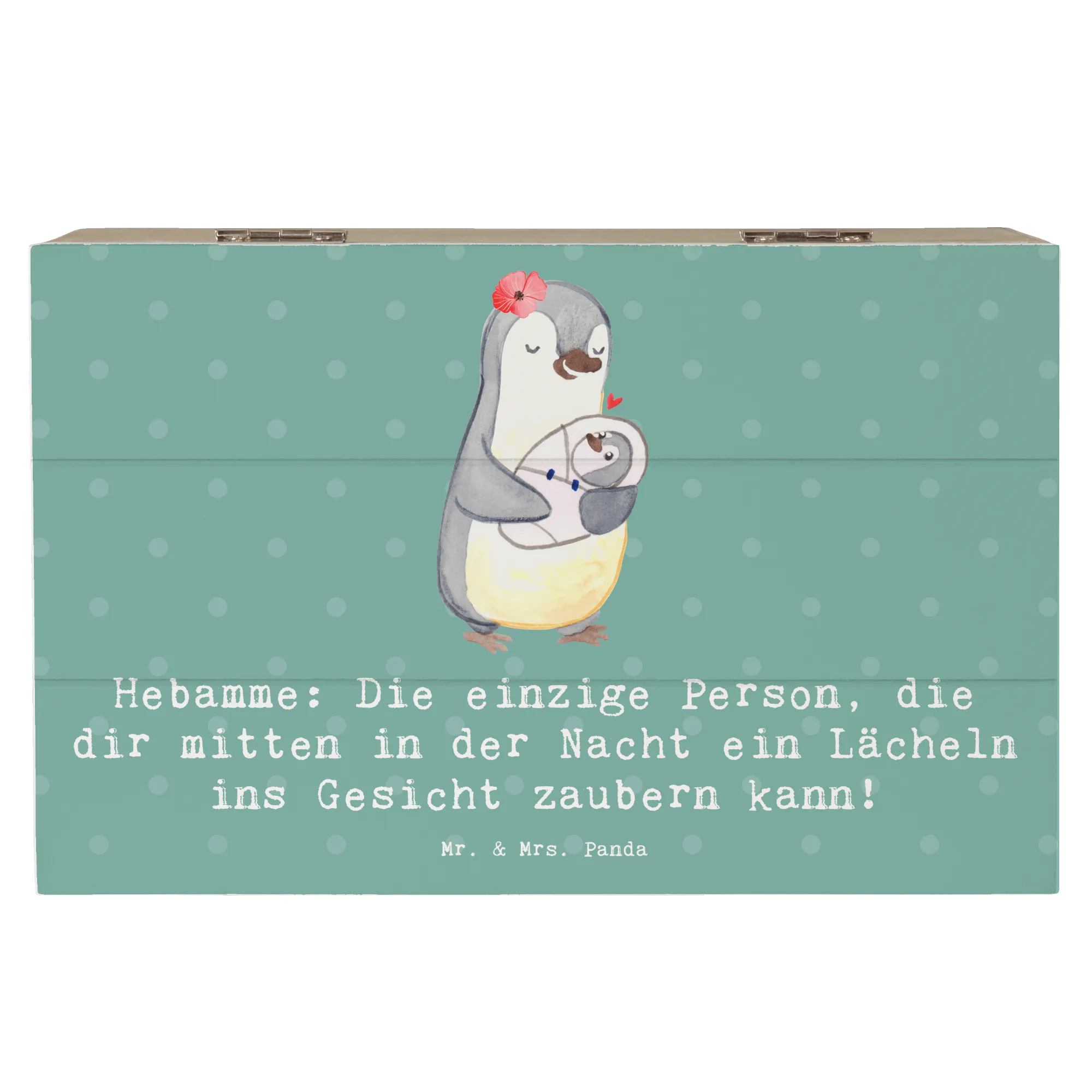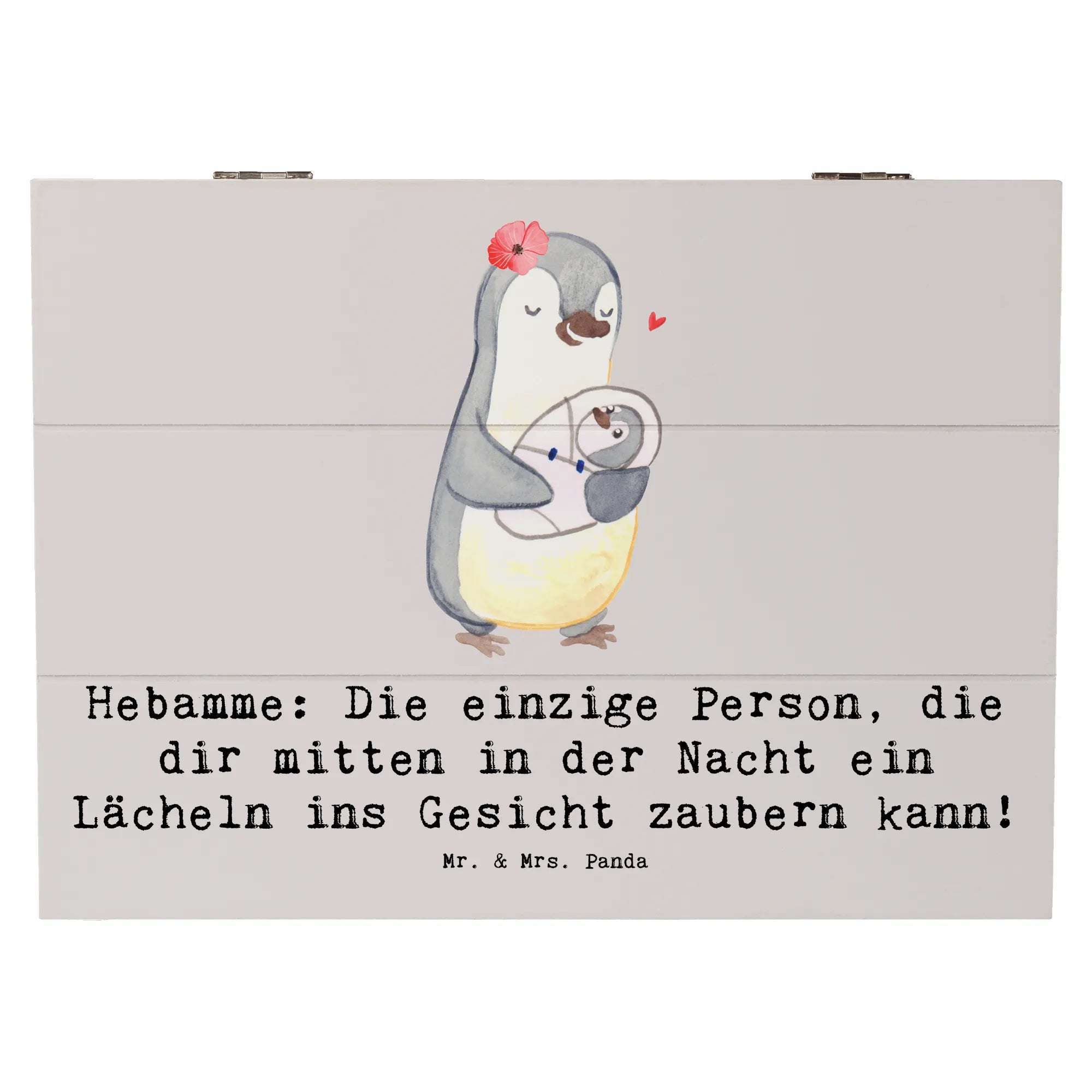 Suchst Du das perfekte Geschenk für eine Hebamme oder möchtest Du Deiner lieben Kollegin einfach mal danke sagen? Dann ist die Holzkiste Hebamme aus der Kollektion Berufe von Mr. & Mrs. Panda genau das Richtige für Dich! Diese wunderschöne Holzkiste ist nicht nur ein Blickfang, sondern auch ein praktischer Begleiter im Alltag. Mit dem liebevoll gestalteten Motiv "Hebamme: Die einzige Person, die dir mitten in der Nacht ein Lächeln ins Gesicht zaubern kann!" zaubert sie garantiert ein Lächeln auf die Gesichter Deiner Lieben.