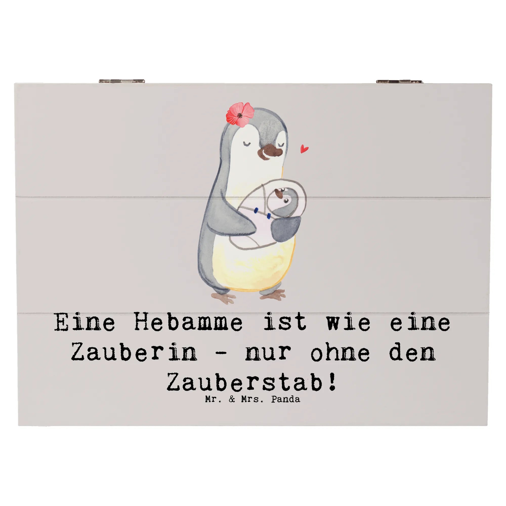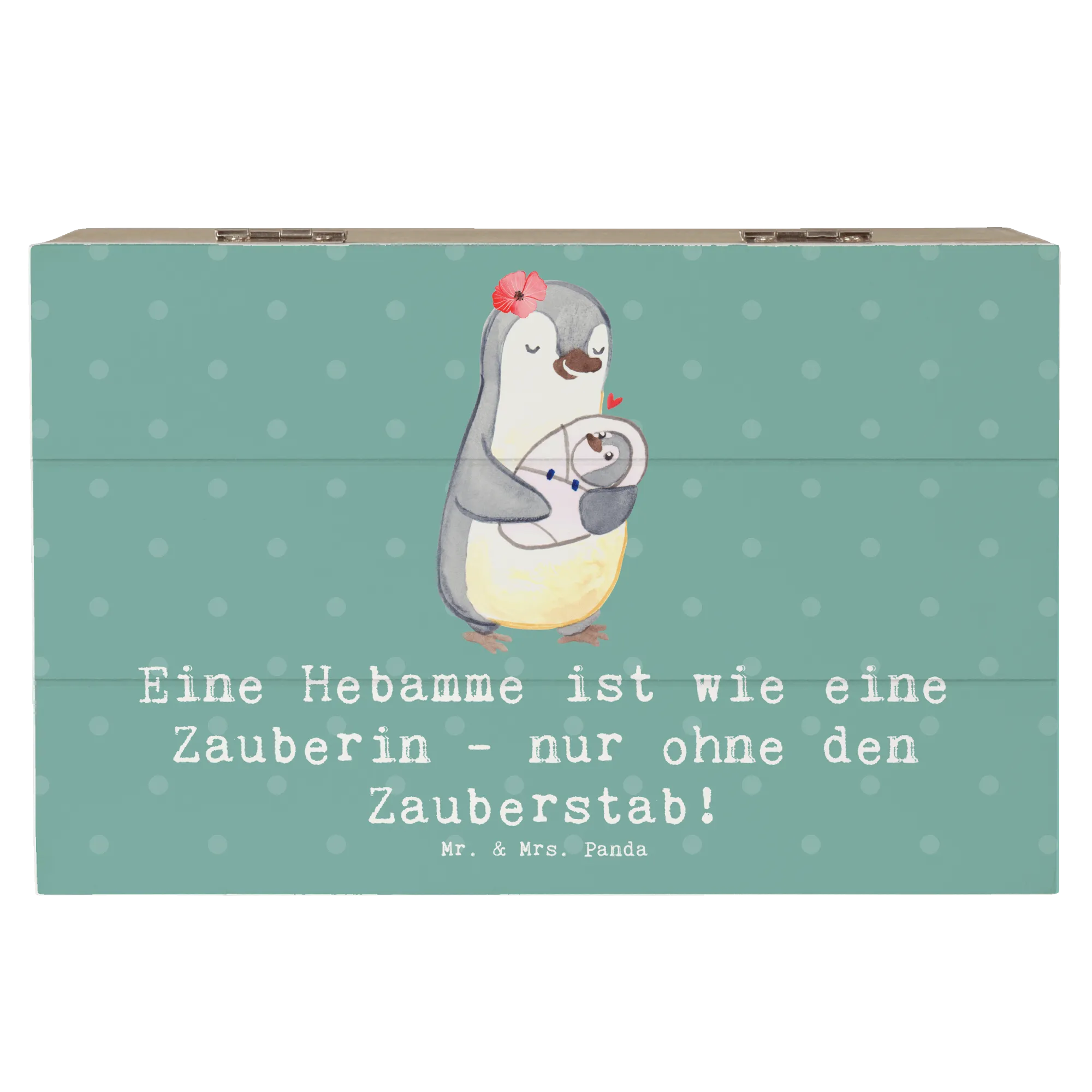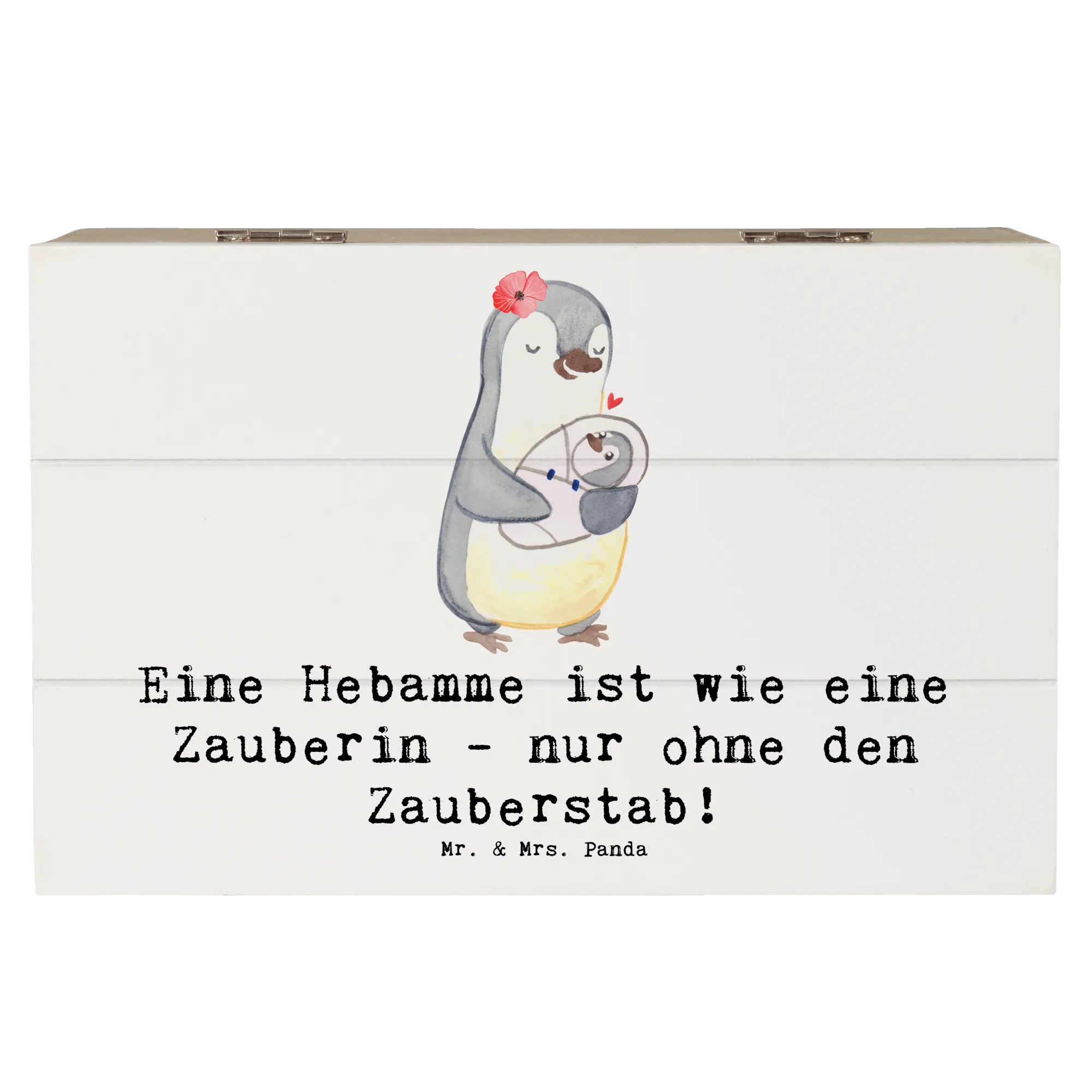Die Holzkiste "Eine Hebamme ist wie eine Zauberin - nur ohne den Zauberstab!" von Mr. & Mrs. Panda ist das perfekte Geschenk für alle Hebammen und werdenden Mütter. Diese liebevoll gestaltete Erinnerungskiste zeigt nicht nur die Wertschätzung für den Beruf, sondern bietet auch einen idealen Platz für wichtige Erinnerungen.