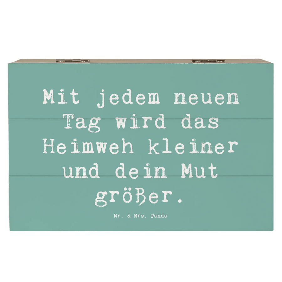 Entdecke die wunderschöne Holzkiste "Heimweh überwinden" aus der Mutmacher-Kollektion von Mr. & Mrs. Panda. Diese liebevoll gestaltete Kiste ist nicht nur ein Aufbewahrungsort für all deine wertvollen Schätze, sondern auch eine Quelle der Inspiration und des Trostes.