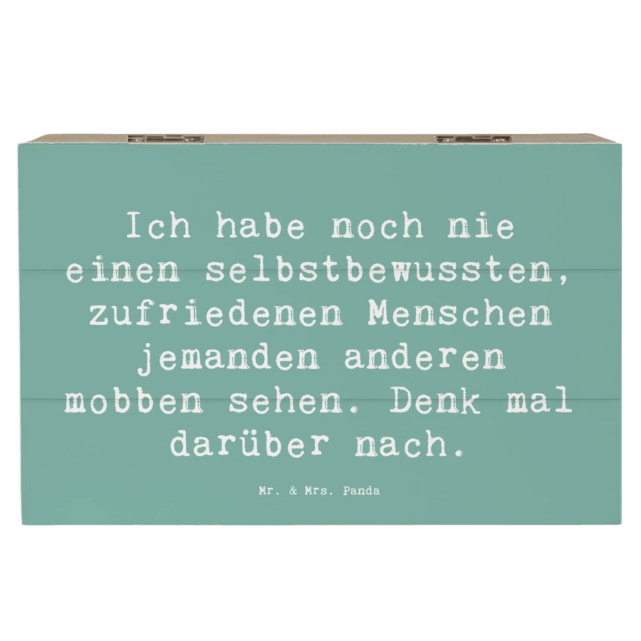 Suchst du nach einem besonderen Geschenk, das mehr als nur materielle Dinge ausdrückt? Dann entdecke die wunderschöne Holzkiste von Mr. & Mrs. Panda, die perfekt für alle ist, die Mobbing bewältigen wollen! Diese Erinnerungskiste ist nicht nur ein schöner Aufbewahrungsort für kleine Schätze, sondern auch ein echter Mutmacher. Mit dem kraftvollen Spruch 'Ich habe noch nie einen selbstbewussten, zufriedenen Menschen jemanden anderen mobben sehen. Denk mal darüber nach.' sorgt sie dafür, dass du dir immer wieder ins Gedächtnis rufst, wie wichtig Selbstvertrauen und Zuversicht sind.