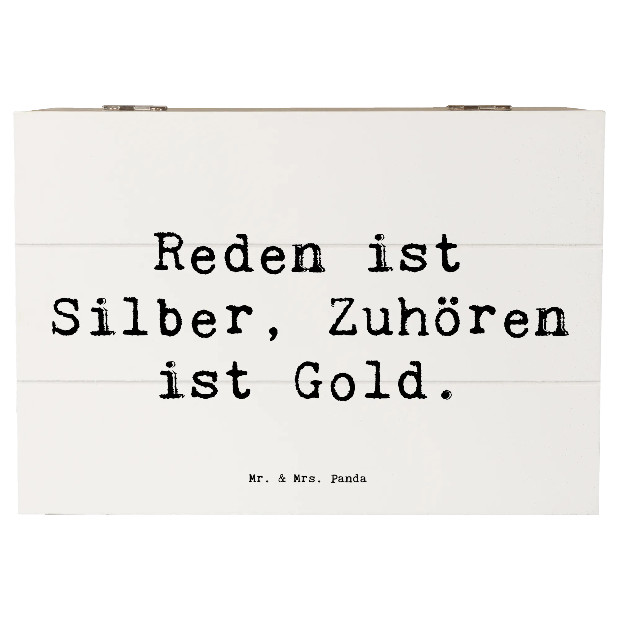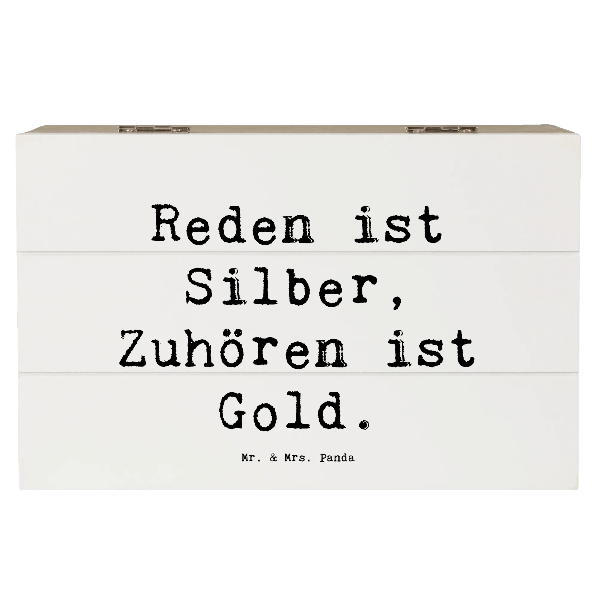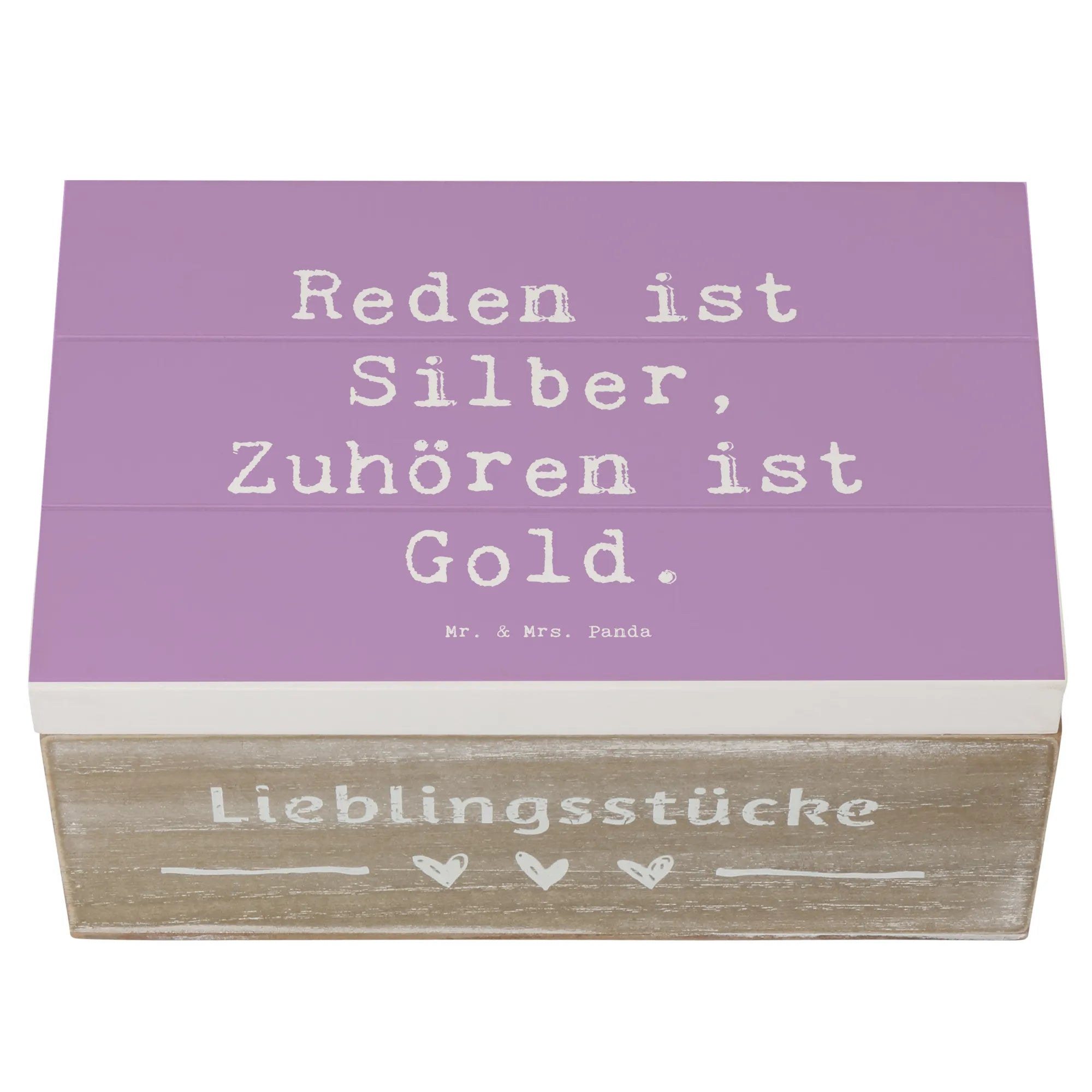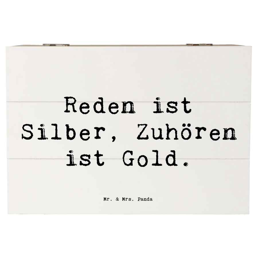 Die Botschaft "Reden ist Silber, Zuhören ist Gold." ziert die Kiste und erinnert sowohl den Beschenkten als auch den Schenkenden daran, wie wichtig Verständnis und Kommunikation in jedem zwischenmenschlichen Verhältnis sind. Diese Kiste ist die perfekte Wahl für Menschen, die auf ein harmonisches Miteinander Wert legen und sich für friedliche Lösungen in Konfliktsituationen einsetzen möchten.