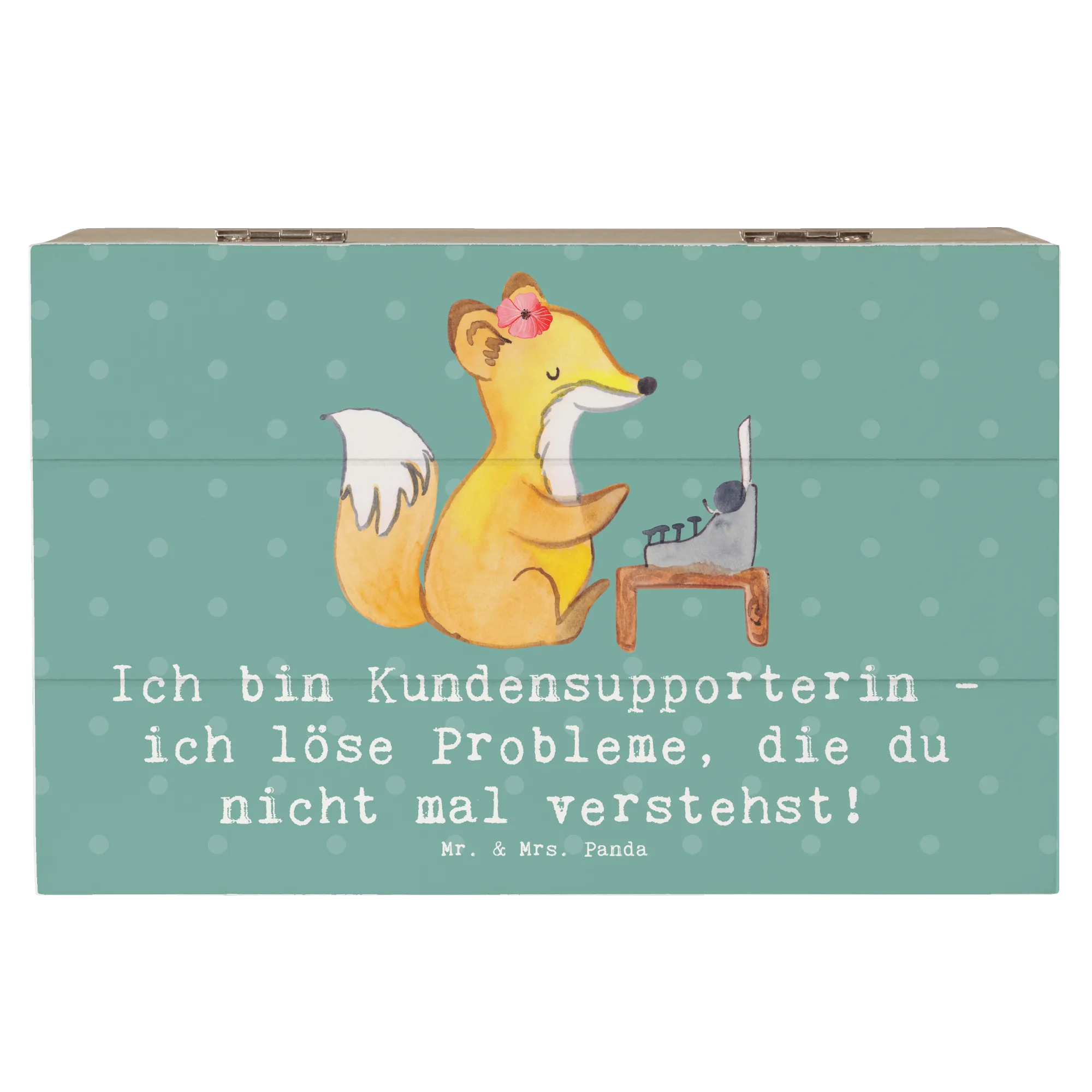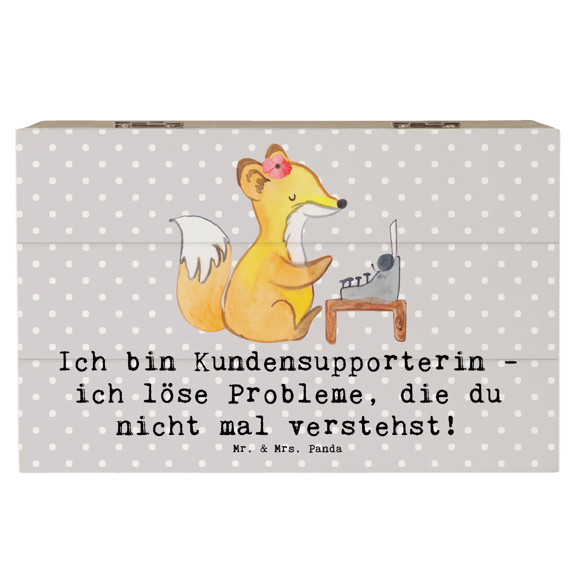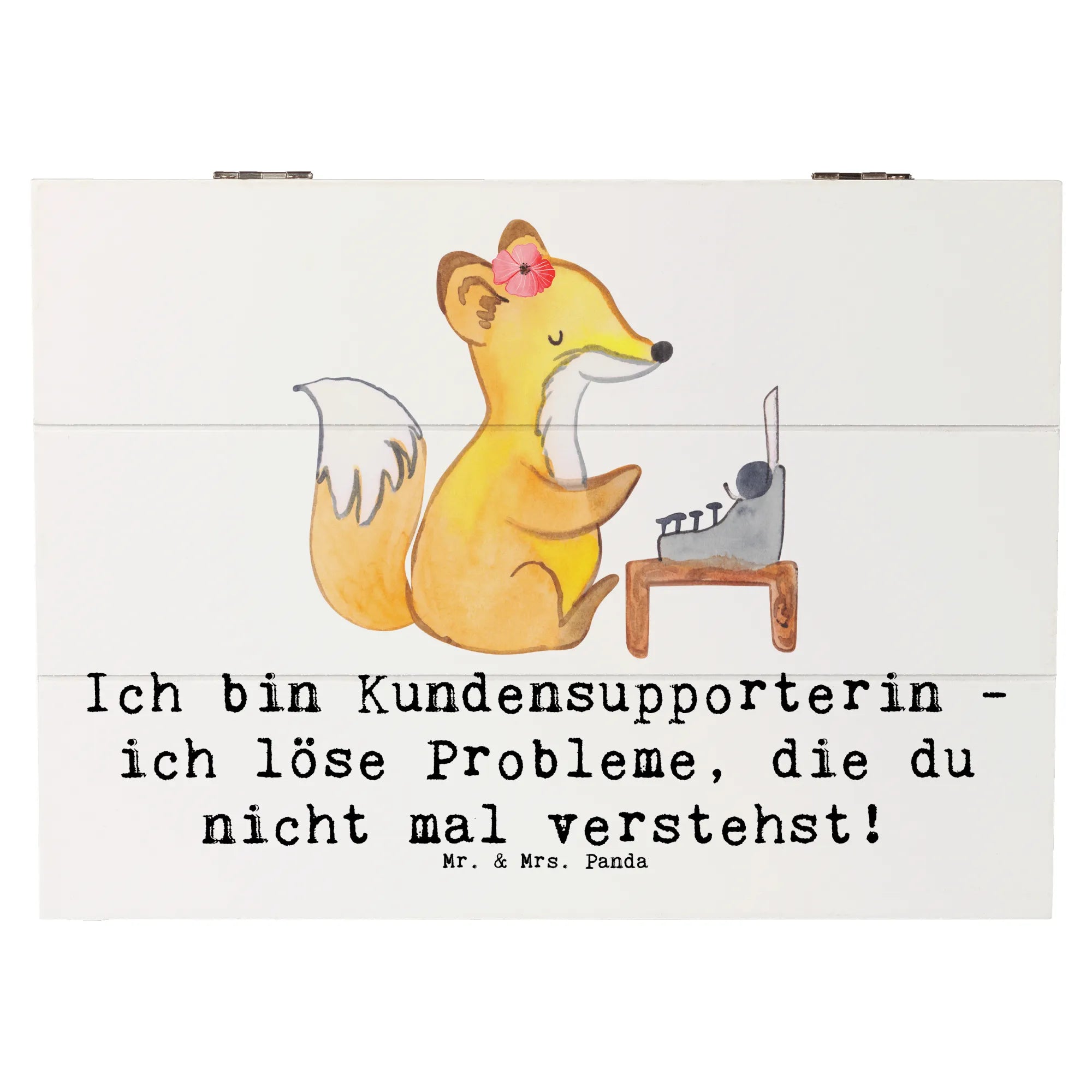 Entdecke die wunderschöne Holzkiste "Kundensupporterin" von Mr. & Mrs. Panda! Diese liebevoll gestaltete Erinnerungskiste ist der perfekte Aufbewahrungsort für all Deine wertvollen Schätze.
