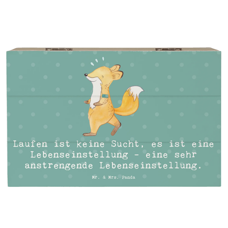 Das handgezeichnete Motiv "Laufen" mit dem Spruch "Laufen ist keine Sucht, es ist eine Lebenseinstellung – eine sehr anstrengende Lebenseinstellung." macht sie zu einem echten Hingucker. Diese Schatzkiste ist ideal als Aufbewahrungsort für Erinnerungen, Fotos oder besondere Andenken. Sie eignet sich auch hervorragend als nachhaltige und wiederverwendbare Geschenkbox, die du immer wieder nutzen kannst.