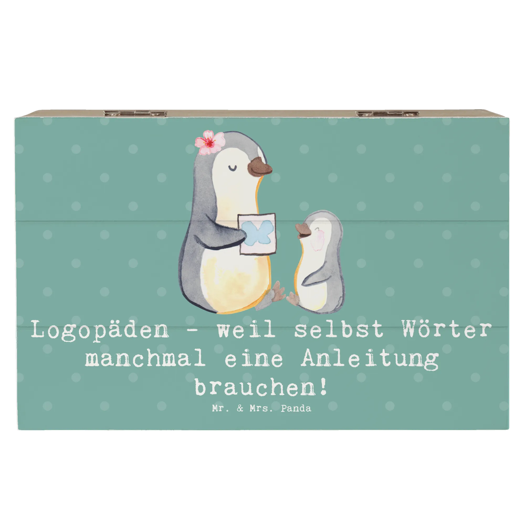 Der Bezug zur Berufe-Kollektion von Mr. & Mrs. Panda macht diese Kiste zu einer idealen Wahl, um die Leidenschaft zu feiern, die viele Logopäden für ihre Arbeit empfinden. Jeder schaut auf seine Weise nach Möglichkeiten, um in einem so wichtigen Beruf Unterstützung zu finden. Die Holzkiste ist daher nicht nur ein praktisches Geschenk, sondern auch eine besondere Geste der Wertschätzung.