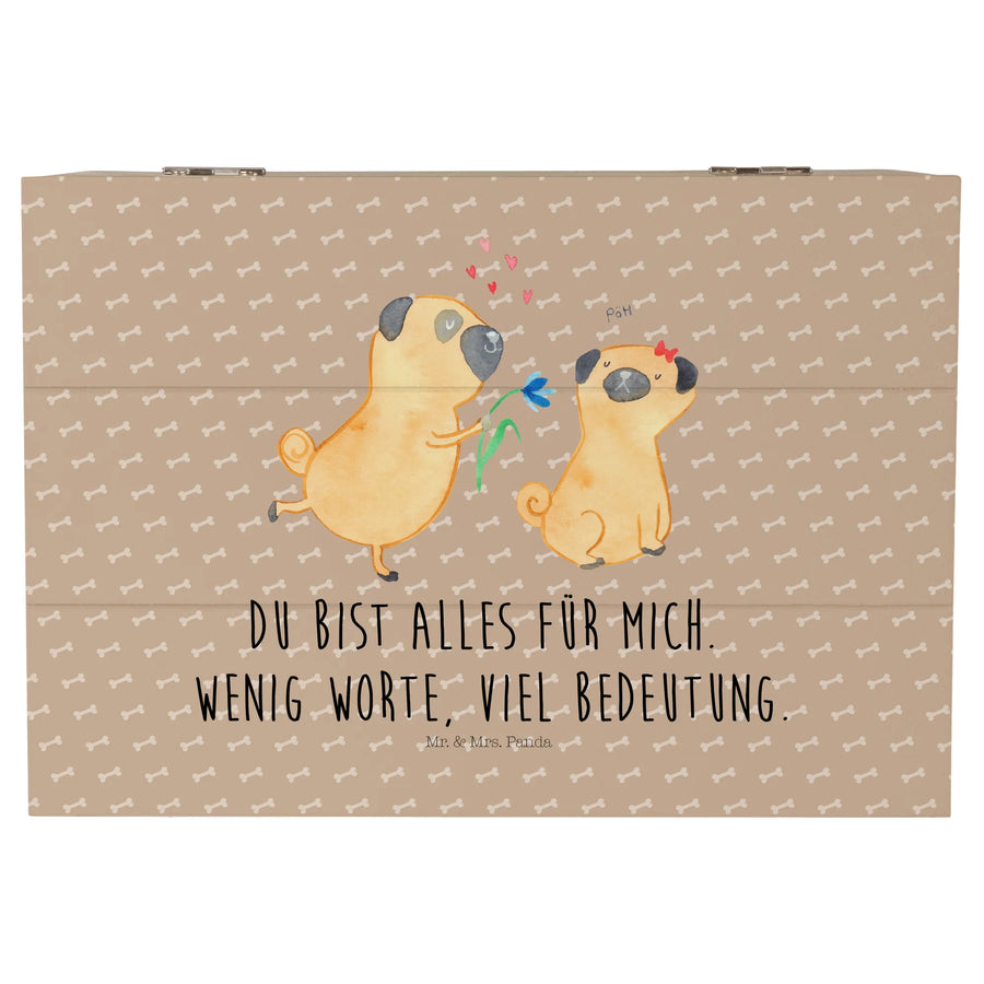Entdecke die Holzkiste „Mops verliebt“ aus der Hunde Kollektion von Mr. & Mrs. Panda