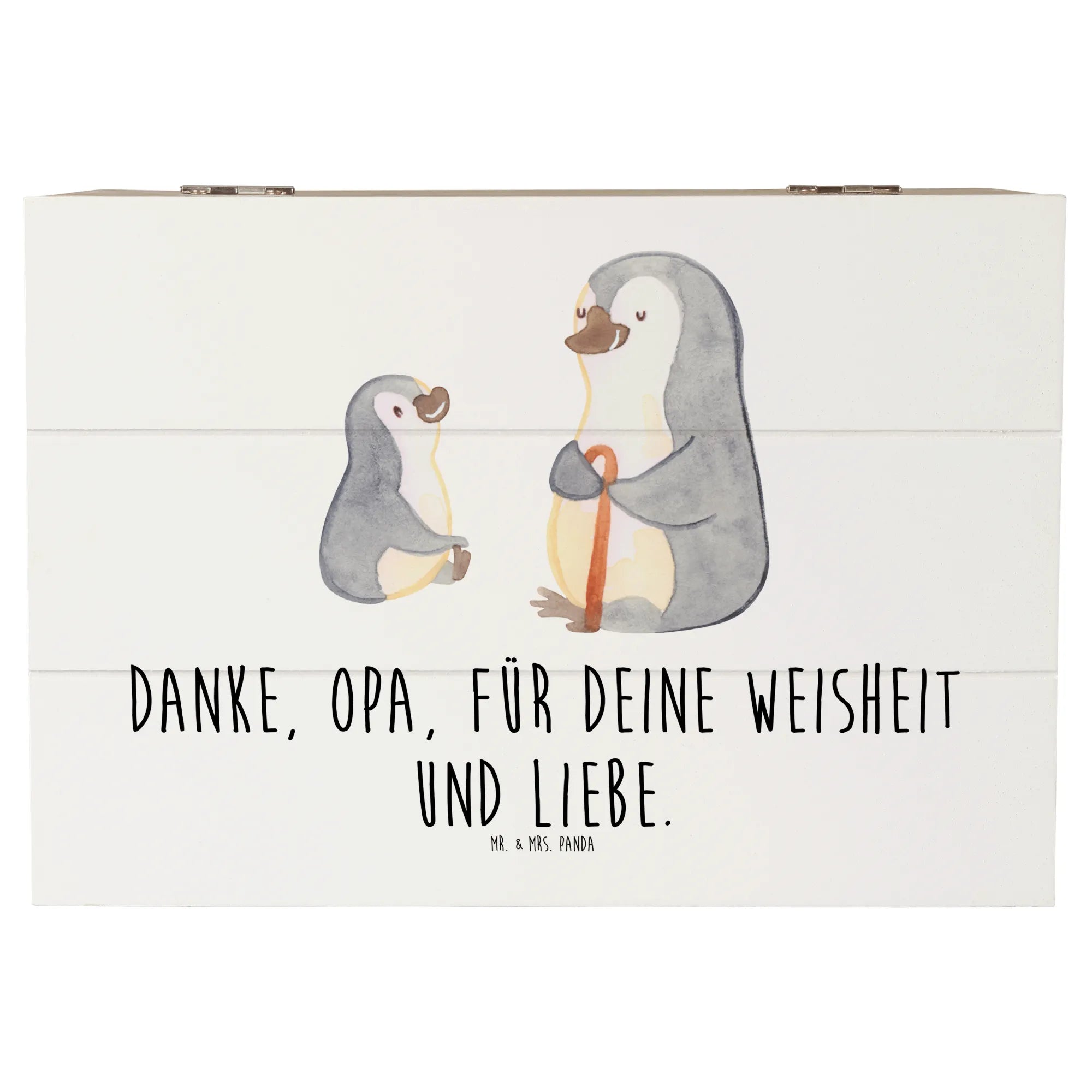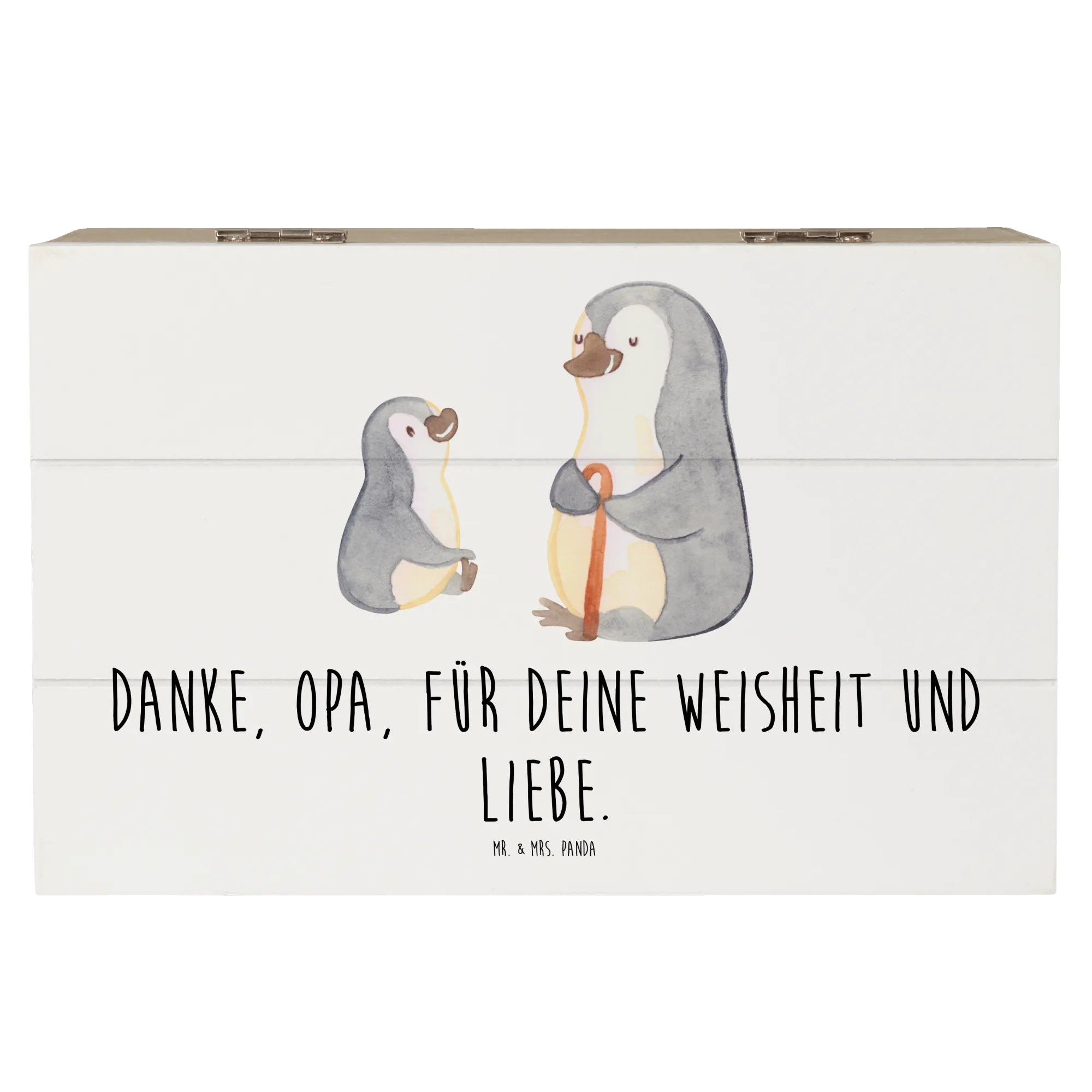 Die wunderschöne Holzkiste von Mr. & Mrs. Panda ist das perfekte Geschenk für Deinen Opa, um ihm zu danken. Mit dem liebevollen Slogan 'Danke, Opa, für deine Weisheit und Liebe.' ist diese Erinnerungskiste mehr als nur ein Aufbewahrungsort – sie ist ein Ort voller Herzen, Erinnerungen und Schatzkästchen!
