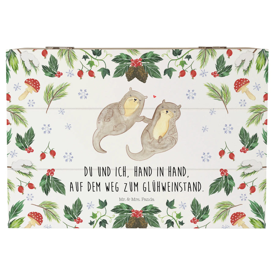 Diese wunderschöne, nicht personalisierbare Kiste aus robuster Holzfaser wurde mit viel Liebe und einem zauberhaften Motiv bedruckt: Zwei niedliche Otter, die Händchenhalten und den Glühweinstand genießen!