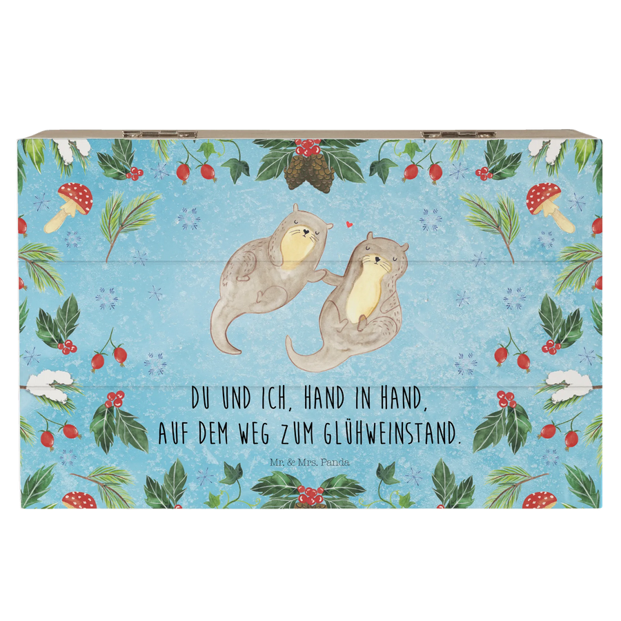 Diese wunderschöne, nicht personalisierbare Kiste aus robuster Holzfaser wurde mit viel Liebe und einem zauberhaften Motiv bedruckt: Zwei niedliche Otter, die Händchenhalten und den Glühweinstand genießen!