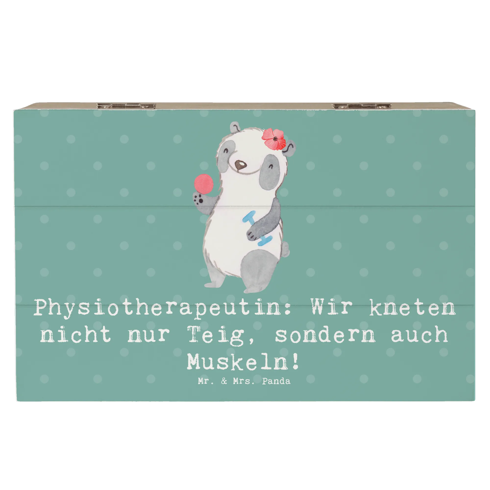 Die liebevoll gestaltete Holzkiste "Physiotherapeutin: Wir kneten nicht nur Teig, sondern auch Muskeln!" von Mr. & Mrs. Panda ist das perfekte Geschenk für alle Physiotherapeuten und Physiotherapeutinnen. Ob du es selbst behalten möchtest oder als besonderes Präsent verschenken willst, diese schöne Schatzkiste ist nicht nur praktisch, sondern auch ein echter Hingucker.