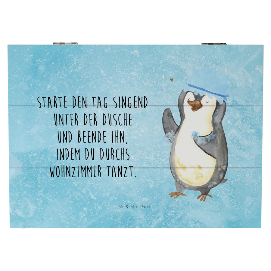 Die zauberhafte Holzkiste "Pinguin duscht" von Mr. & Mrs. Panda ist das perfekte Geschenk für alle, die Freude und gute Laune lieben. Mit ihrem einzigartigen Motiv eines fröhlichen Pinguins, der unter der Dusche steht, bringt diese Kiste ein Lächeln auf jedes Gesicht.