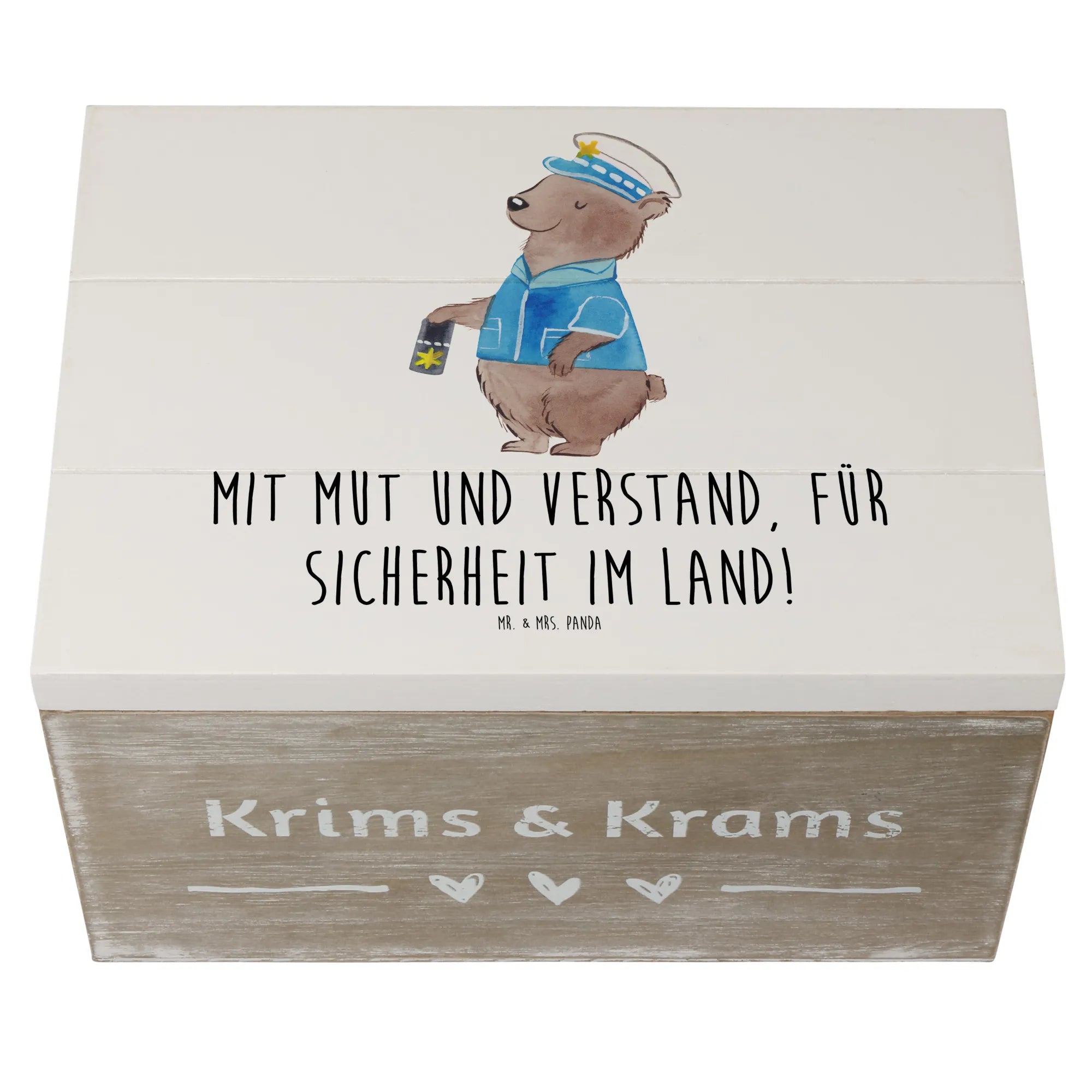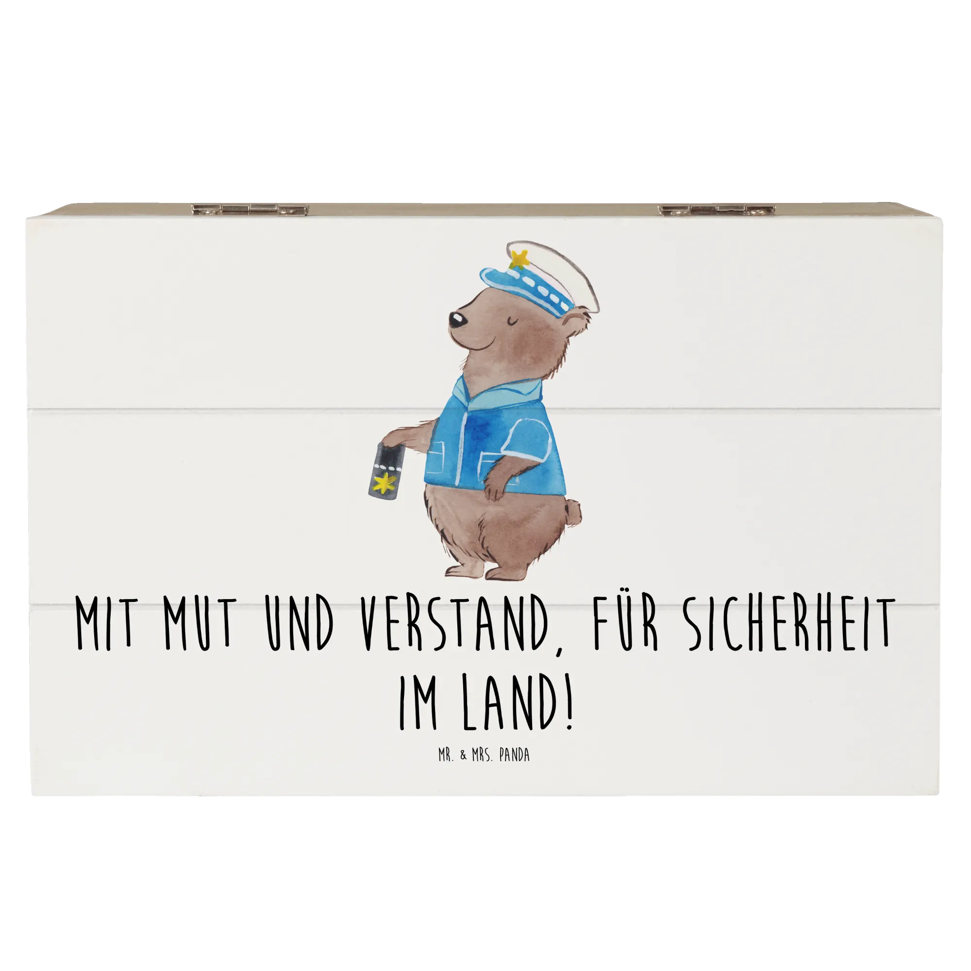Entdecke die wunderschöne Holzkiste von Mr. & Mrs. Panda, die mit einem liebevollen Polizisten-Motiv verziert ist. Diese Erinnerungskiste aus robuster Holzfaser ist nicht nur ein praktischer Aufbewahrungsort für deine wertvollen Schätze, sondern auch ein ganz besonderes Geschenk, um 'Danke' zu sagen.