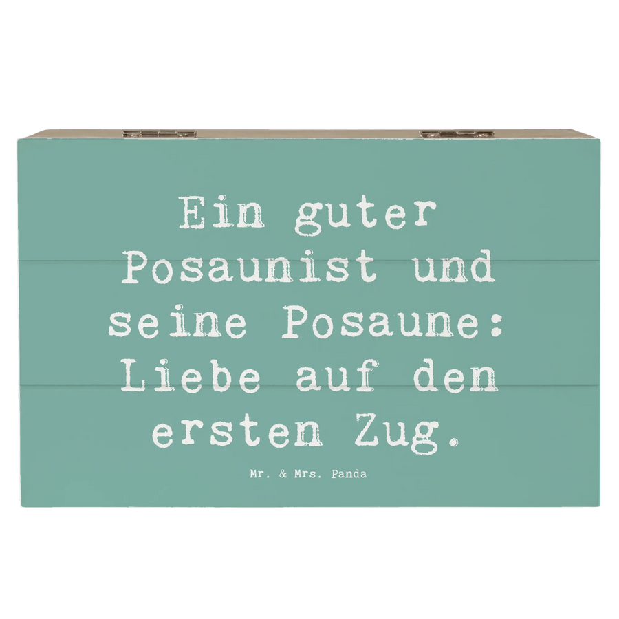 Der Spruch „Ein guter Posaunist und seine Posaune: Liebe auf den ersten Zug“ verleiht der Kiste eine besondere Note und macht sie zu einem unvergesslichen Geschenk.
