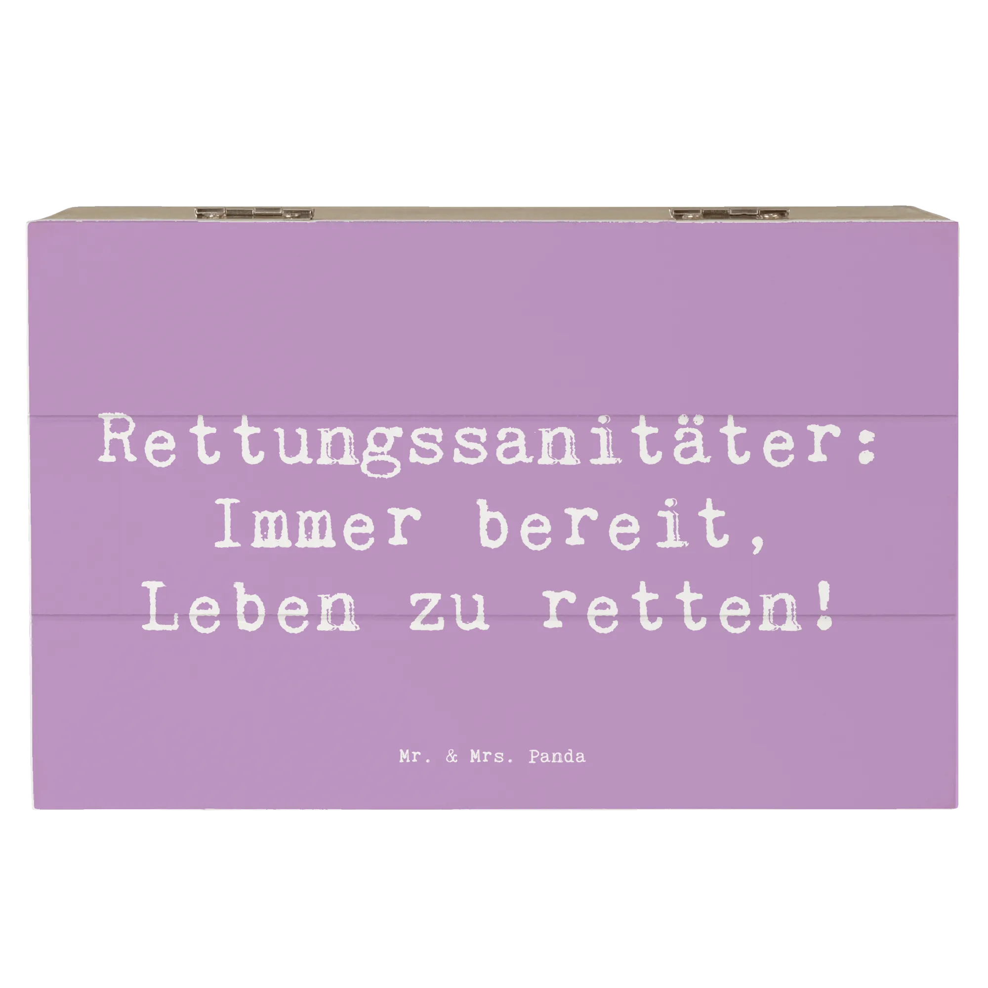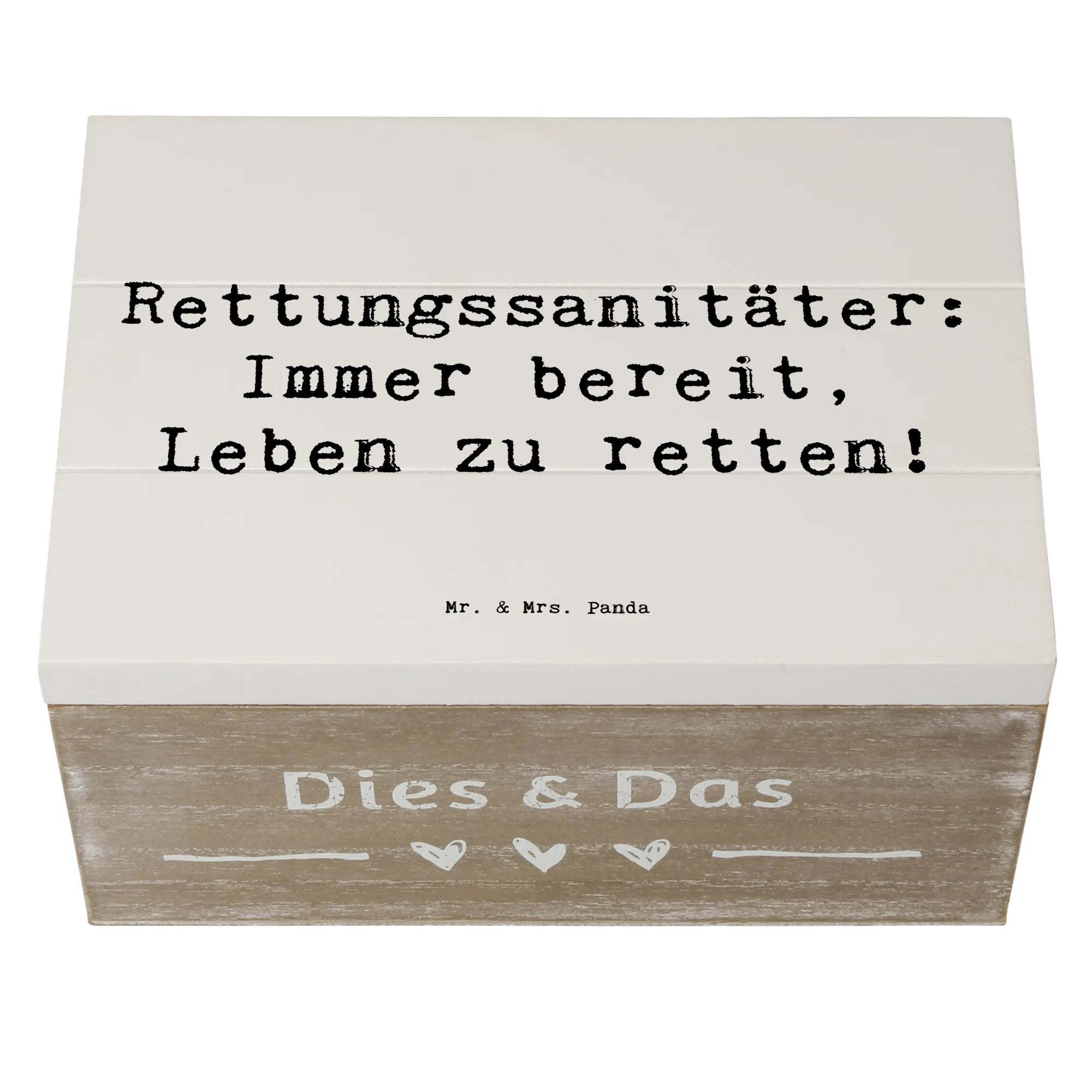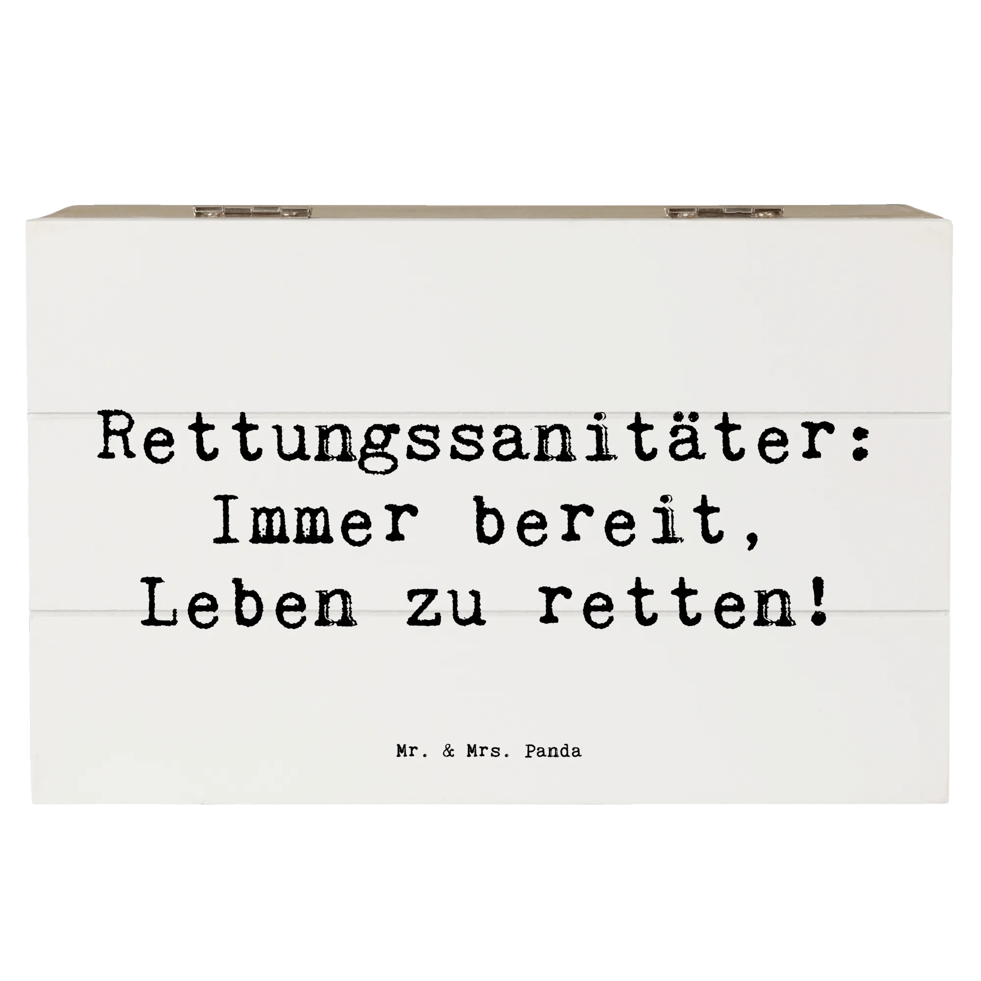 Diese wunderschöne Holzkiste von Mr. & Mrs. Panda ist das ideale Dankeschön für alle, die täglich Leben retten. Bedruckt mit dem klaren Spruch „Rettungssanitäter: Immer bereit, Leben zu retten!“ ist sie eine echte Erinnerungskiste, die Anerkennung und Wertschätzung ausdrückt. Perfekt als Geschenkbox, Schatzkiste oder Fotobox – für den Einsatz, als Abschiedsgeschenk oder einfach so.