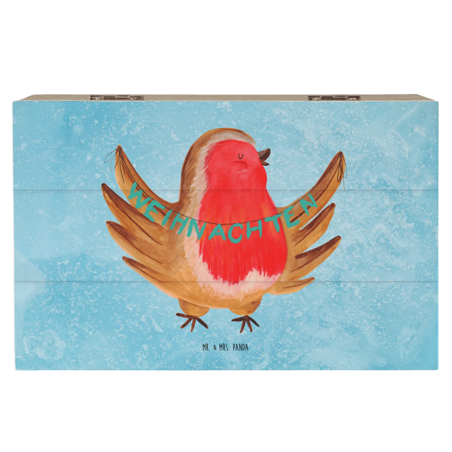 Die wunderschöne Holzkiste Rotkehlchen Weihnachten aus der Winter Kollektion von Mr. & Mrs. Panda ist die perfekte Geschenkidee für die festlichste Zeit des Jahres! Mit ihrem entzückenden Motiv eines fröhlichen Rotkehlchens, das Freude und Wärme ausstrahlt, bringt diese Kiste die richtige Stimmung für Heiligabend und die Weihnachtszeit.