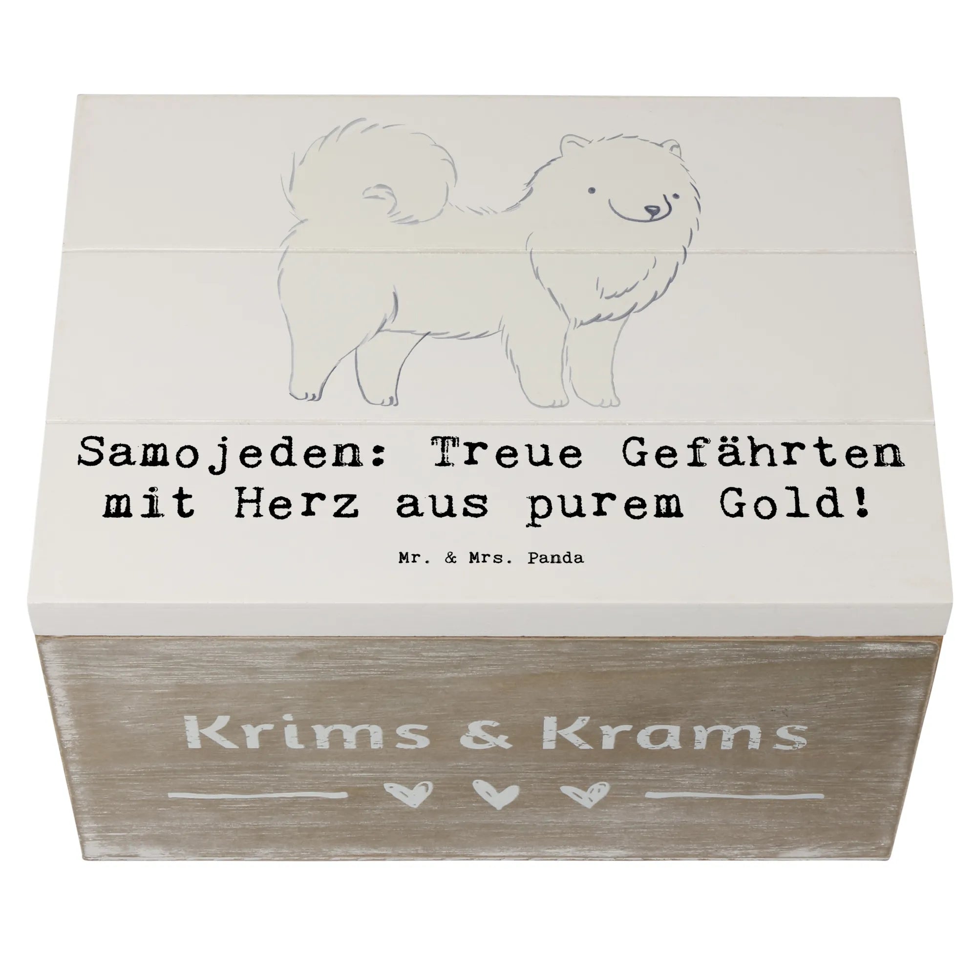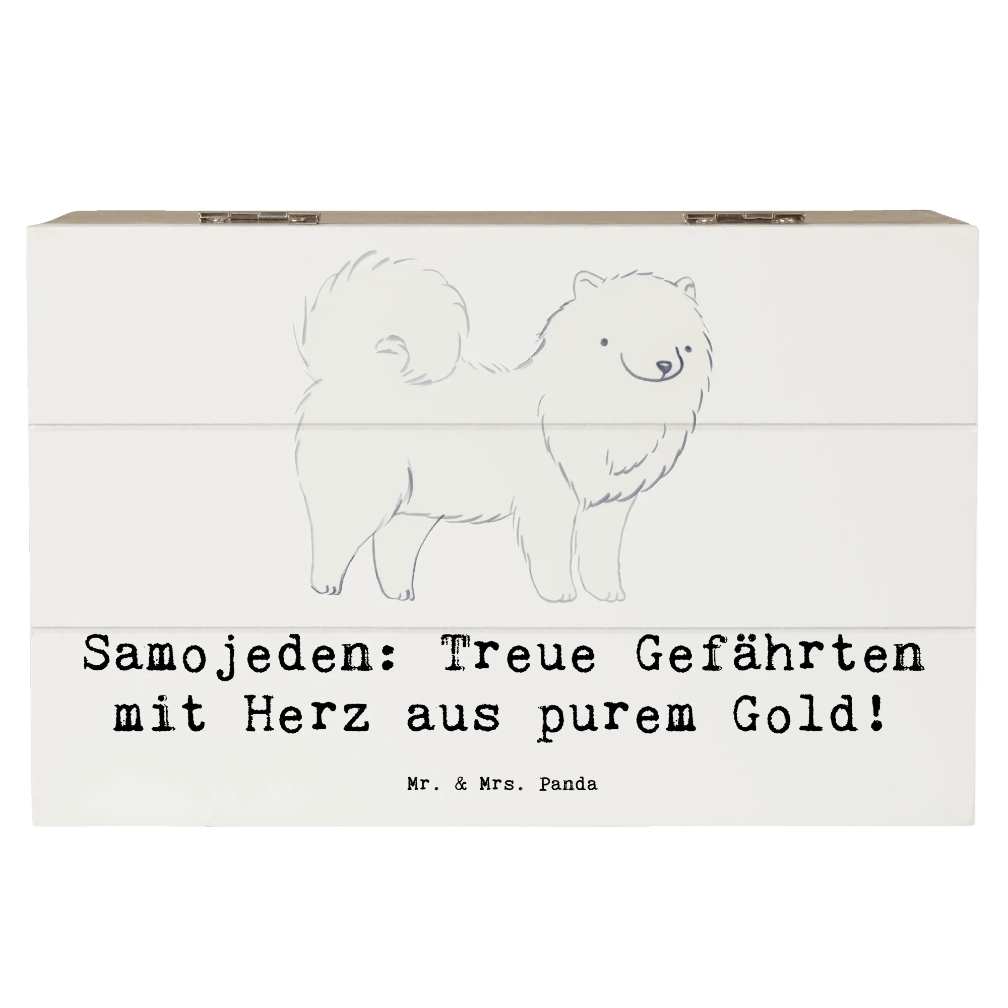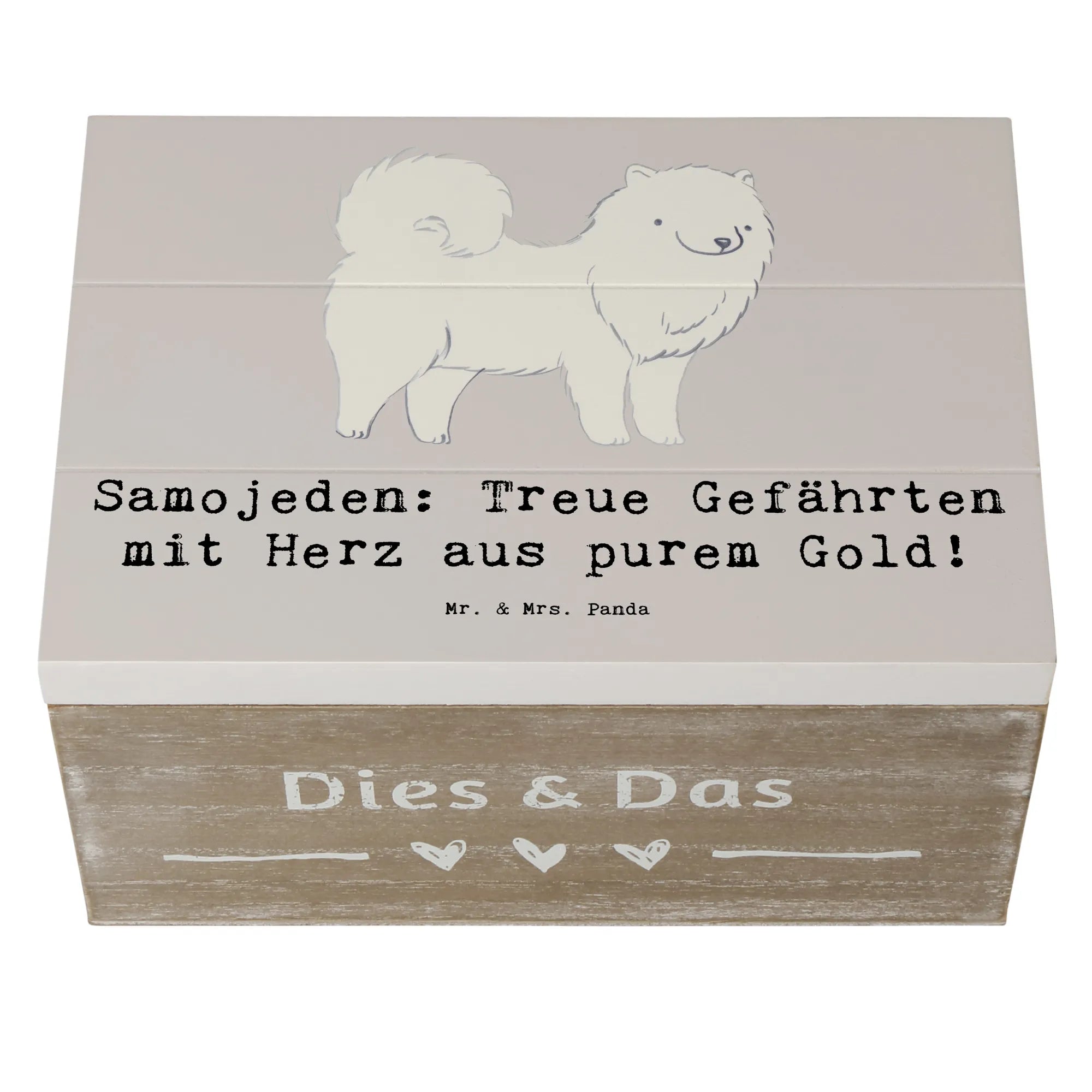 Die wunderschöne Holzkiste von Mr. & Mrs. Panda mit dem Motiv "Samojede: Treue Gefährten mit Herz aus purem Gold!" ist das perfekte Geschenk für alle Hundefans und Tierliebhaber. Diese Erinnerungskiste ist nicht nur ein traumhaftes Deko-Element, sondern auch ein einzigartiger Aufbewahrungsort für all deine wertvollen Schätze.
