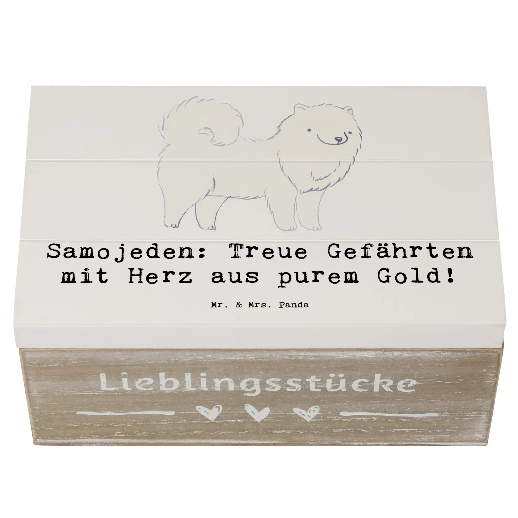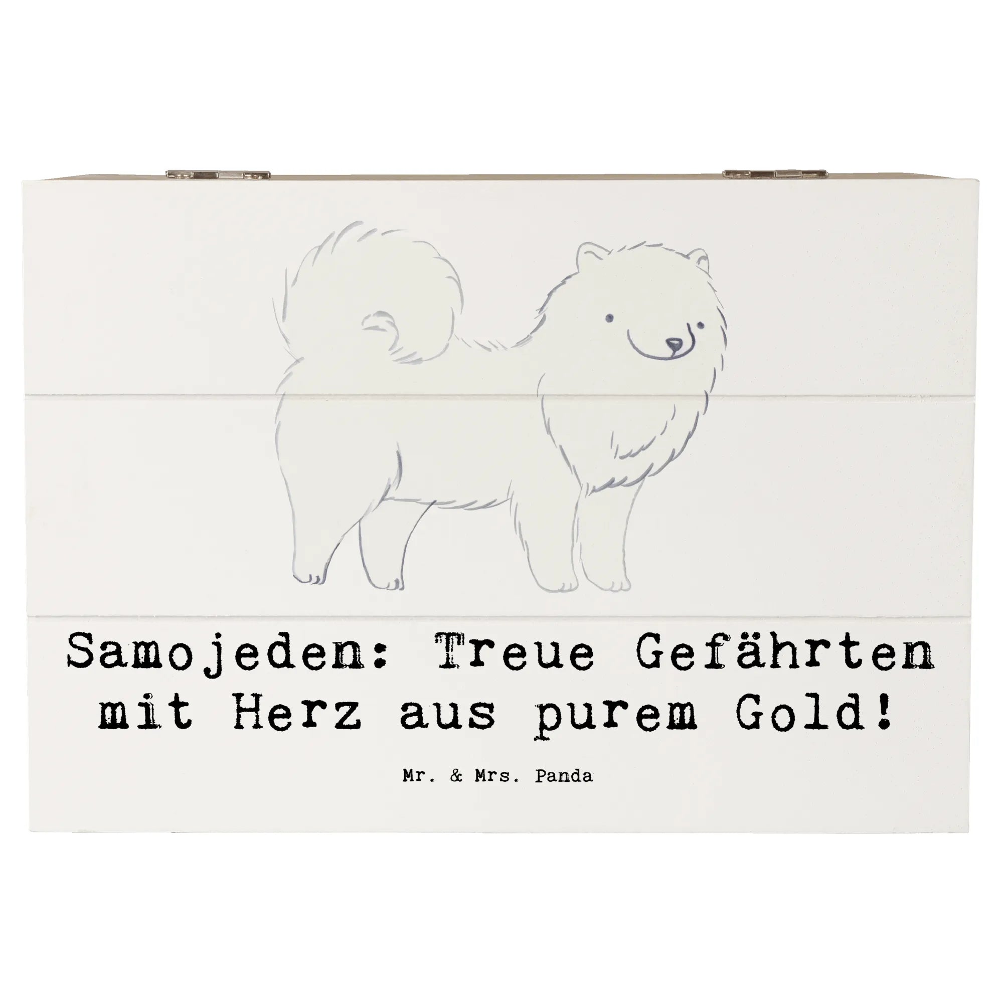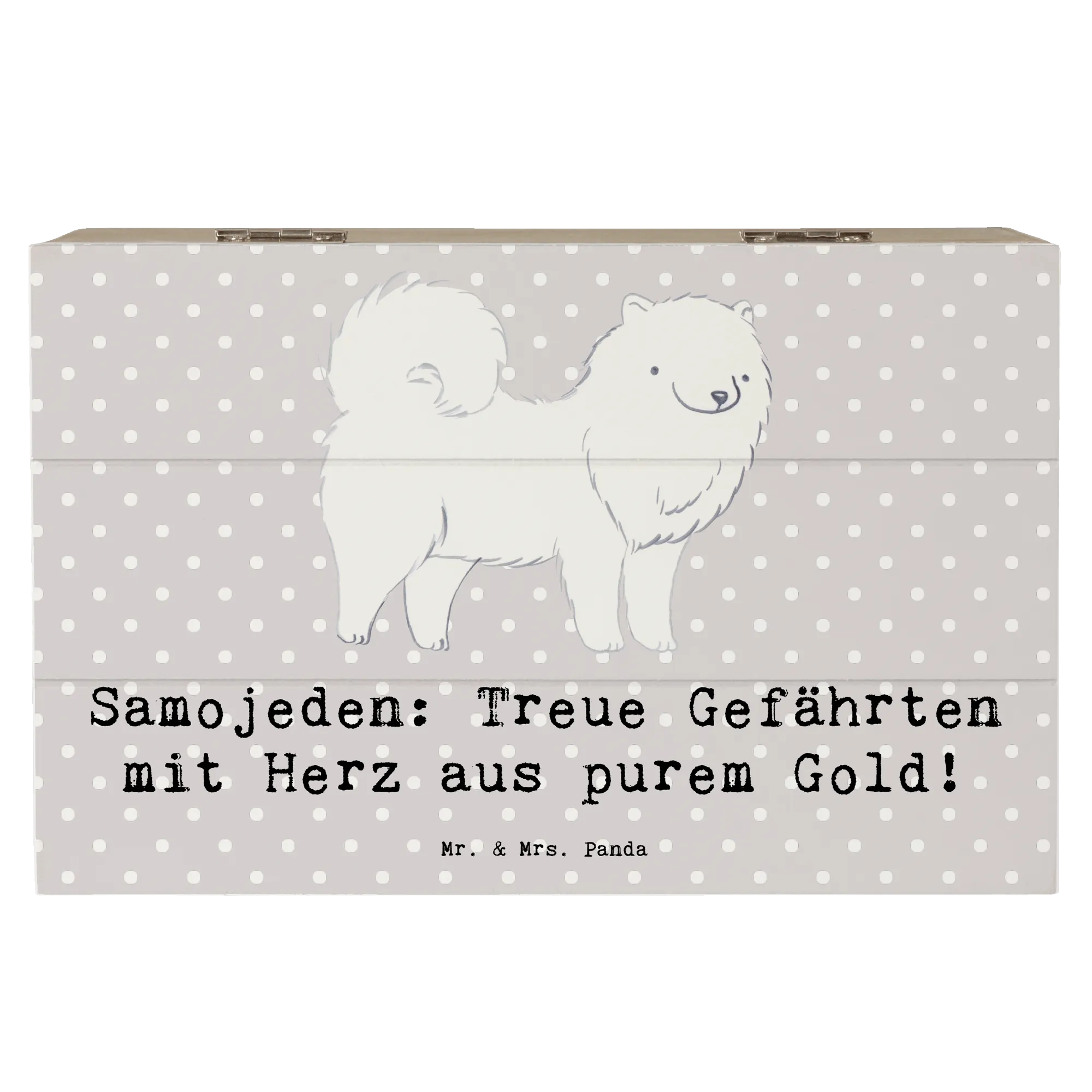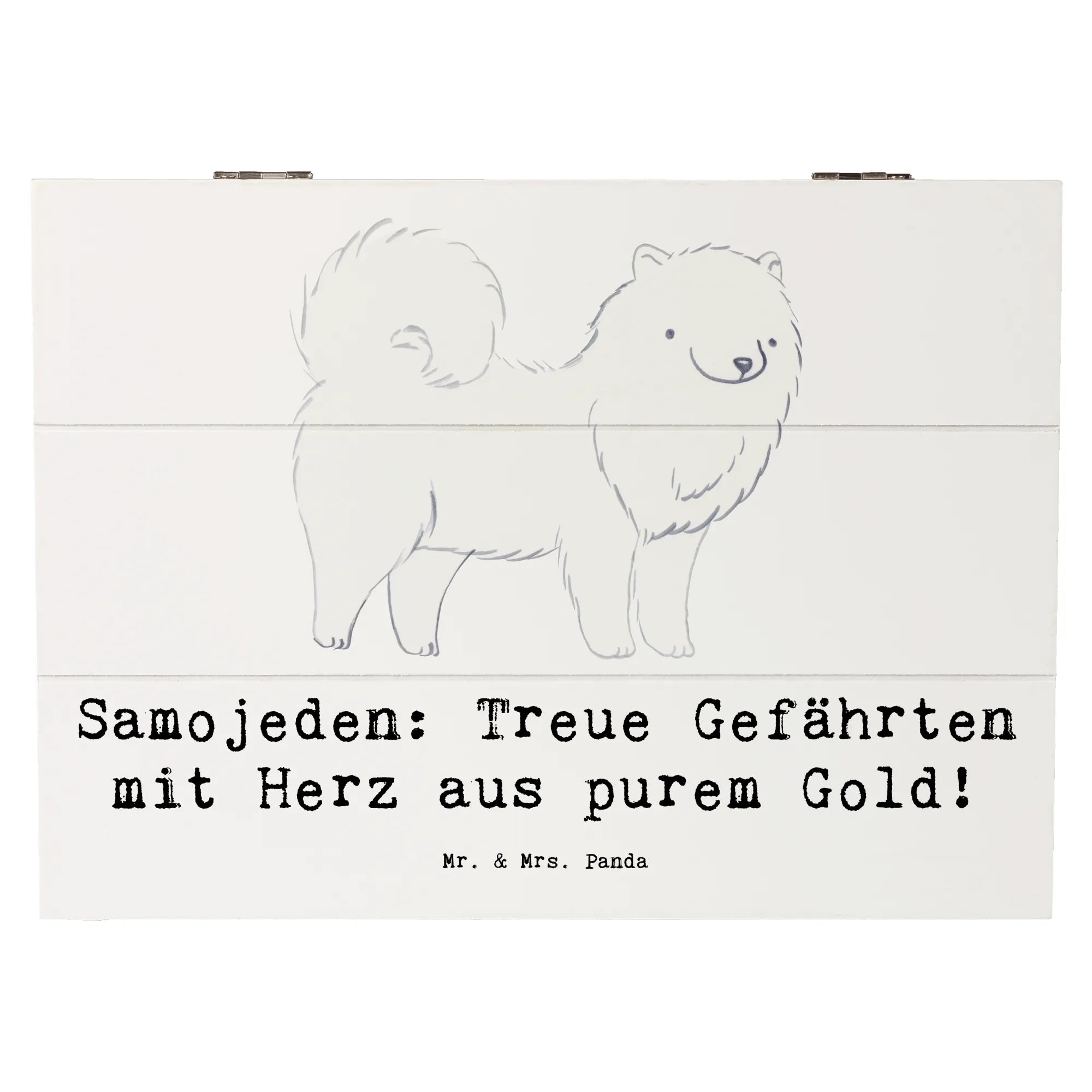 Die wunderschöne Holzkiste von Mr. & Mrs. Panda mit dem Motiv "Samojede: Treue Gefährten mit Herz aus purem Gold!" ist das perfekte Geschenk für alle Hundefans und Tierliebhaber. Diese Erinnerungskiste ist nicht nur ein traumhaftes Deko-Element, sondern auch ein einzigartiger Aufbewahrungsort für all deine wertvollen Schätze.