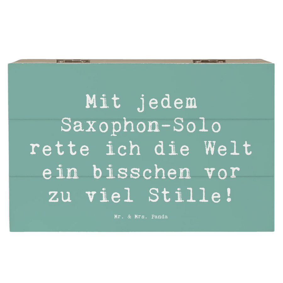 Die wunderschöne Holzkiste von Mr. & Mrs. Panda mit dem Motiv Saxophon ist das perfekte Geschenk für alle Musikliebhaber und Musiker! Egal, ob für einen Freund, ein Familienmitglied oder für dich selbst – diese Erinnerungskiste ist ideal, um all deine besonderen Schätze zu bewahren. Die robuste Holzkiste ist nicht nur ein stilvolles Deko-Element, sondern dient auch als praktische Aufbewahrungsbox für Erinnerungen,