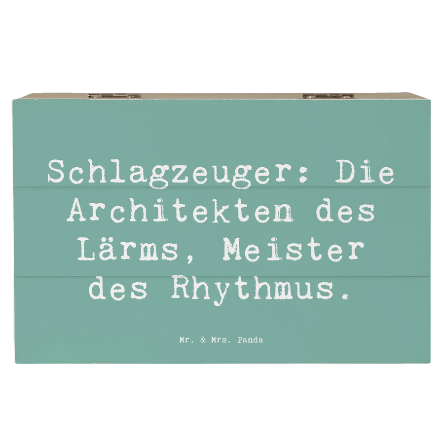 Die wunderschöne Holzkiste von Mr. & Mrs. Panda mit dem originellen Schlagzeug-Motiv ist das perfekte Geschenk für Musiker und Musikliebhaber. Mit einem Slogan, der das Herz eines jeden Schlagzeugers zum Schwingen bringt: "Schlagzeuger: Die Architekten des Lärms, Meister des Rhythmus." Diese Schatzkiste ist nicht nur eine praktische Aufbewahrungsbox, sondern auch ein echter Hingucker.