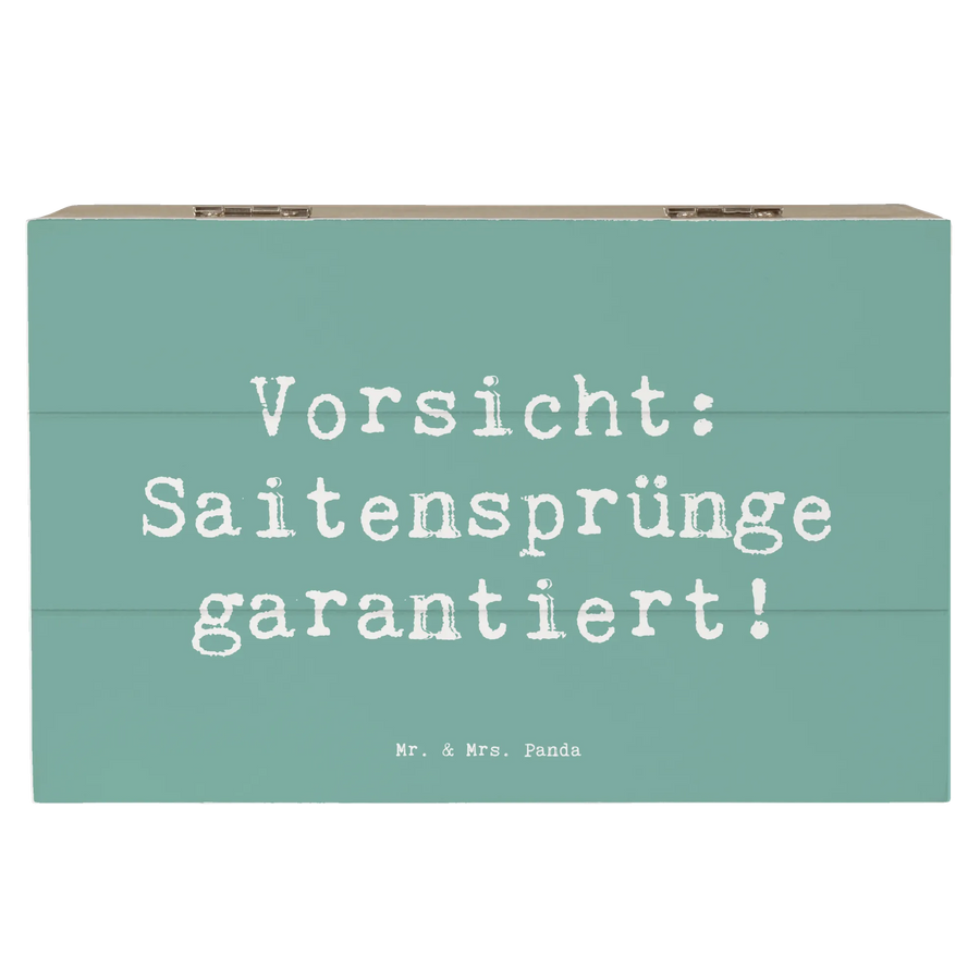 Sowohl für Musikinstrumente als auch für andere persönliche Erinnerungsstücke ist diese Kiste der perfekte Ort. Ob zur Kommunion, Konfirmation oder einfach nur so, als nachhaltige Geschenkbox bietet sie die Möglichkeit, Geschenke auf eine besonders schöne Art zu überreichen. Vielleicht suchst du ja ein Geschenk für einen Musiker in deinem Leben? Diese Kiste mit dem Slogan "Vorsicht: Saitensprünge garantiert!" ist das ideale Präsent für Musiker und Musikliebhaber!