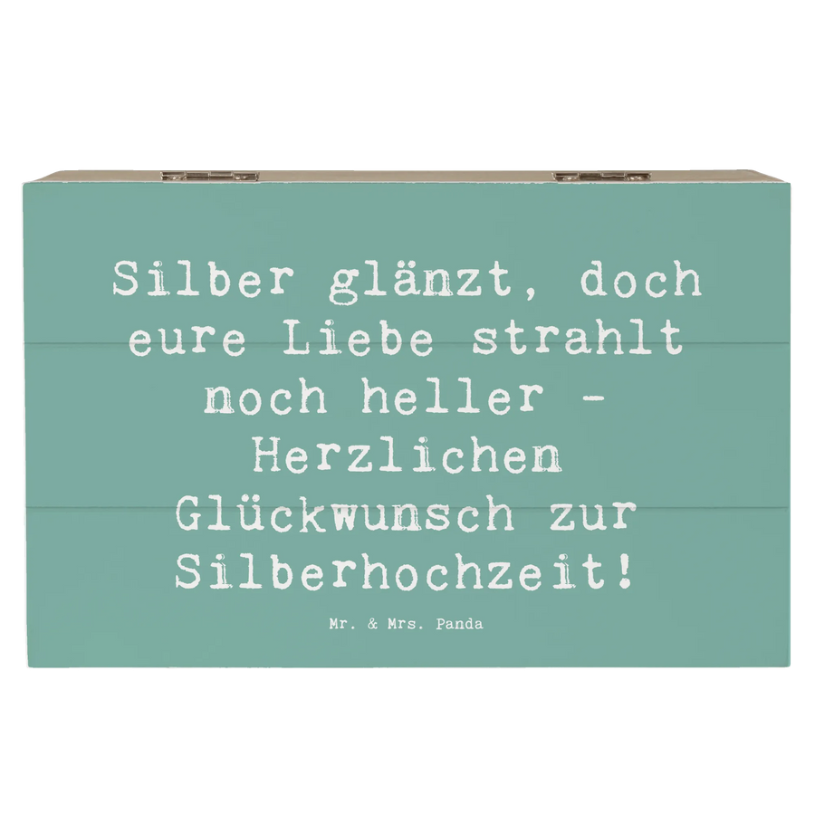 Entdecke die wunderschöne Holzkiste 25. Hochzeitstag Silberne Hochzeit von Mr. & Mrs. Panda! Diese zauberhafte Erinnerungskiste ist nicht nur ein stilvolles Accessoire, sondern auch ein besonderer Aufbewahrungsort für all deine wertvollen Schätze und Erinnerungen.
