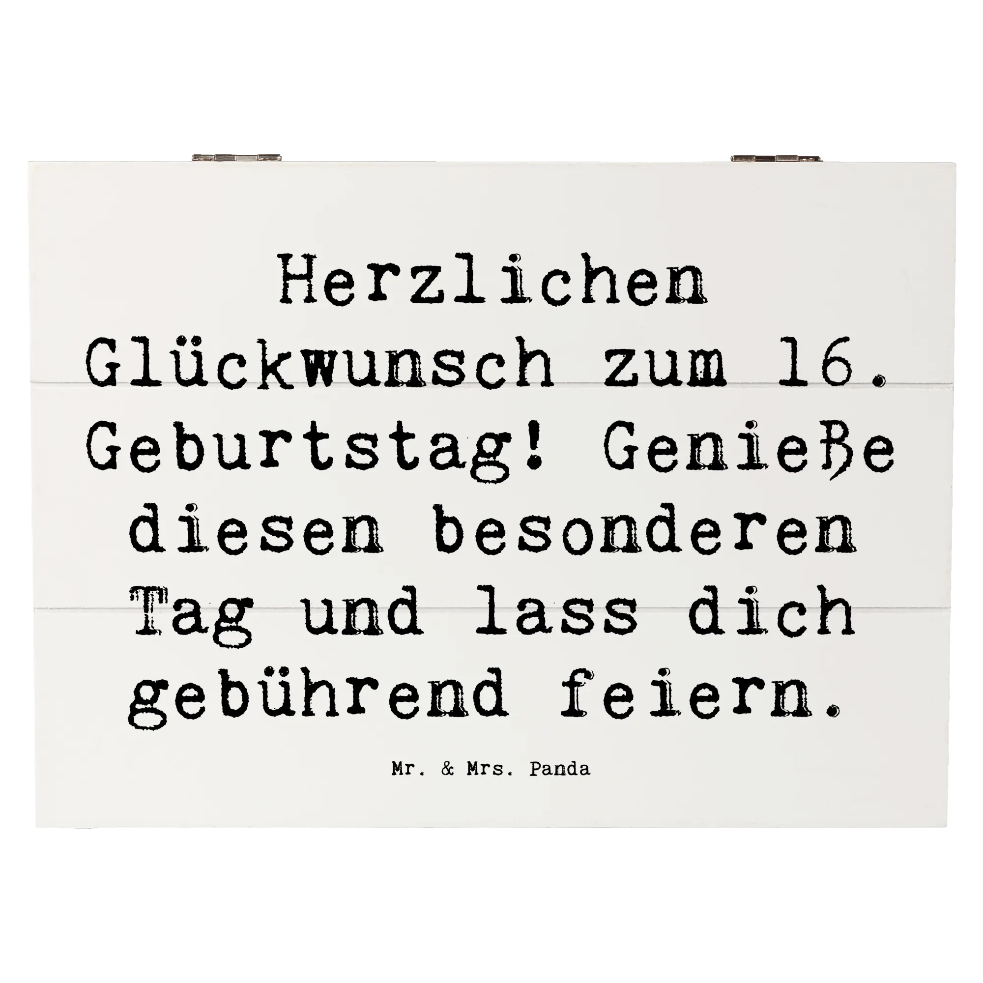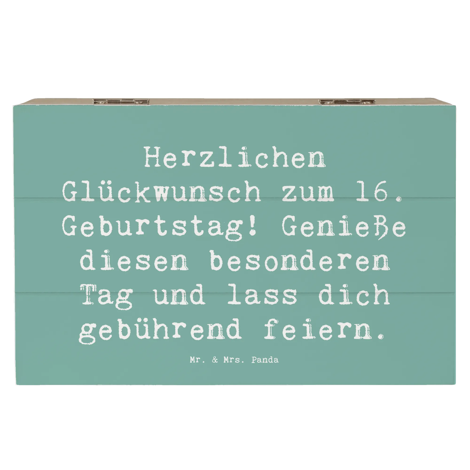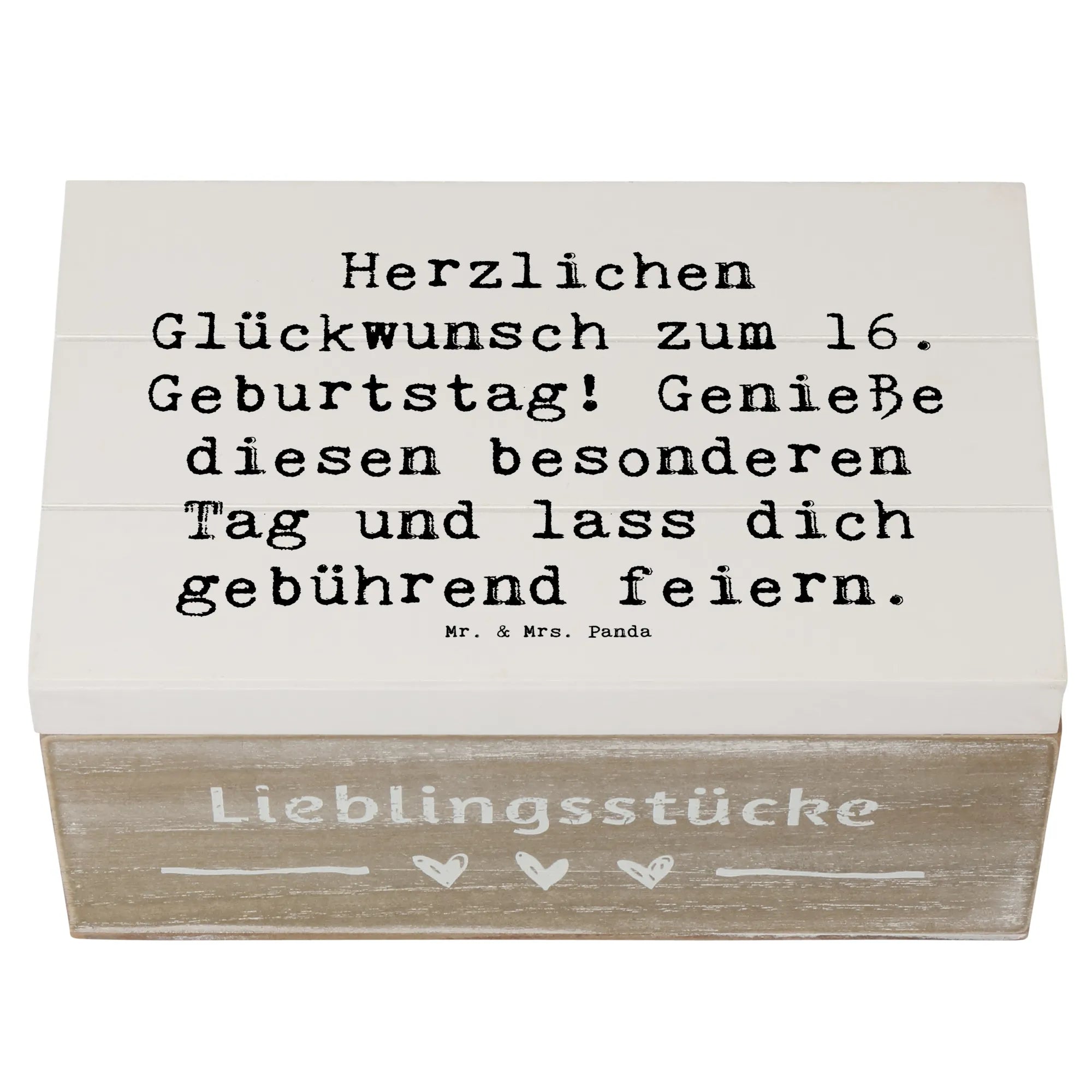 Die wunderschöne Holzkiste von Mr. & Mrs. Panda ist das perfekte Geschenk zum 16. Geburtstag! Mit ihrem charmanten Design und dem liebevollen Spruch 'Herzlichen Glückwunsch zum 16. Geburtstag! Genieße diesen besonderen Tag und lass dich gebührend feiern.' wird diese Kiste zu einem echten Highlight jeder Feier.