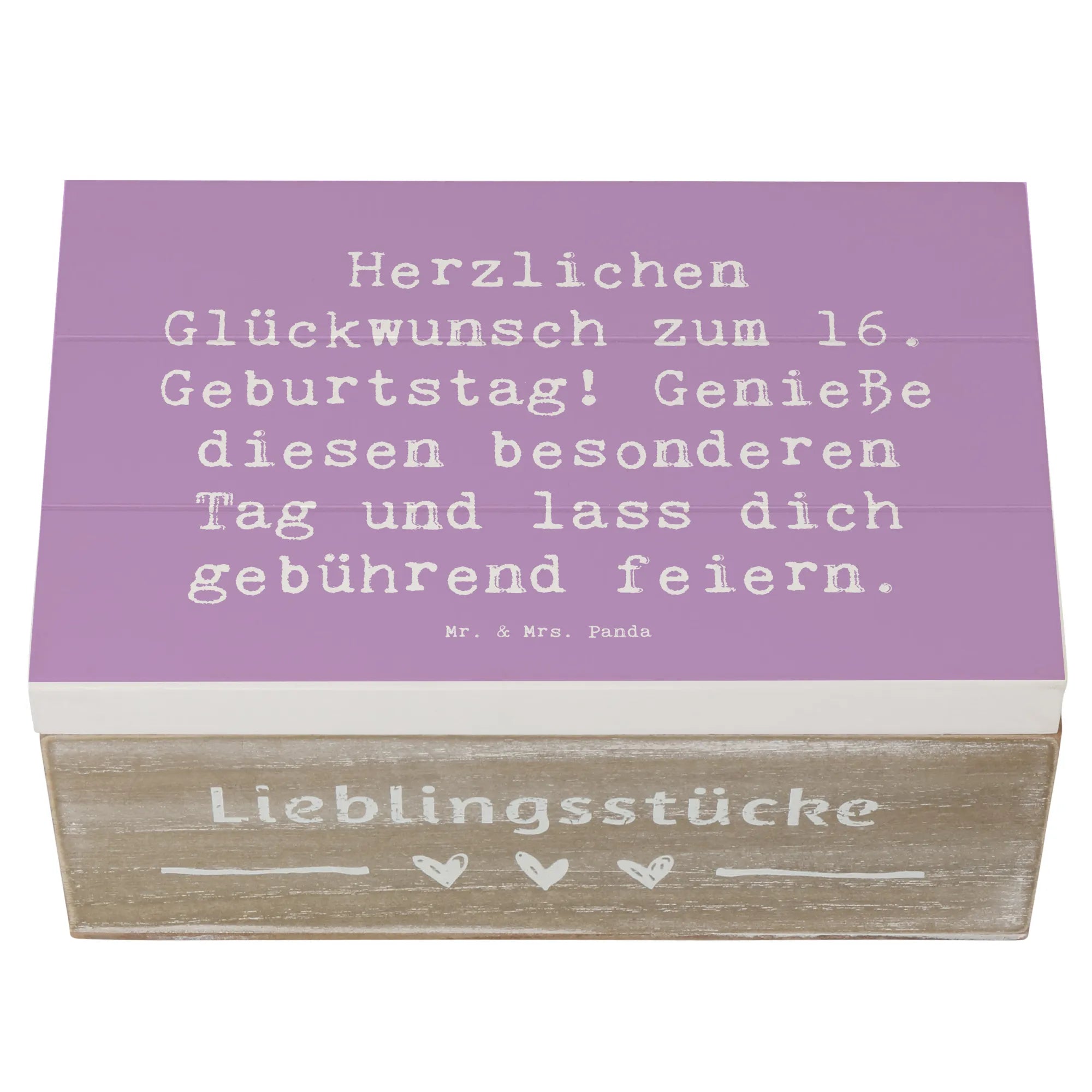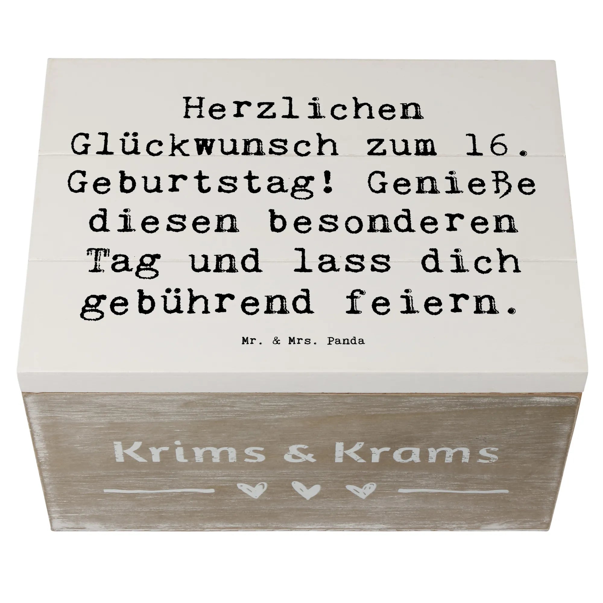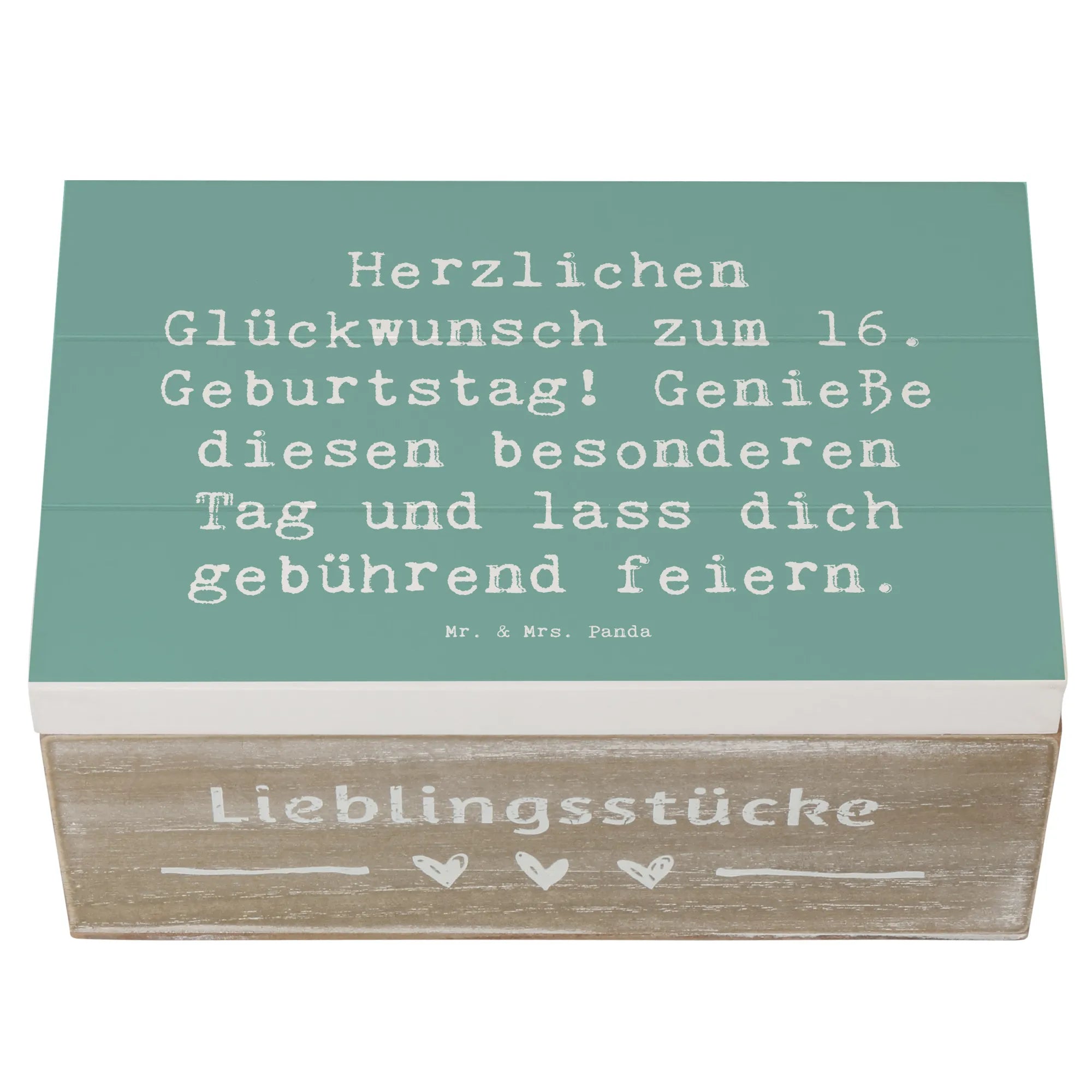Die wunderschöne Holzkiste von Mr. & Mrs. Panda ist das perfekte Geschenk zum 16. Geburtstag! Mit ihrem charmanten Design und dem liebevollen Spruch 'Herzlichen Glückwunsch zum 16. Geburtstag! Genieße diesen besonderen Tag und lass dich gebührend feiern.' wird diese Kiste zu einem echten Highlight jeder Feier.
