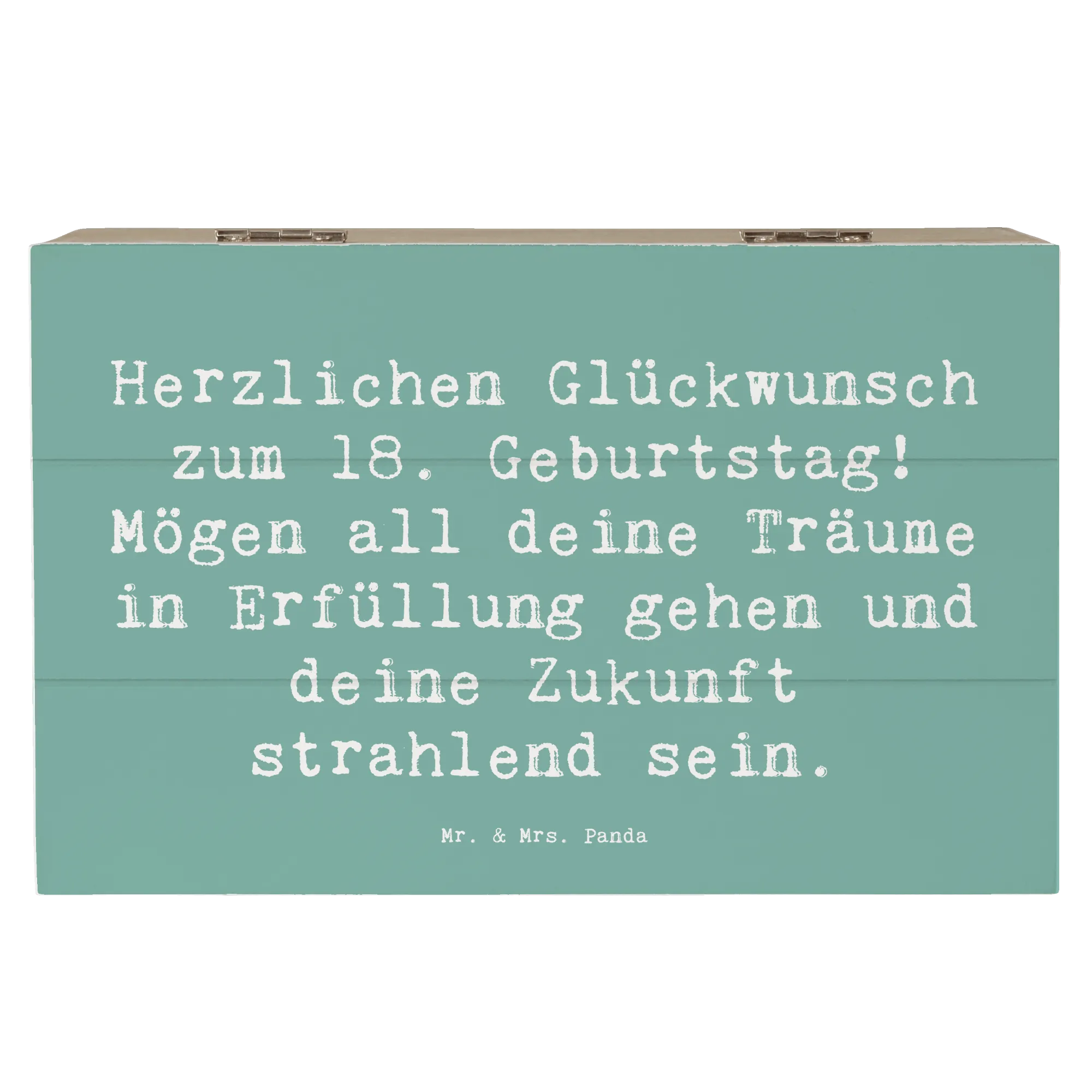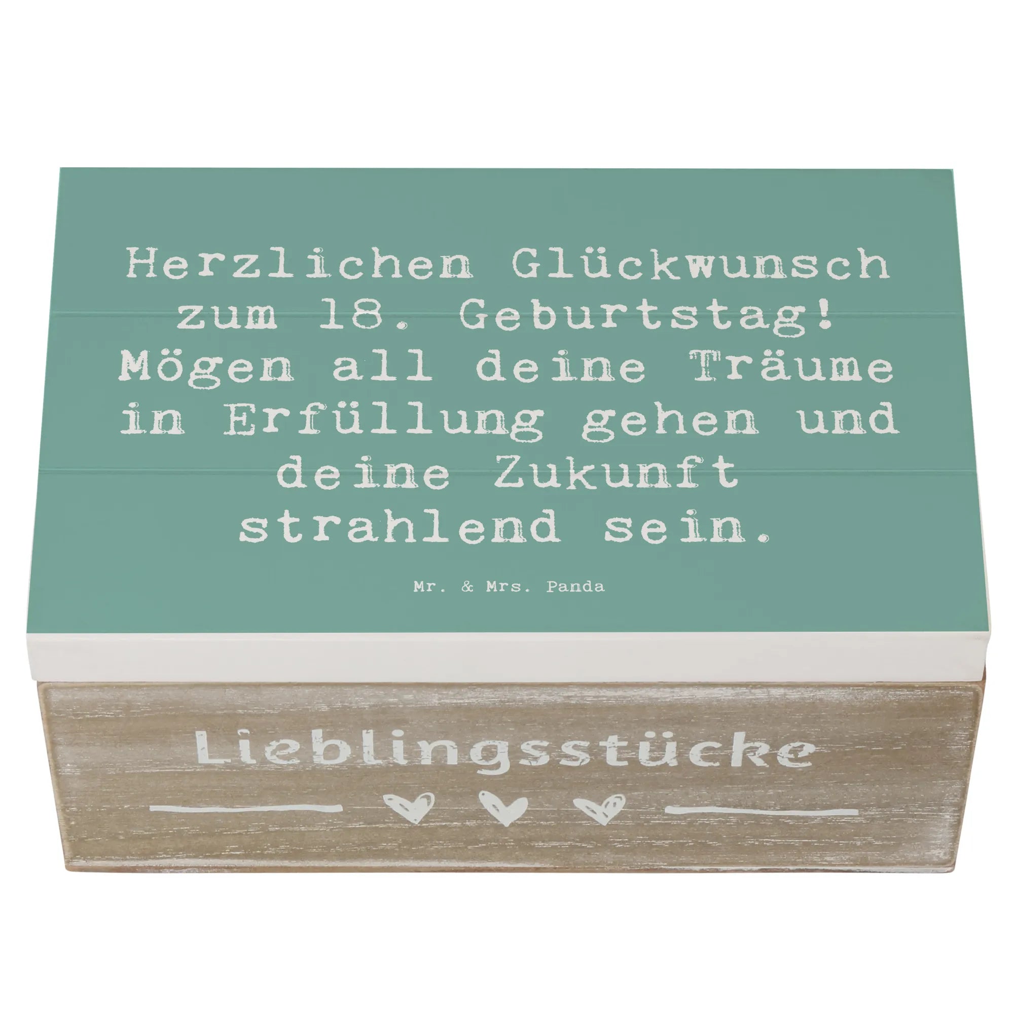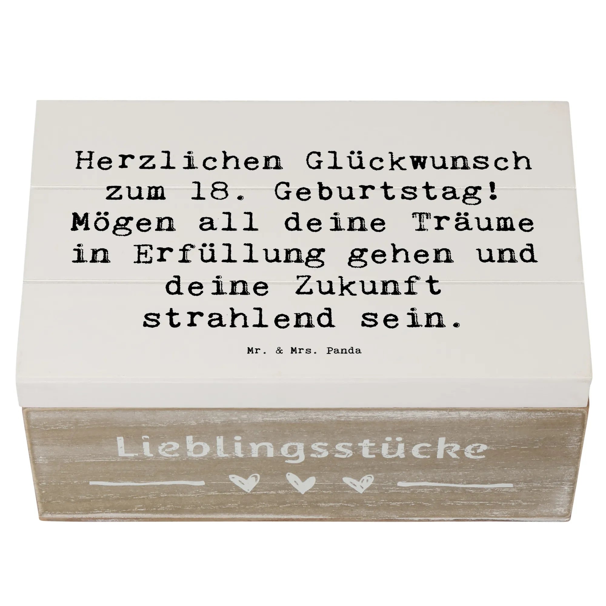Suchst du das perfekte Geschenk zum 18. Geburtstag? Unsere wunderschöne Holzkiste von Mr. & Mrs. Panda ist die ideale Wahl! Mit ihrem bezaubernden Motiv "Herzlichen Glückwunsch zum 18. Geburtstag! Mögen all deine Träume in Erfüllung gehen und deine Zukunft strahlend sein." bringt sie nicht nur Freude, sondern auch einen Hauch von Nostalgie und Stil in jeden Geburtstag.