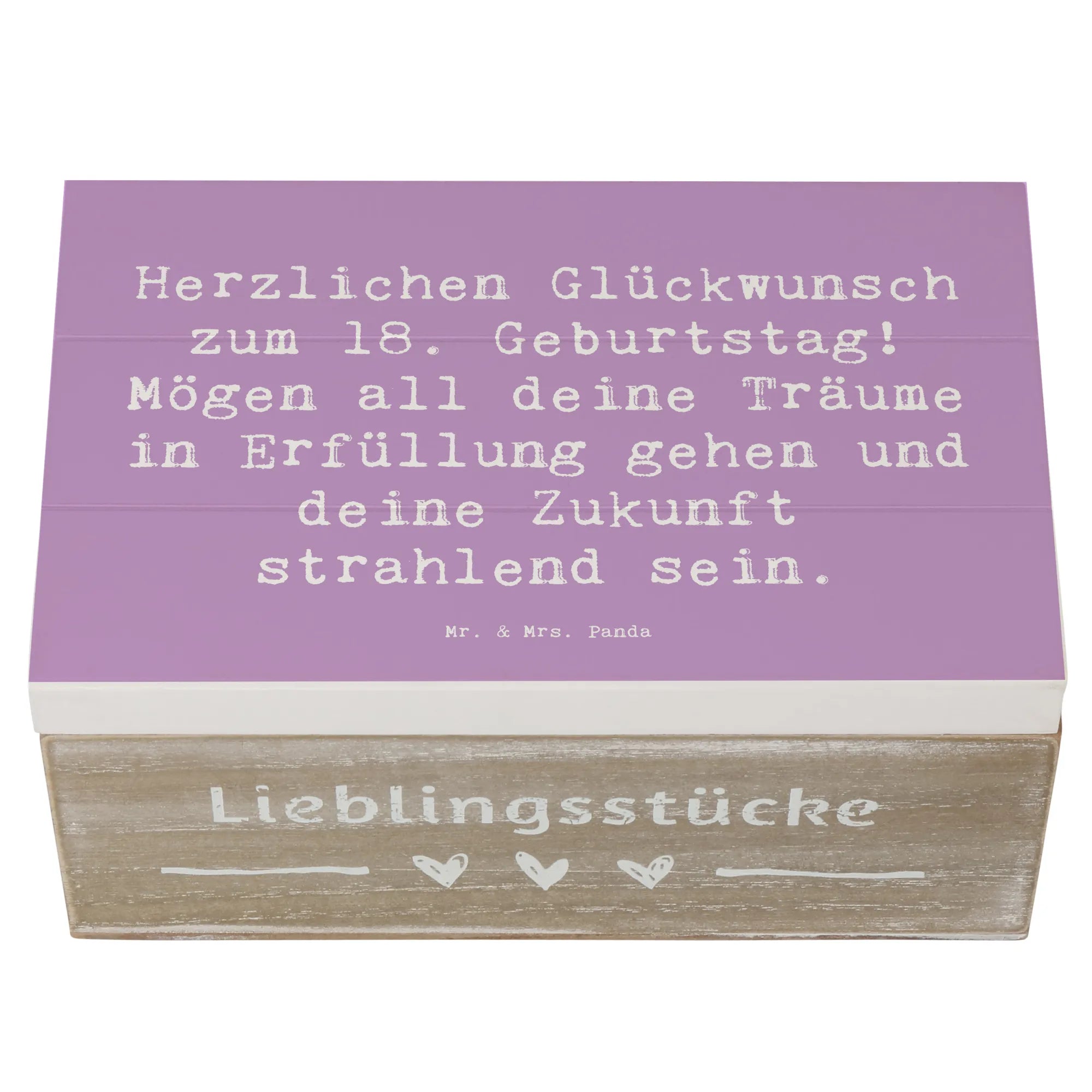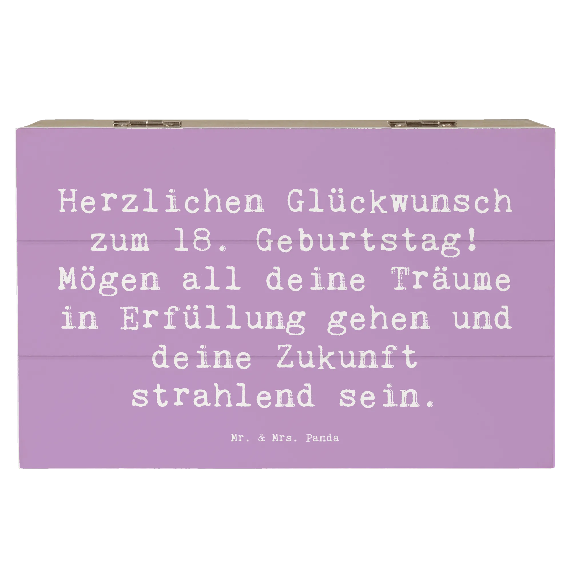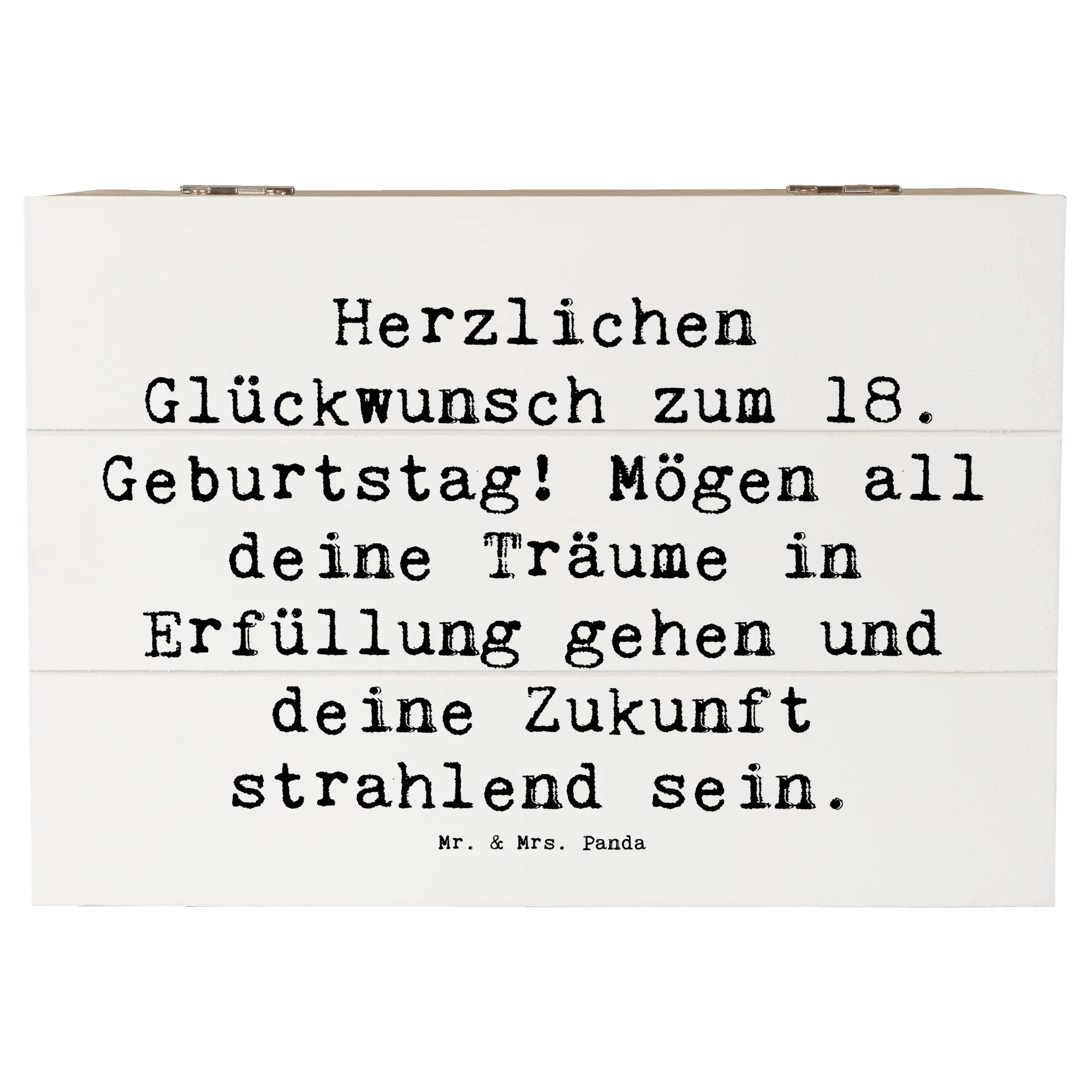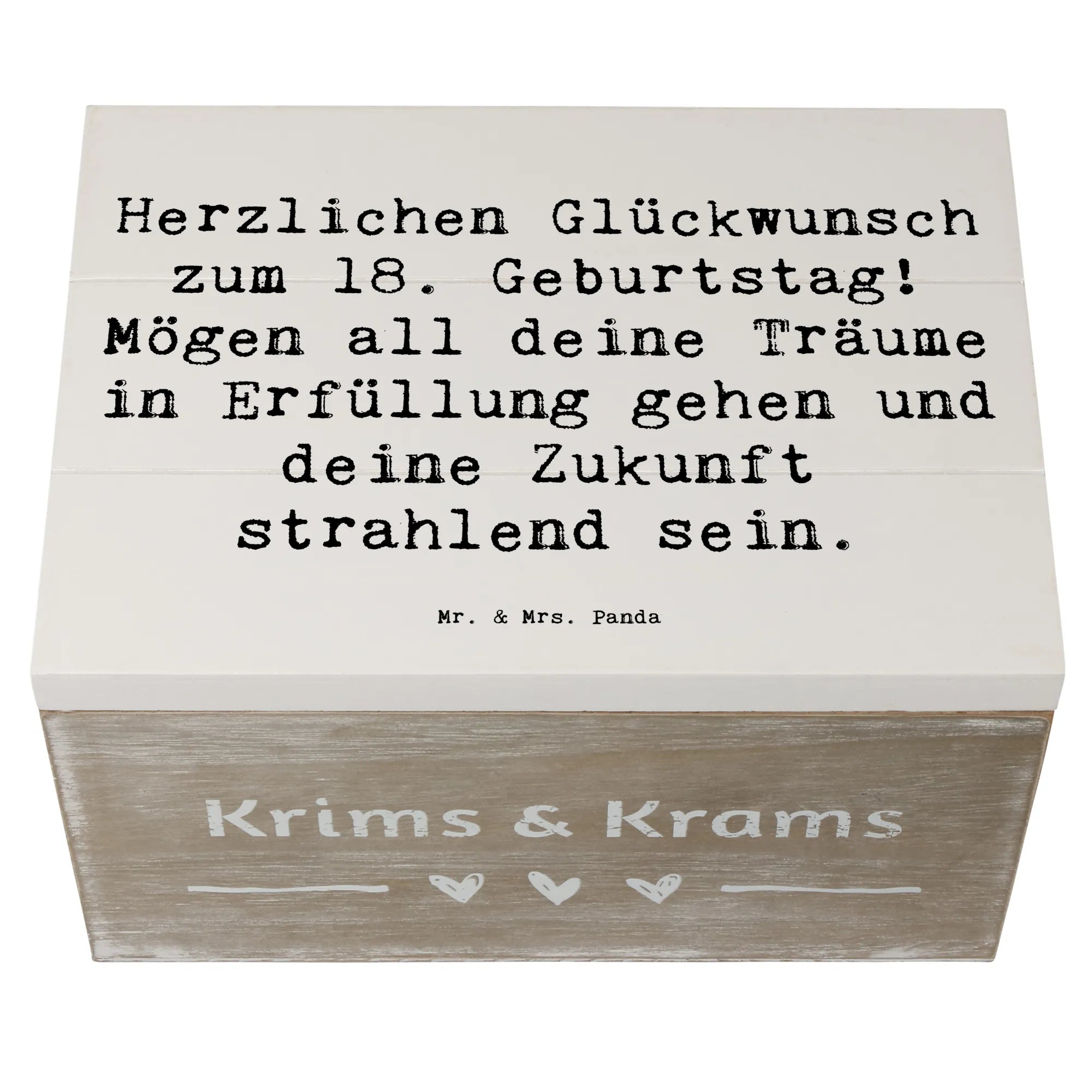 Suchst du das perfekte Geschenk zum 18. Geburtstag? Unsere wunderschöne Holzkiste von Mr. & Mrs. Panda ist die ideale Wahl! Mit ihrem bezaubernden Motiv "Herzlichen Glückwunsch zum 18. Geburtstag! Mögen all deine Träume in Erfüllung gehen und deine Zukunft strahlend sein." bringt sie nicht nur Freude, sondern auch einen Hauch von Nostalgie und Stil in jeden Geburtstag.