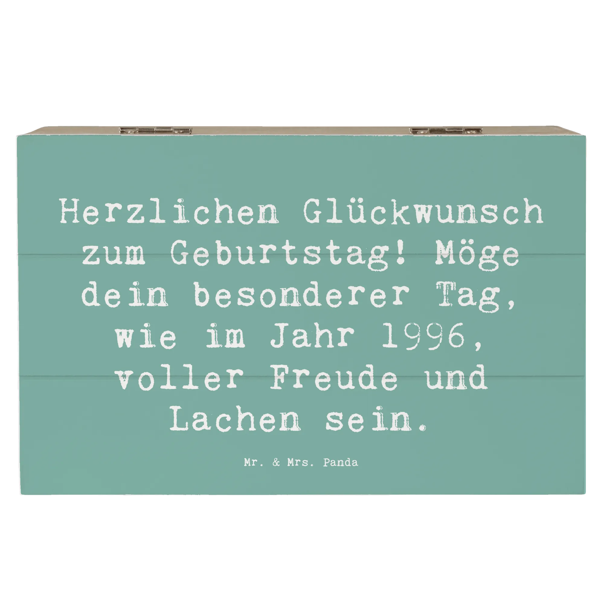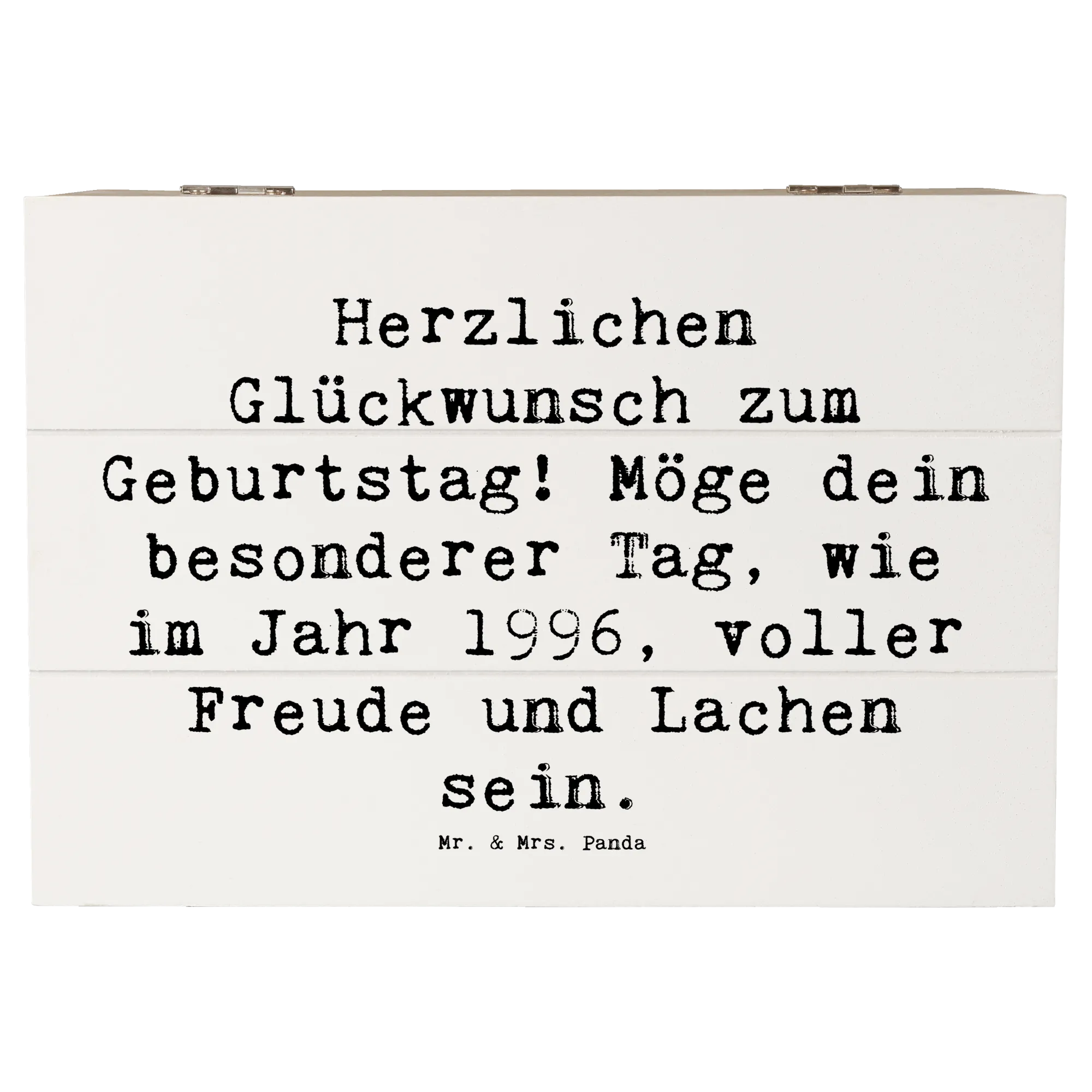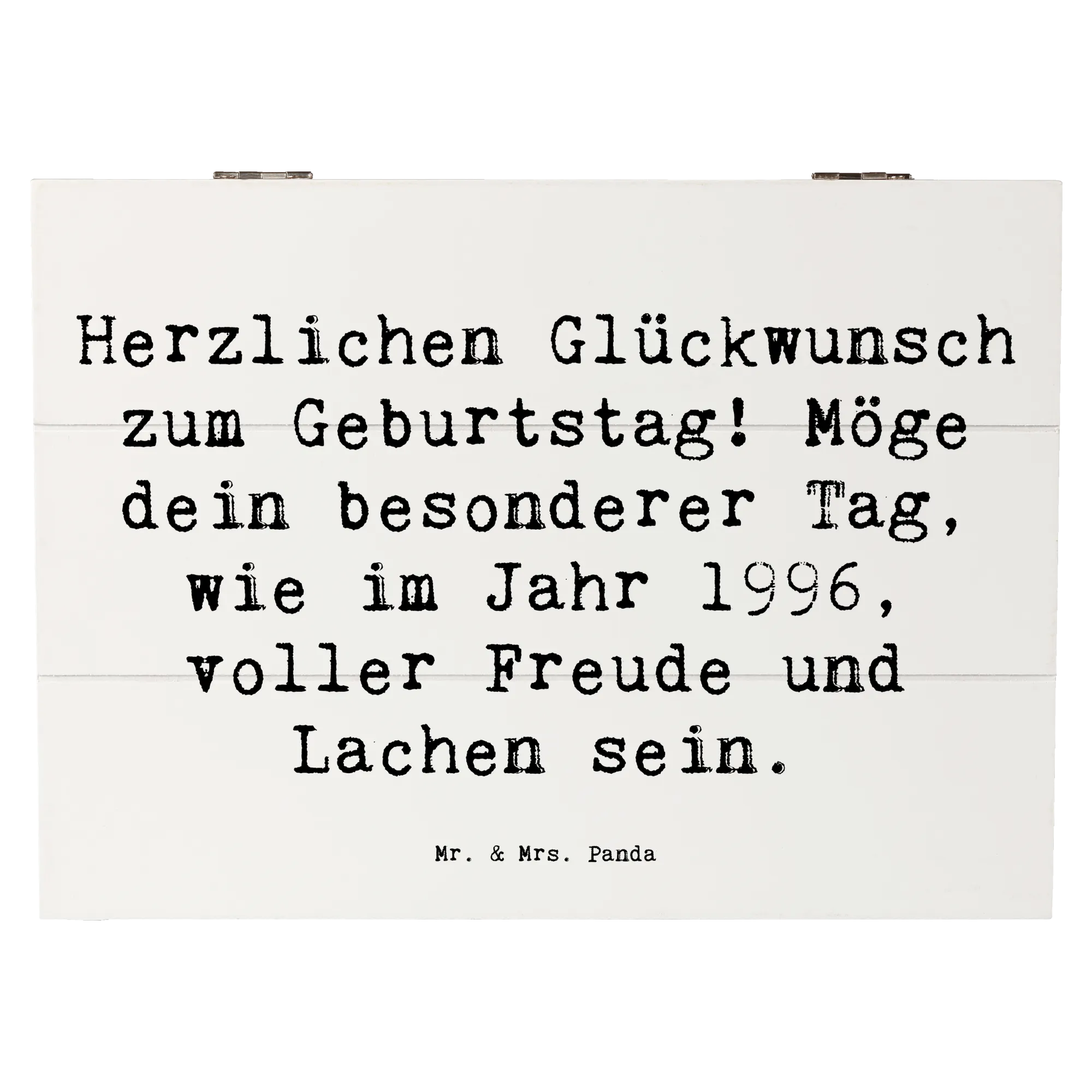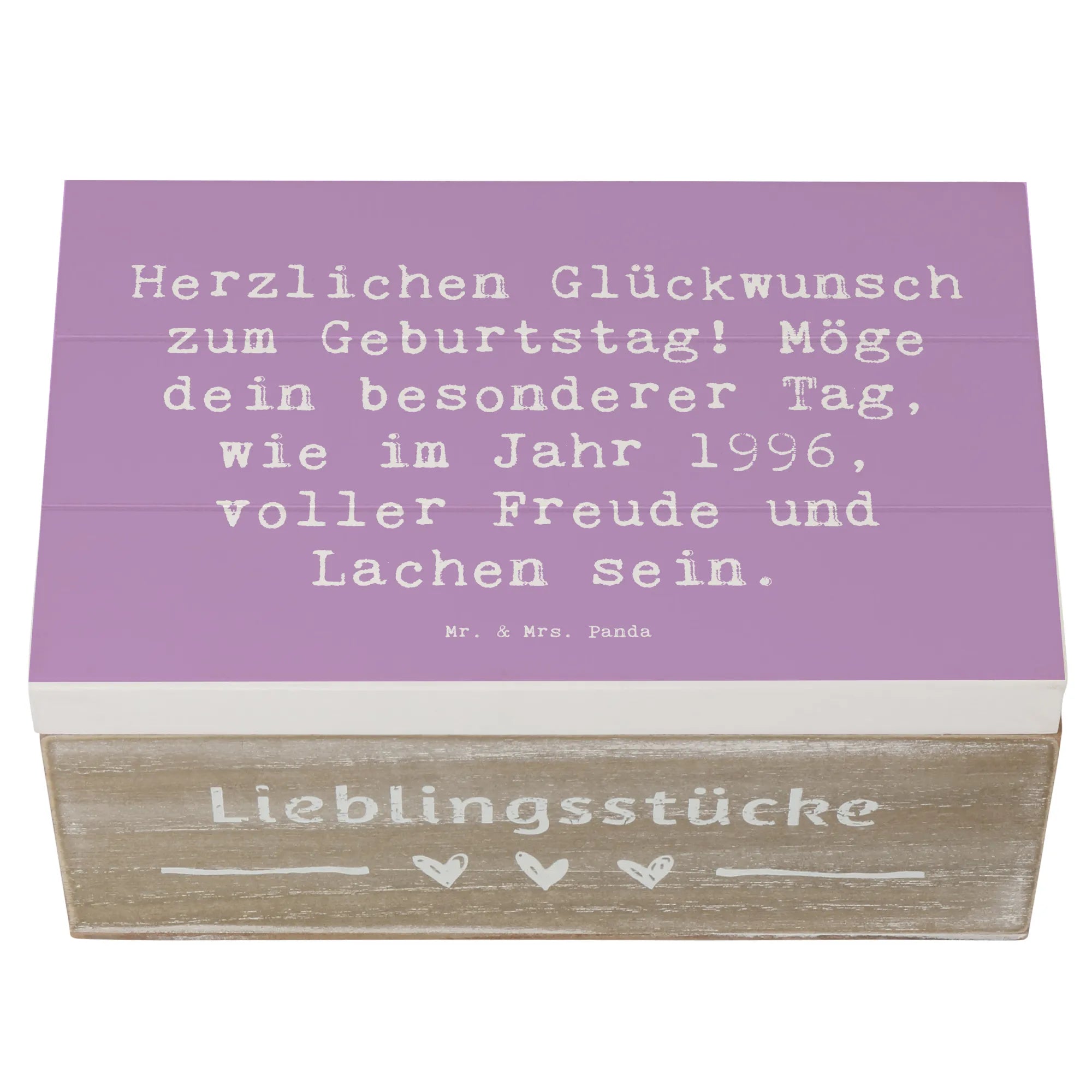 Bist du auf der Suche nach einem ganz besonderen Geschenk für einen lieben Menschen, der 1996 geboren wurde? Unsere zauberhafte Holzkiste von Mr. & Mrs. Panda ist genau das Richtige!
