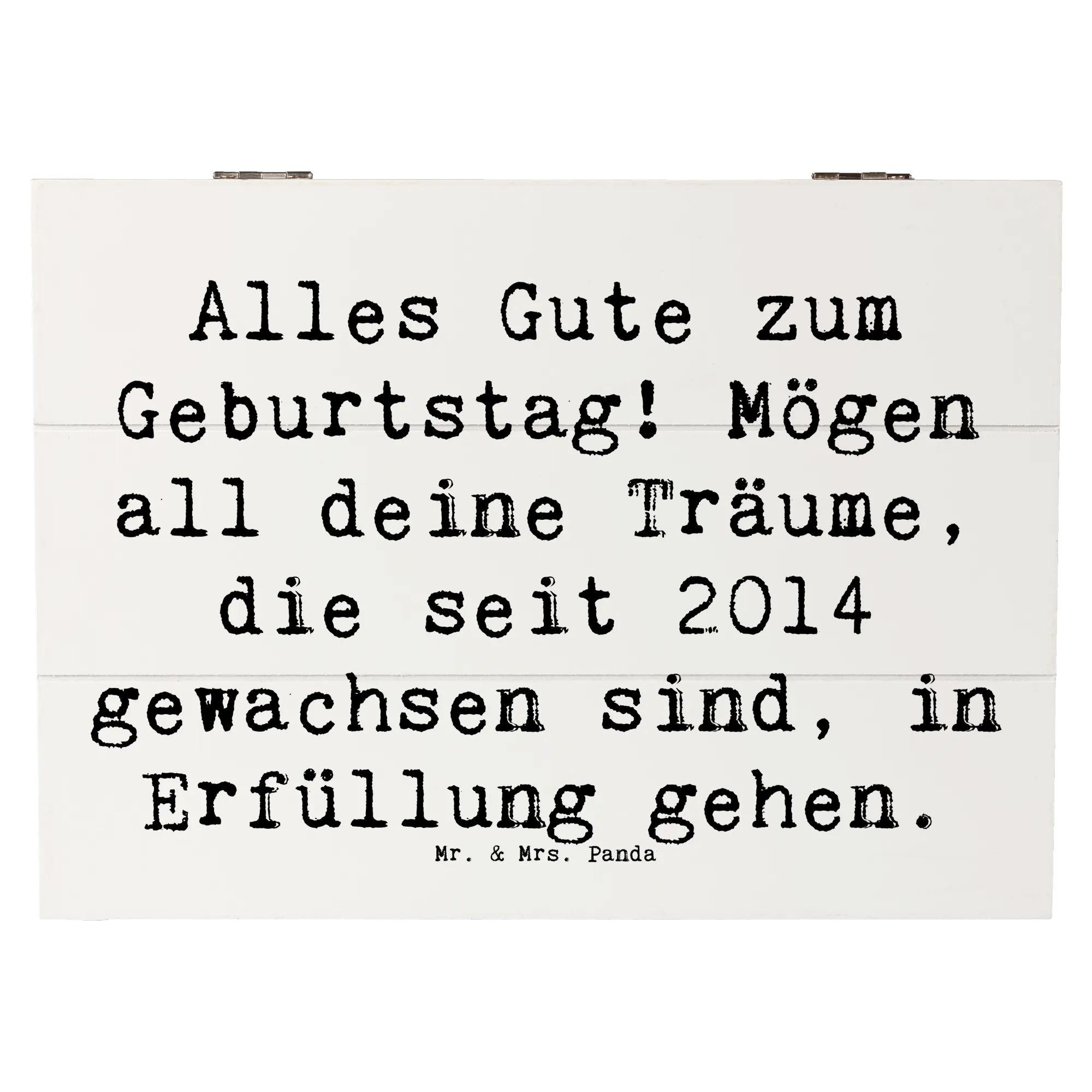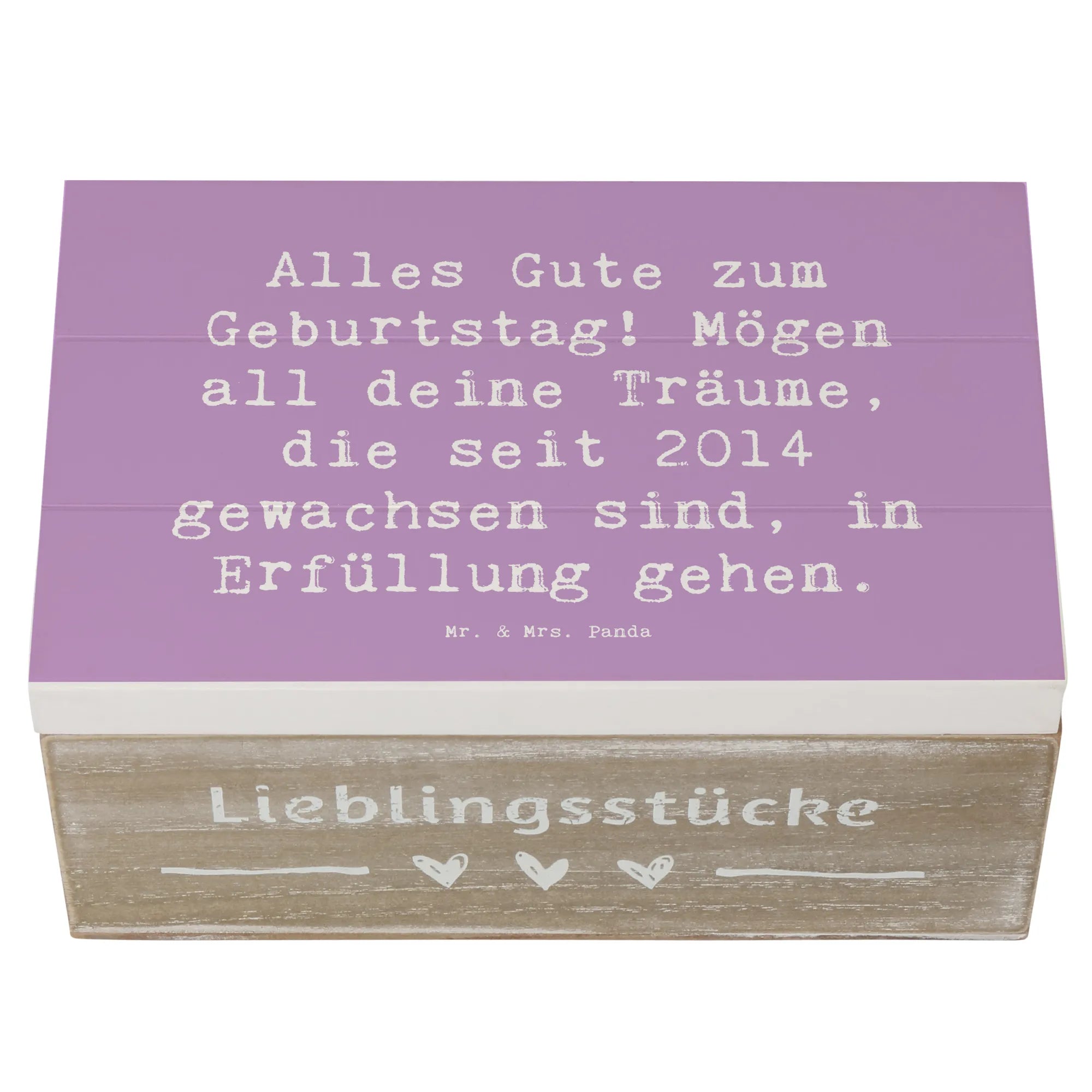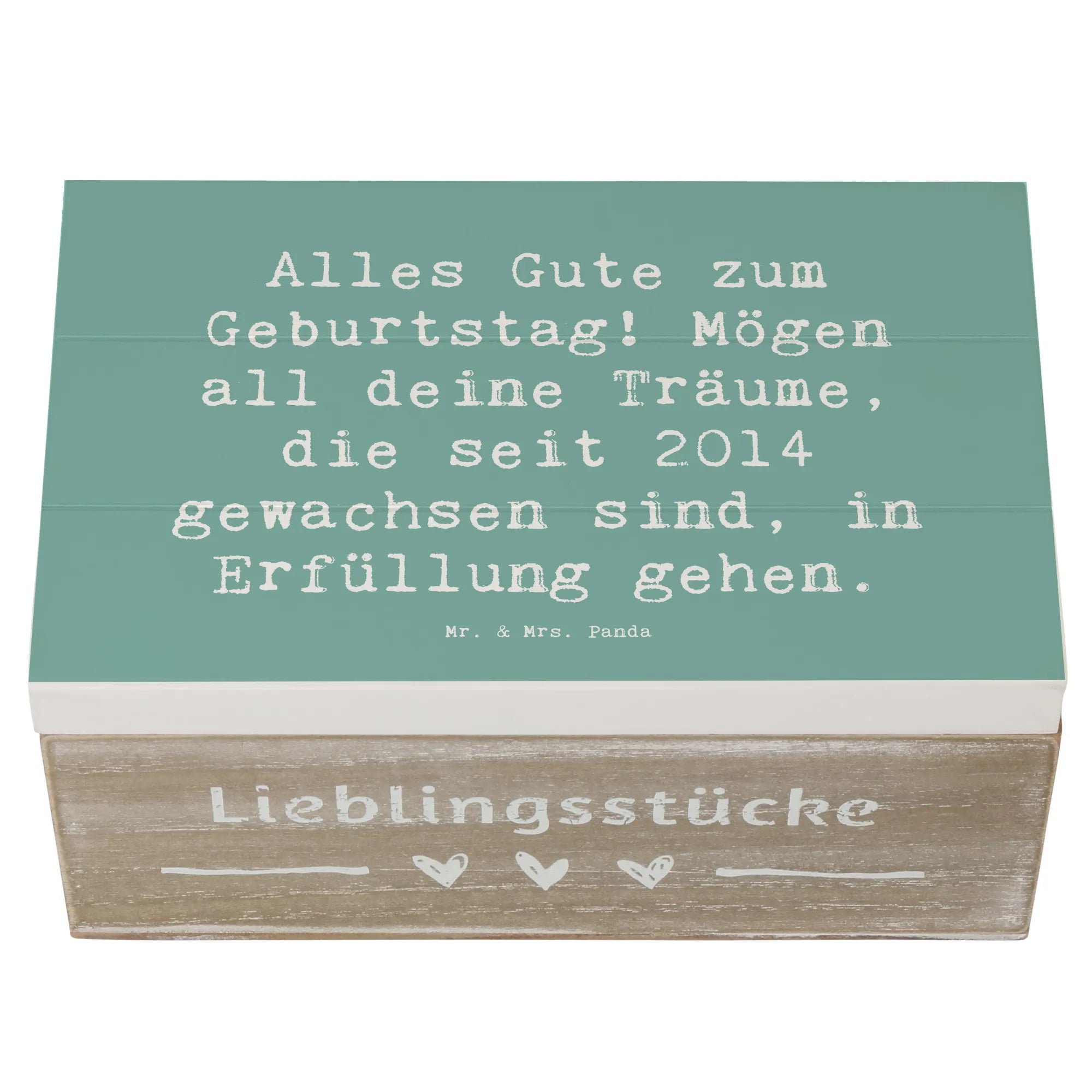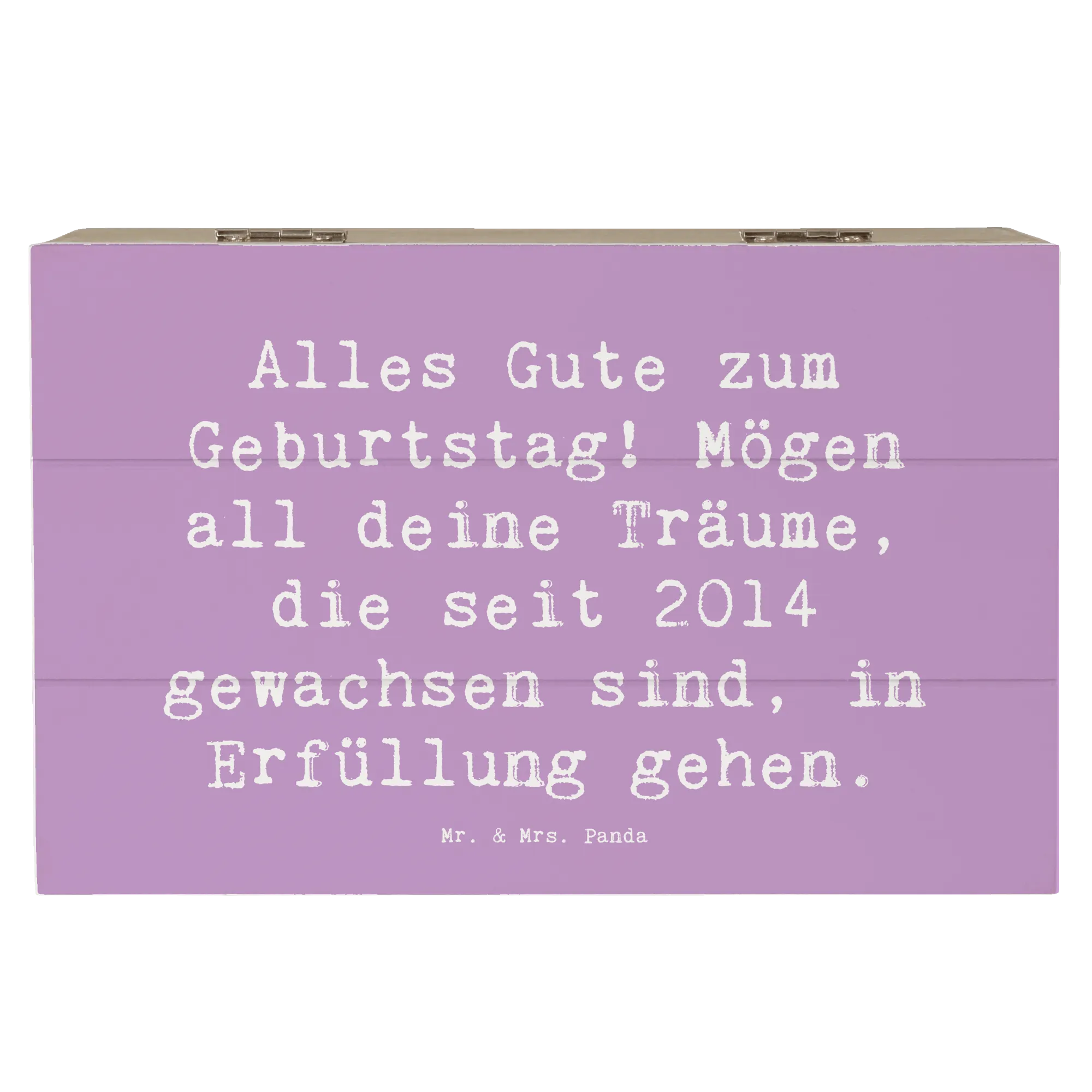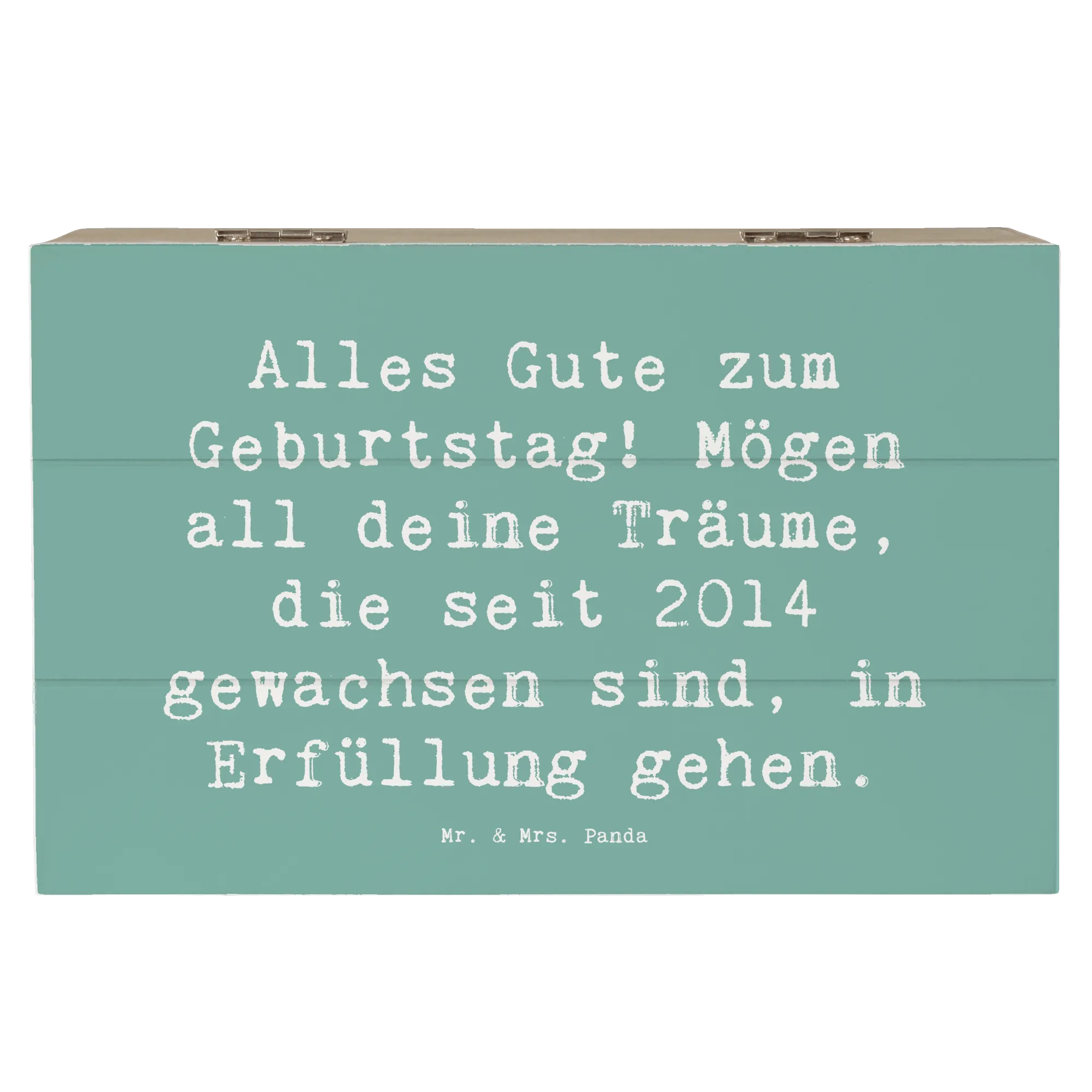 Diese wunderschöne Holzkiste von Mr. & Mrs. Panda ist das perfekte Geschenk für jeden, der 2014 geboren wurde oder einen besonderen Geburtstag feiern möchte! Mit einem liebevollen Spruch - "Alles Gute zum Geburtstag! Mögen all deine Träume, die seit 2014 gewachsen sind, in Erfüllung gehen." - wird diese Kiste zu einem einzigartigen Erinnerungsstück.
